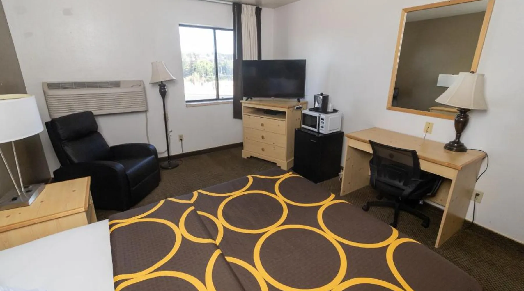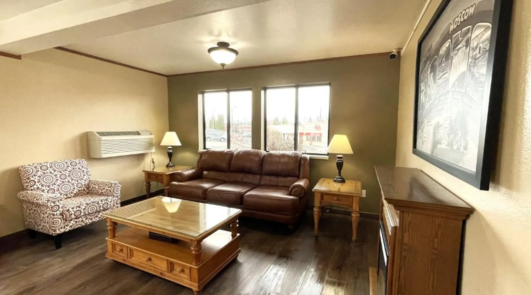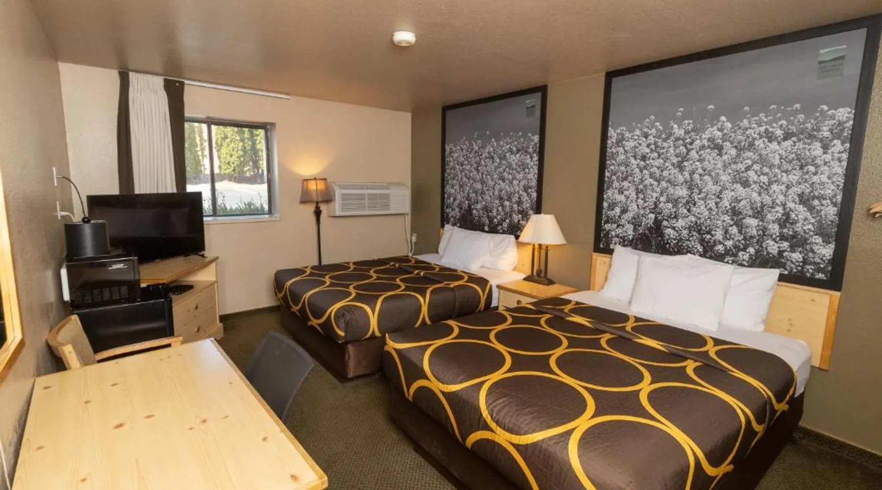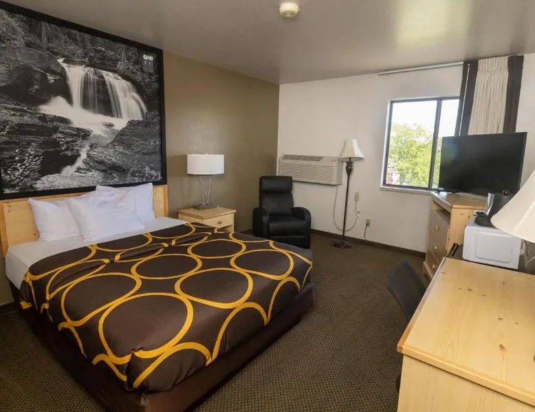 This Super 8 with FairBridge Inn is located in downtown Moscow, Idaho, across the street from the University of Idaho. The hotel features a daily grab and go breakfast and rooms with free Wi-Fi. The air-conditioned rooms at Super 8 Moscow with FairBridge Inn & Suites are furnished with cable TVs and coffee makers. Each room has a work desk and free local calls. A 24-hour front desk welcomes guests to Moscow Super 8 with FairBridge Inn & Suites. A guest launderette is located on site. Free parking is provided. Super 8 Moscow with FairBridge Inn & Suites is a 3-minute drive from Guy Wick Field, home of the Idaho Vandals. Pullman-Moscow Regional Airport and the Washington/Idaho border are within 6 miles of the hotel. Offering free toiletries, this double room includes a private bathroom with a bath, a shower and a hairdryer. The double room is fitted with air conditioning, a tea and coffee maker, a wardrobe as well as a carpeted floor. The unit has 1 bed.