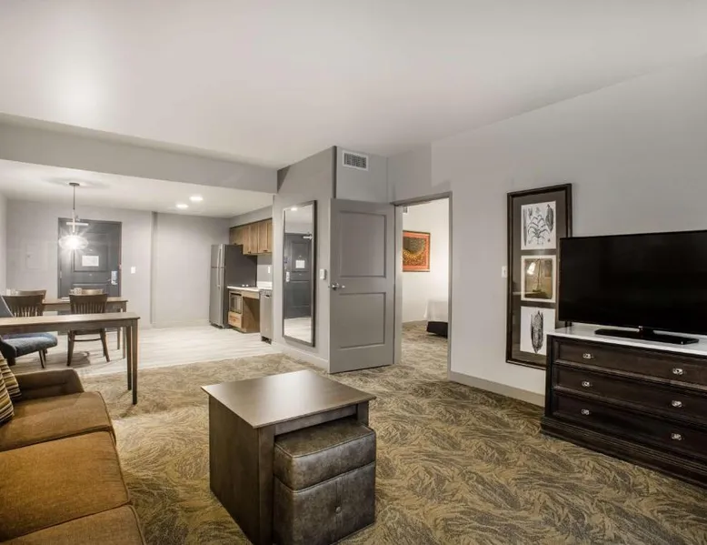 Comfortable Accommodations: Homewood Suites By Hilton Salina/Downtown in Salina offers family rooms with air-conditioning, kitchen facilities, and free WiFi. Each room includes a work desk, seating area, and modern amenities. Exceptional Facilities: Guests can enjoy a saltwater swimming pool, indoor pool, fitness center, and outdoor fireplace. Additional amenities include a lounge, coffee shop, and bar. Free on-site parking is available. Dining Experience: The modern, family-friendly restaurant serves American cuisine for lunch and dinner, complemented by a bar offering cocktails. Room service and barbecue facilities enhance the dining experience. Convenient Location: Located 3.7 mi from Salina Regional Airport, the hotel is highly rated for its convenient location, room cleanliness, and attentive staff. Guests can make meals in the kitchen that is equipped with a stovetop, a refrigerator, a dishwasher and kitchenware. This studio is air-conditioned and features a flat-screen TV with cable channels, a tea and coffee maker, a seating area and heating. The unit offers 2 beds.