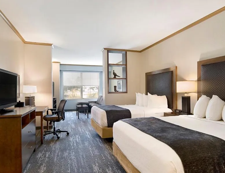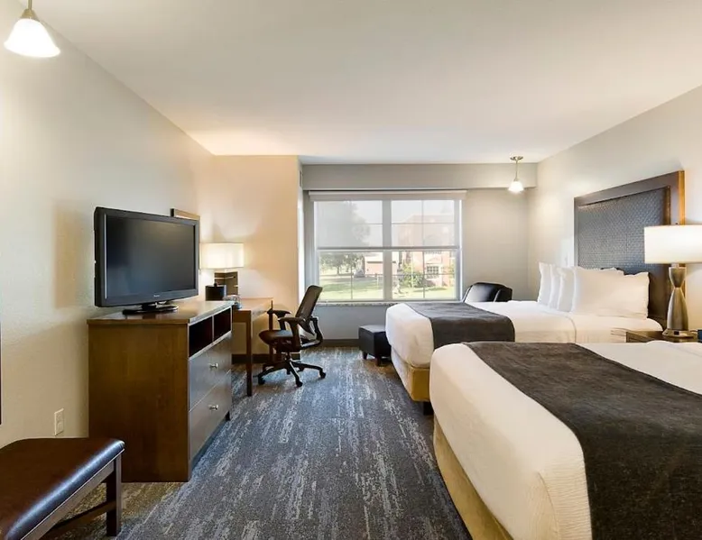Comfortable Accommodations: ClubHouse Hotel and Suites in Pierre offers comfortable rooms with tea and coffee makers, refrigerators, and microwaves. Guests enjoy free WiFi, air-conditioning, and private bathrooms. Exceptional Facilities: The hotel features a fitness center, indoor swimming pool, terrace, and outdoor fireplace. Additional amenities include a hot tub, fitness room, and outdoor seating area. Dining Options: A restaurant serves American and Italian cuisines for lunch and dinner. The bar provides a relaxing atmosphere for guests. Convenient Location: Located 3.7 mi from Pierre Regional Airport and 1.2 mi from the South Dakota State Capitol, the hotel offers free on-site parking and a free airport shuttle service. Guest Highlights: Guests highly rate the property for its breakfast, location, and room comfort. The suite features a tea and coffee maker. The unit has 2 beds.