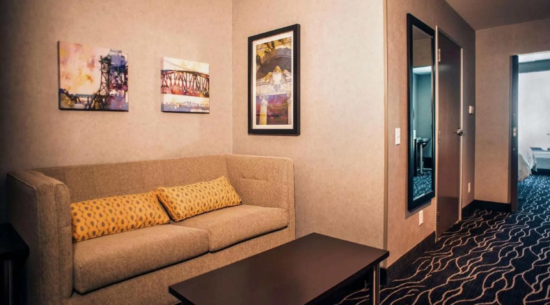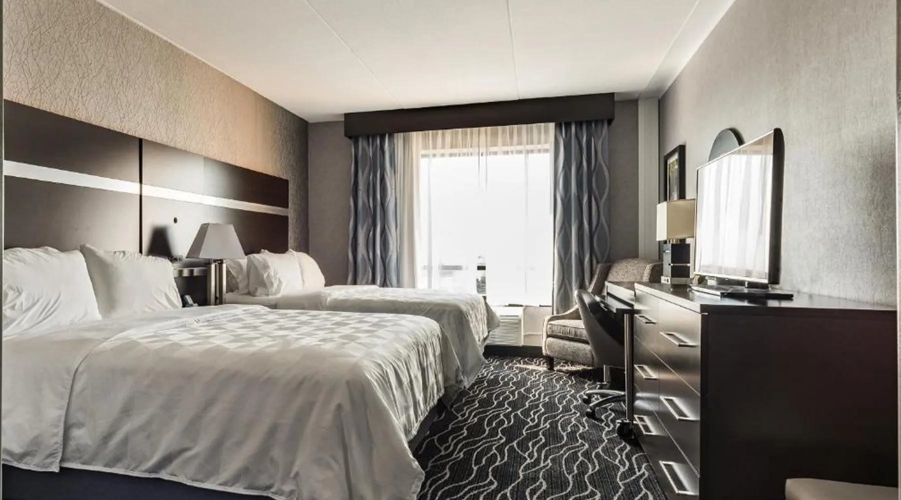 Comfortable Accommodations: Holiday Inn Hotel & Suites - Joliet Southwest by IHG in Joliet offers family rooms with air-conditioning, private bathrooms, and modern amenities. Each room includes a work desk, soundproofing, and free WiFi. Leisure Facilities: Guests can enjoy a swimming pool with a view, sauna, fitness center, terrace, and indoor pool. Additional facilities include a hot tub, steam room, and outdoor fireplace. Dining Options: The modern, family-friendly restaurant serves American cuisine with vegetarian and gluten-free options. Breakfast, lunch, and dinner are available, complemented by a bar. Convenient Location: Located 36 mi from Midway International Airport, the hotel is near attractions such as Joliet Area Historical Museum (6.2 mi) and Chicagoland Speedway (9.3 mi). Free on-site parking is provided. Offering free toiletries, this double room includes a private bathroom with a bath, a shower and a hairdryer. The spacious double room offers air conditioning, soundproof walls, a tea and coffee maker, a seating area, as well as a flat-screen TV with cable channels. The unit offers 2 beds.