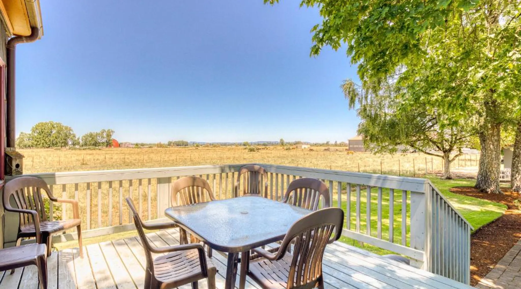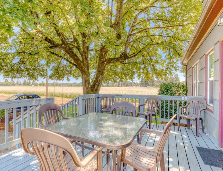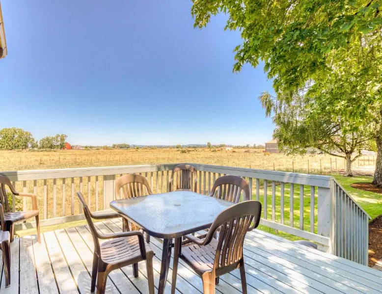 Spacious Holiday Home in McMinnville: The Farm House offers a spacious holiday home experience in McMinnville, Oregon. Guests enjoy a private entrance and a large outdoor seating area. Comfortable Living Spaces: The property features four bedrooms and two bathrooms, equipped with air-conditioning, a washing machine, and free toiletries. A fully fitted kitchen includes a refrigerator, oven, stovetop, microwave, dishwasher, and coffee machine. Convenient Amenities: The holiday home provides a dining area, work desk, and TV. Additional amenities include a patio, outdoor furniture, and a seating area. Nearby Attractions: Linfield College is 8.1 mi away, and Portland International Airport is 47 mi from the property. Highly rated by guests, The Farm House ensures a pleasant stay. Boasting a private entrance, this spacious holiday home also includes 4 bedrooms, 2 bathrooms and a seating area. Guests can make meals in the kitchen that is fitted with a stovetop, a refrigerator, a dishwasher and kitchenware. This air-conditioned holiday home consists of a dining area, a flat-screen TV with cable channels a washing machine and a patio. The unit has 4 beds.