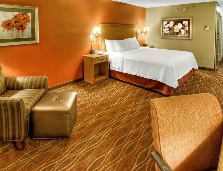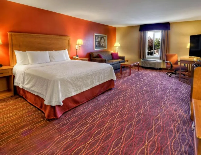 Comfortable Accommodations: Hampton Inn Twin Falls in Twin Falls offers spacious rooms with free WiFi, ensuring a pleasant stay. Guests enjoy amenities such as a fitness room, hot tub, and a 24-hour front desk. Leisure Facilities: The hotel features an indoor swimming pool and a relaxing hot tub. Additional facilities include a elevator and a seating area with a sofa bed, providing ample space for relaxation. Breakfast and Dining: A continental breakfast is served daily, offering warm dishes, fresh pastries, fruits, and juice. The property staff and service support receive high ratings from guests. Location and Attractions: Located 8.7 mi from Magic Valley Regional Airport and 1.2 mi from College Of Southern Idaho, the hotel is located in a convenient area. This air-conditioned room features a seating area, a work desk, a cable TV and tea and coffee-making facilities. Each private bathroom is equipped with a hairdryer.
