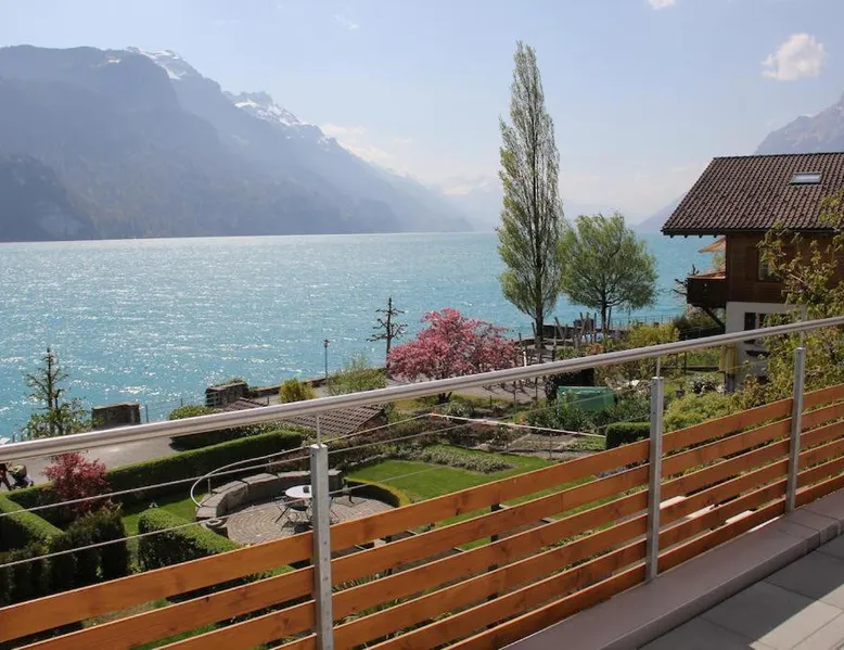 Spacious Accommodations: Beauregard - Direct lake view in Brienz offers a spacious 4-star apartment with one bedroom and one bathroom. Guests enjoy a sun terrace and a garden, complemented by free WiFi throughout the property. Modern Amenities: The apartment features a fully equipped kitchen with a refrigerator, microwave, dishwasher, and washing machine. Additional amenities include a work desk, bath, and laundry service. Convenient Location: Located 71 mi from Zurich Airport, the property is 3.7 mi from Giessbachfälle and 22 mi from Grindelwald Terminal. A restaurant is available in the surroundings. Activities and Surroundings: Guests can enjoy skiing, hiking, and cycling. The scenic lakes and nearby public transport options are highly appreciated by visitors. Boasting 1 bedroom and 1 bathroom with a bath, this spacious apartment has a well-fitted kitchen and a terrace. Guests can make meals in the fully equipped kitchen that has a refrigerator, a dishwasher and a microwave. The apartment features a washing machine and heating. The unit offers 1 bed.