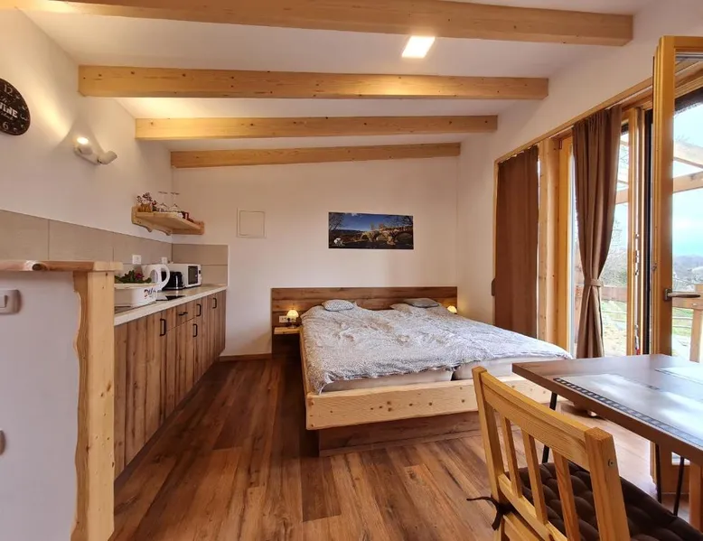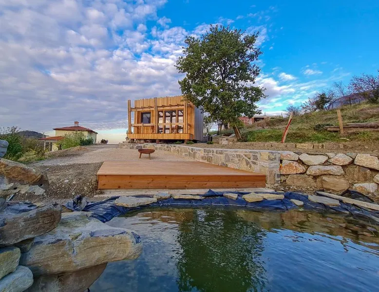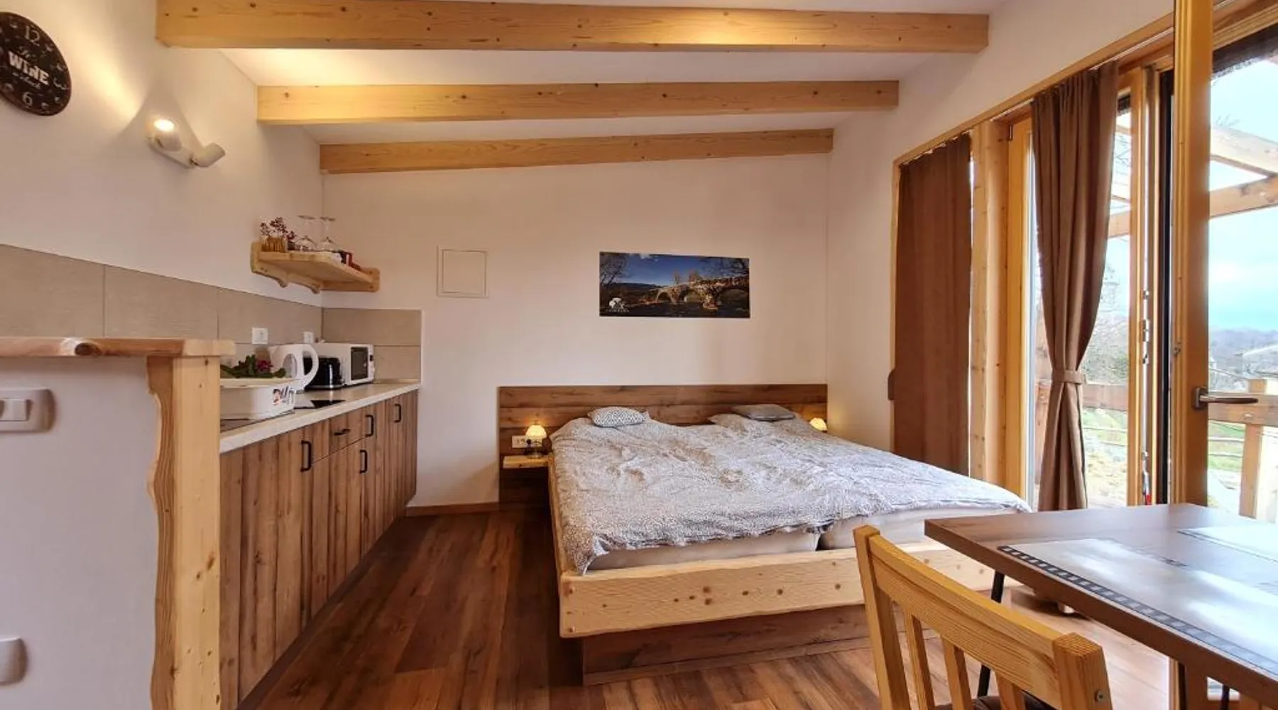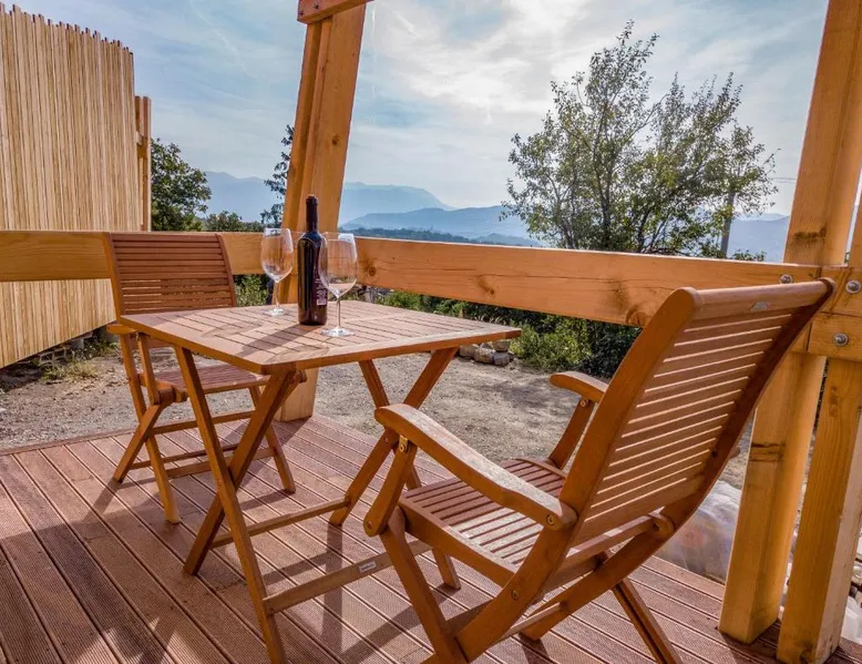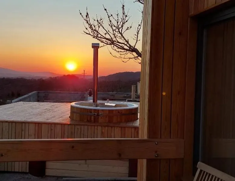 Elegant Accommodations: Panorama glamping Vipavska dolina in Kamnje offers a recently renovated apartment with a spacious terrace and garden. Guests enjoy free WiFi, a sauna, and a sun terrace. Comfortable Amenities: The property features air-conditioning, a pool with a view, and a balcony. Additional amenities include a hot tub, heated pool, and a sauna. Breakfast and Services: A continental or à la carte breakfast is served with cheese. Private check-in and check-out, a paid airport shuttle, and free on-site parking enhance the stay. Local Attractions: Predjama Castle is 20 mi away, Miramare Castle 23 mi, and The Škocjan Caves 27 mi from the property. Guests appreciate the scenic views and proximity to nature. Guests will have a special experience as the apartment features a pool with a view. Featuring a private entrance, this air-conditioned apartment consists of a kitchen, 1 bedroom and 1 bathroom with a shower and a hairdryer. Guests will find a stovetop, a refrigerator, kitchenware and a microwave in the well-equipped kitchen. The apartment also offers a barbecue. Boasting a terrace with garden views, this apartment also provides a mini-bar and a flat-screen TV with streaming services. The unit offers 2 beds.