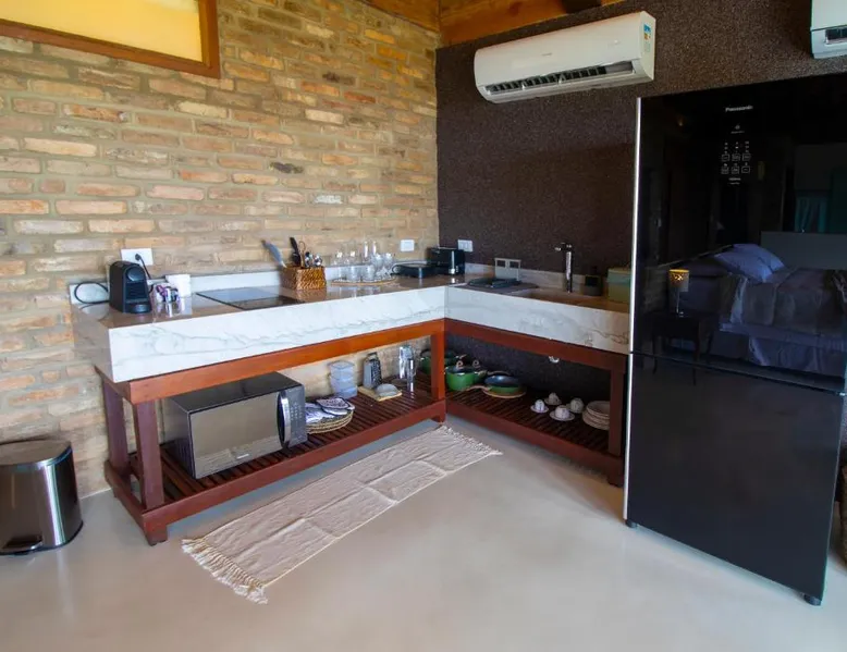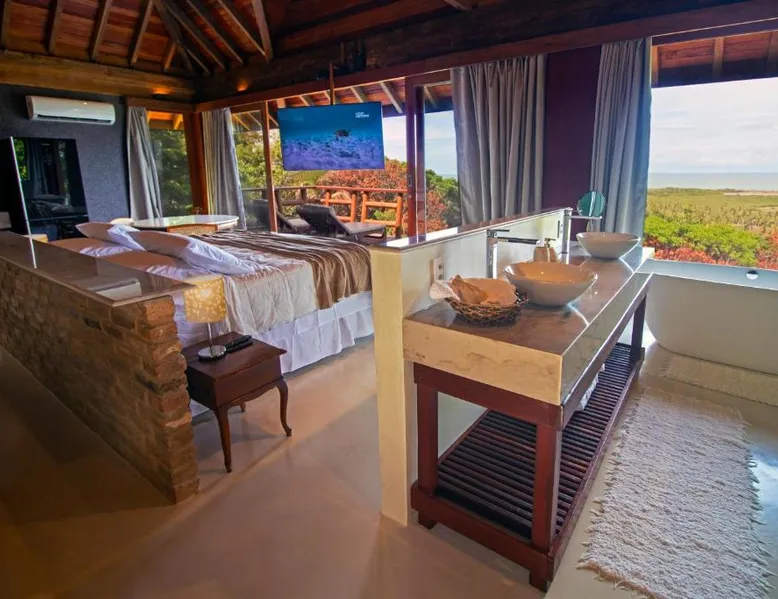 Elegant Accommodations: Ecolodge Praia de Gravatá in São José da Coroa Grande offers a recently renovated holiday home with sea views. Guests enjoy a sun terrace, lush garden, and an open-air bath. Free WiFi is available throughout the property. Comfortable Amenities: The property features air-conditioning, a kitchenette, and a balcony. Additional amenities include a hot tub, outdoor dining area, and a private bathroom with free toiletries. Free on-site private parking is provided. Delightful Dining: A continental breakfast is served daily, including juice, fresh pastries, cheese, and fruits. Room service and breakfast in the room cater to guest needs. Prime Location: Located 68 mi from Recife International Airport, the property is near attractions such as Gales Natural Pools (13 mi) and Tamandaré Fort (21 mi). Guests appreciate the scenic views and excellent service. Guests will have a special experience as the holiday home offers a hot tub. Featuring a private entrance, this air-conditioned holiday home consists of 1 living room, 1 separate bedroom and 3 bathrooms with a bath and a shower. In the well-equipped kitchen, guests will find a stovetop, a refrigerator, kitchenware and a microwave. Boasting a terrace with sea views, this holiday home also provides a mini-bar and a flat-screen TV with streaming services. The unit offers 1 bed.