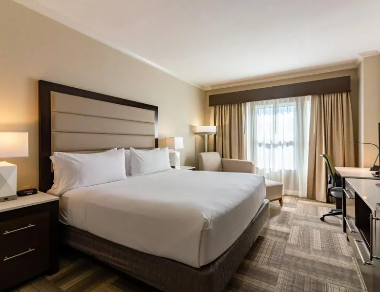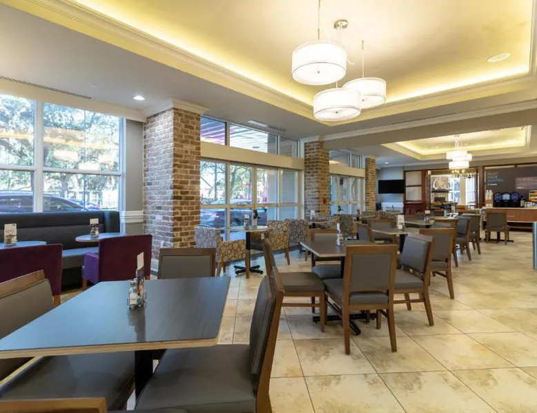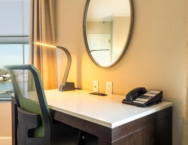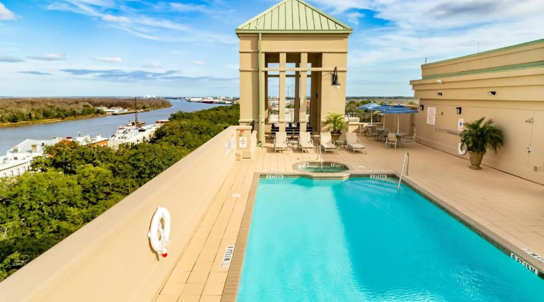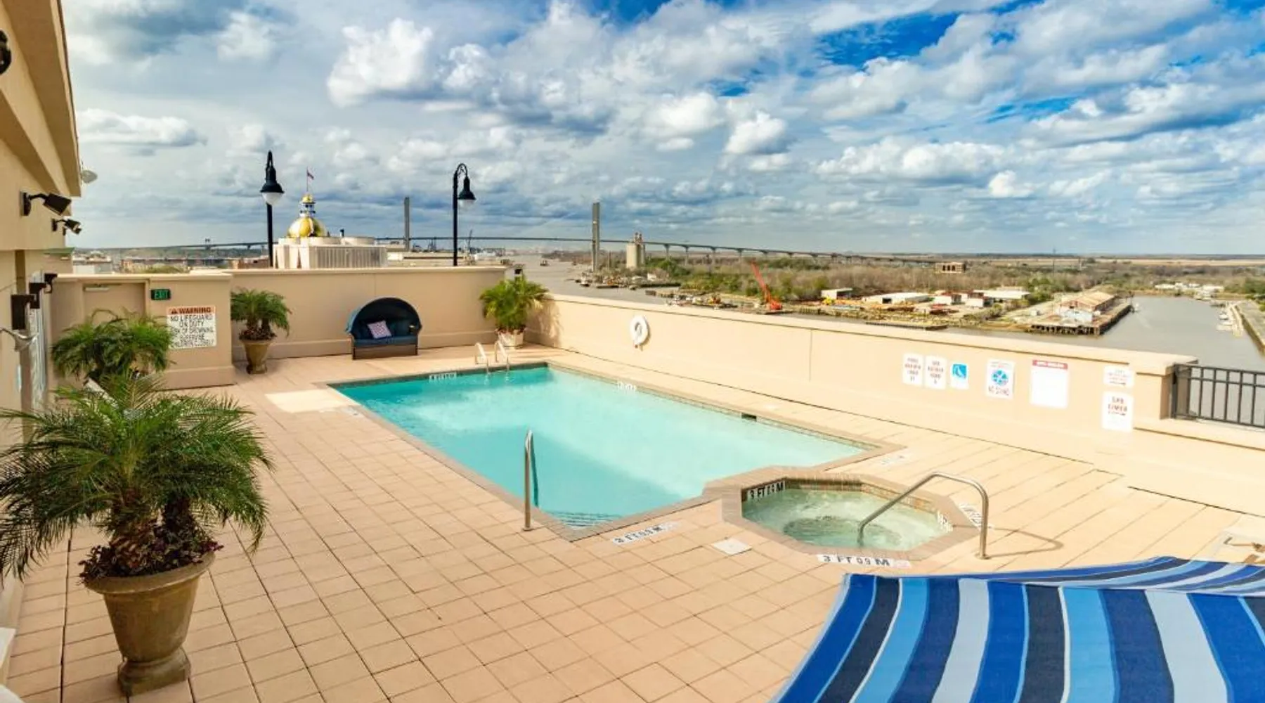 In the heart of Savannah, overlooking the Savannah River, this hotel is near popular attractions and features a free daily breakfast buffet and a rooftop swimming pool with city views. Rooms at the Holiday Inn Express Savannah include a microwave, refrigerator, desk and a flat-screen TV with cable channels. Guests have access to the on-site fitness center and business center. Within walking distance of the hotel is the city's historic River Street, featuring shops, restaurants and entertainment options. The famous Bonaventure Cemetery is also only a short drive away. This room includes a 32-inch flat-screen TV with premium cable channels and a spacious bathroom with a walk-in glass shower. A microwave, small refrigerator and Keurig coffee maker are also provided.
