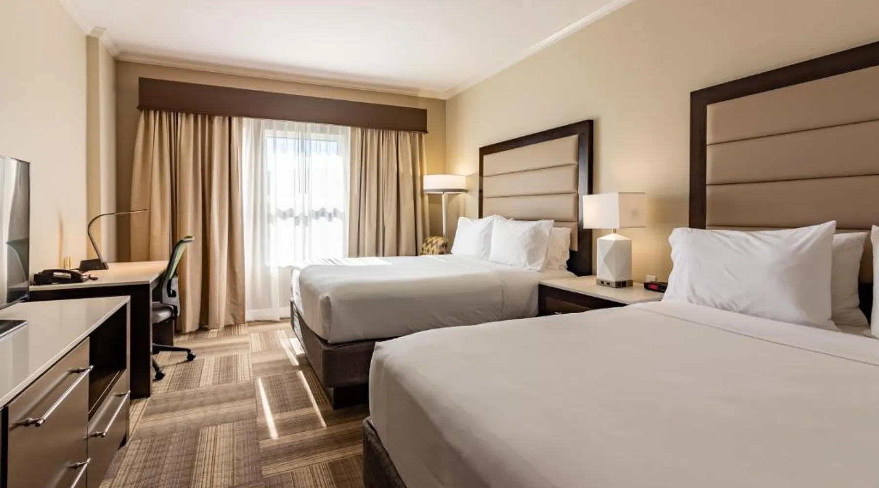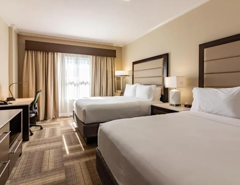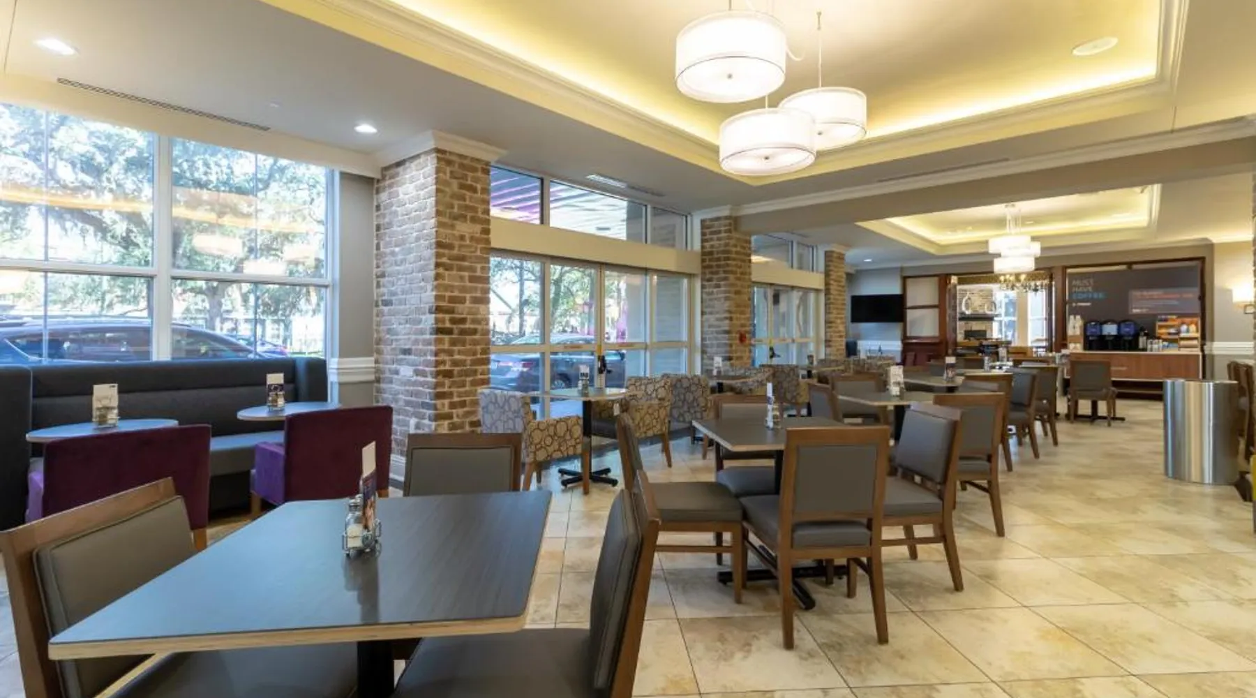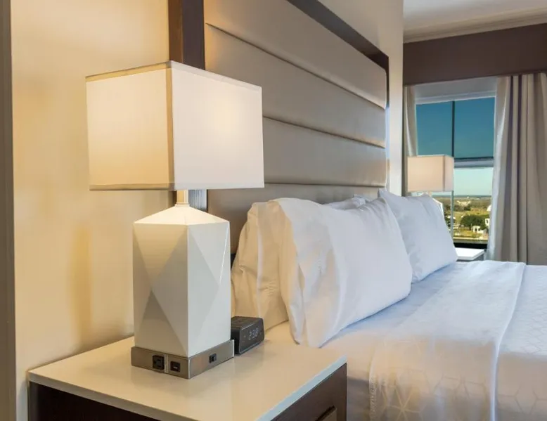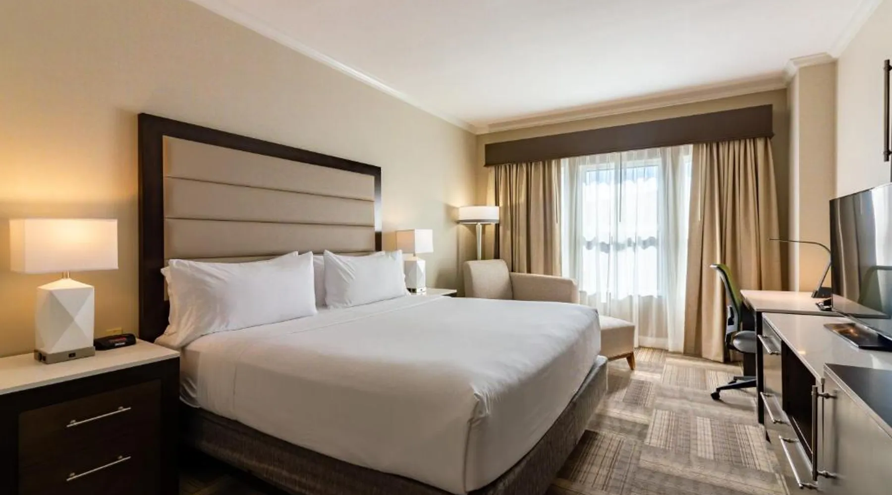 In the heart of Savannah, overlooking the Savannah River, this hotel is near popular attractions and features a free daily breakfast buffet and a rooftop swimming pool with city views. Rooms at the Holiday Inn Express Savannah include a microwave, refrigerator, desk and a flat-screen TV with cable channels. Guests have access to the on-site fitness center and business center. Within walking distance of the hotel is the city's historic River Street, featuring shops, restaurants and entertainment options. The famous Bonaventure Cemetery is also only a short drive away. This room includes a 32-inch flat-screen TV with premium cable channels and a spacious bathroom with a walk-in glass shower. A microwave, small refrigerator and Keurig coffee maker are also provided.