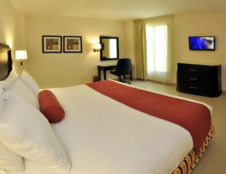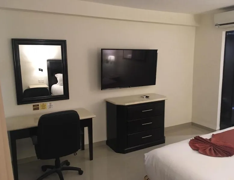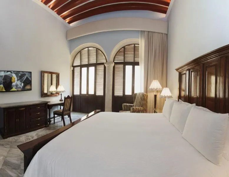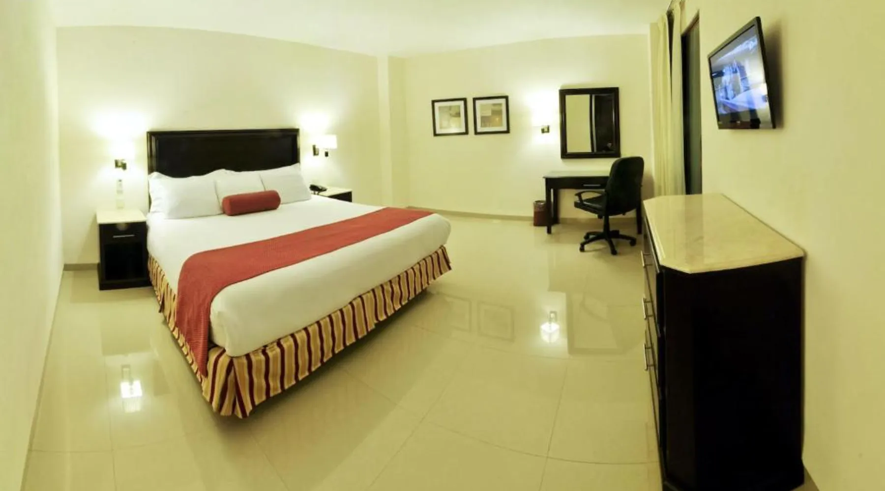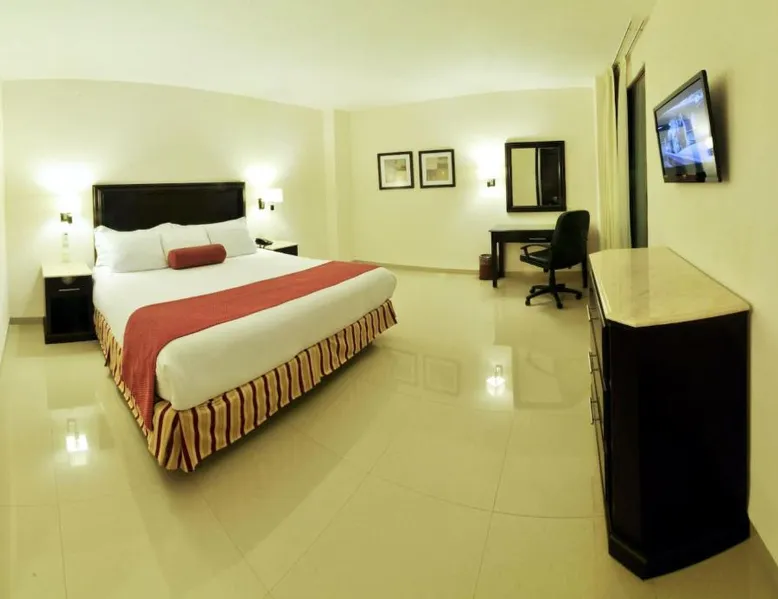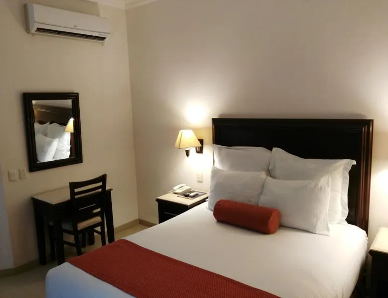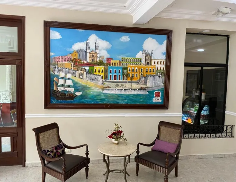 Comfortable Accommodations: Hotel Lopez Campeche in Campeche offers spacious rooms with air-conditioning, private bathrooms, and modern amenities. Guests enjoy free WiFi, balconies with city views, and comfortable furnishings. Outstanding Facilities: The hotel features a sun terrace, lush garden, and a year-round outdoor swimming pool. Additional facilities include a coffee shop, fitness center, and a tour desk. Free on-site private parking is available. Convenient Location: Located 2.5 mi from Ing. Alberto Acuña Ongay International Airport, the hotel is a 16-minute walk from Campeche XXI Convention Center. Nearby attractions include Campeche Cathedral and Campeche Museum. Guest Services: Private check-in and check-out, a 24-hour front desk, and free WiFi ensure a comfortable stay. Guests can enjoy continental, American, vegetarian, vegan, and gluten-free breakfast options with fresh fruits. This air-conditioned double room includes a flat-screen TV with cable channels, a private bathroom as well as a patio. The unit offers 1 bed.