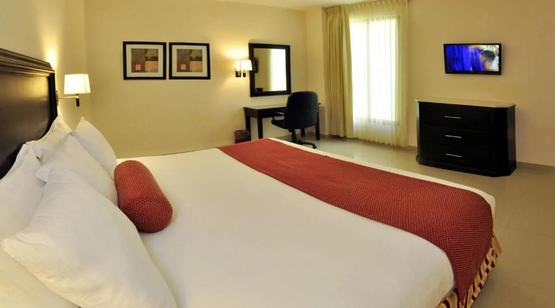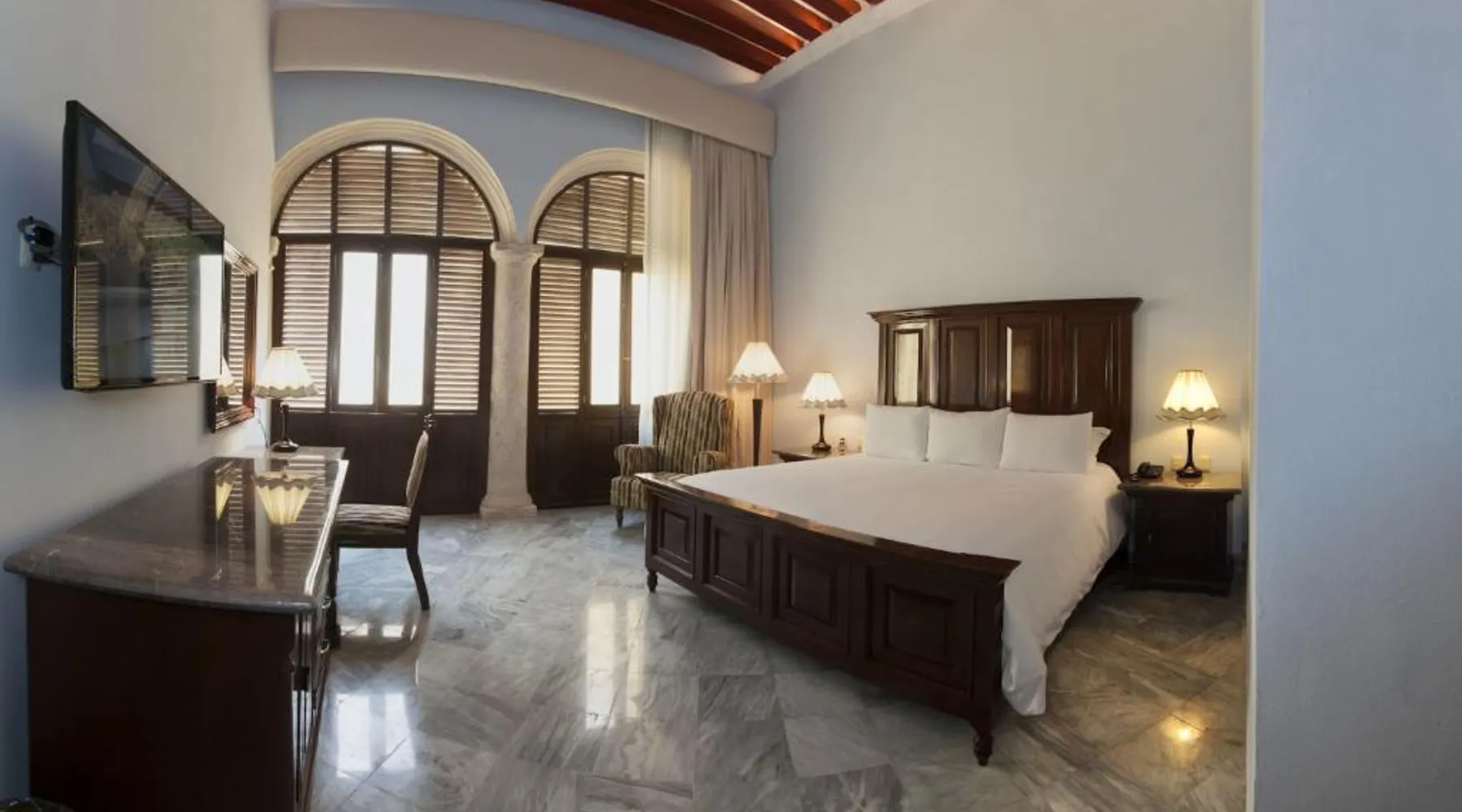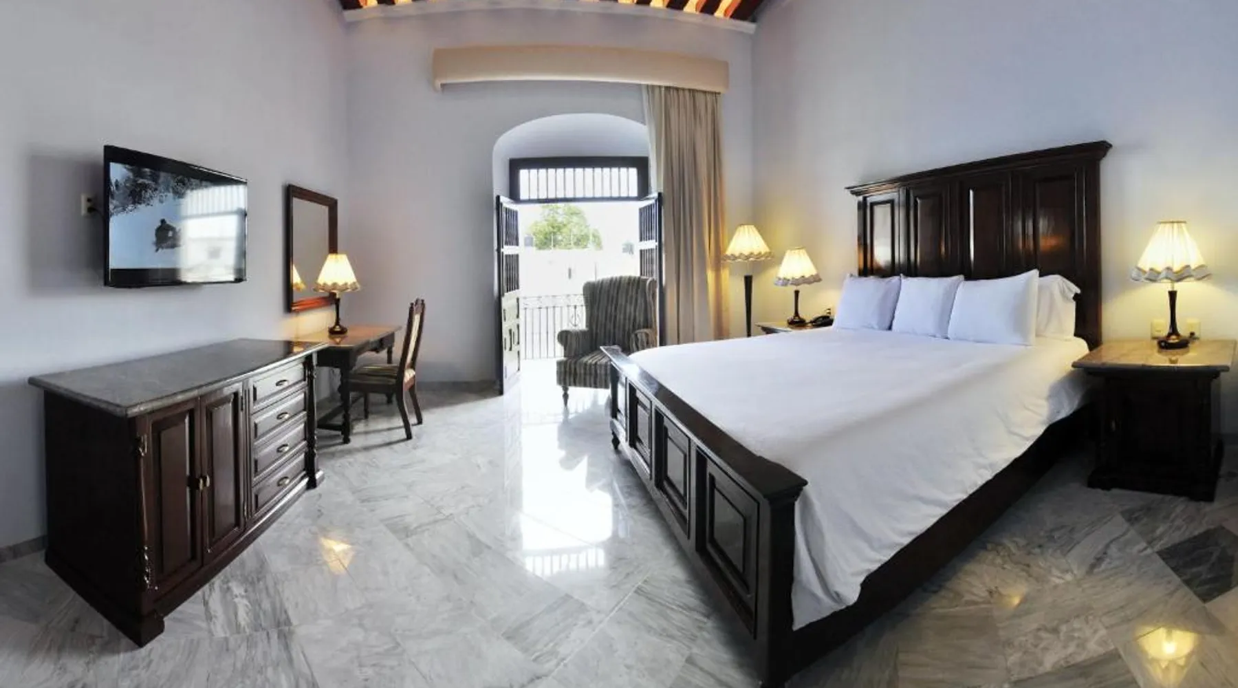 Comfortable Accommodations: Hotel Lopez Campeche in Campeche offers spacious rooms with air-conditioning, private bathrooms, and modern amenities. Guests enjoy free WiFi, balconies with city views, and comfortable furnishings. Outstanding Facilities: The hotel features a sun terrace, lush garden, and a year-round outdoor swimming pool. Additional facilities include a coffee shop, fitness center, and a tour desk. Free on-site private parking is available. Convenient Location: Located 2.5 mi from Ing. Alberto Acuña Ongay International Airport, the hotel is a 16-minute walk from Campeche XXI Convention Center. Nearby attractions include Campeche Cathedral and Campeche Museum. Guest Services: Private check-in and check-out, a 24-hour front desk, and free WiFi ensure a comfortable stay. Guests can enjoy continental, American, vegetarian, vegan, and gluten-free breakfast options with fresh fruits. This air-conditioned double room includes a flat-screen TV with cable channels, a private bathroom as well as a patio. The unit offers 1 bed.