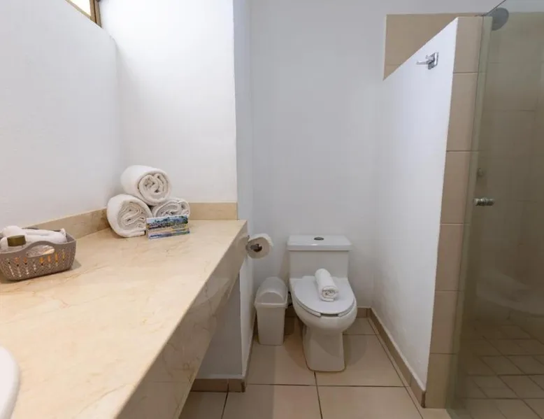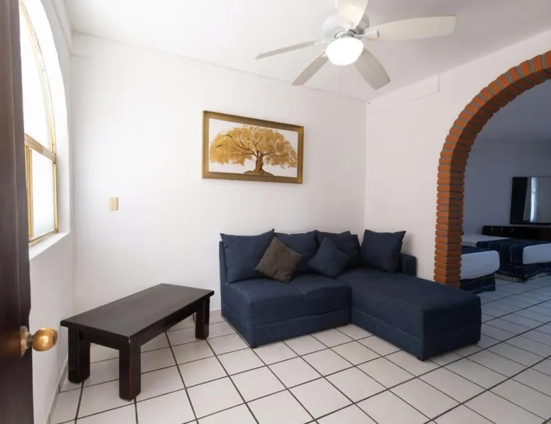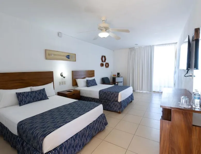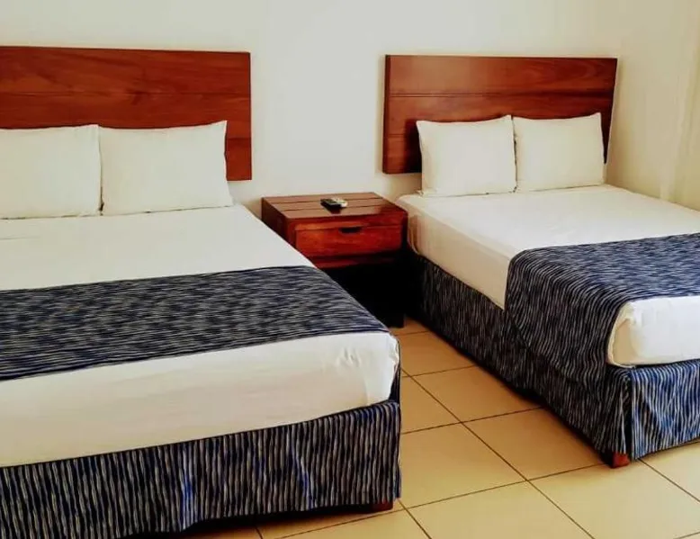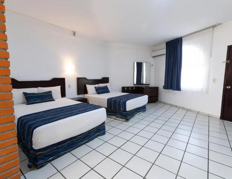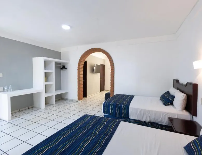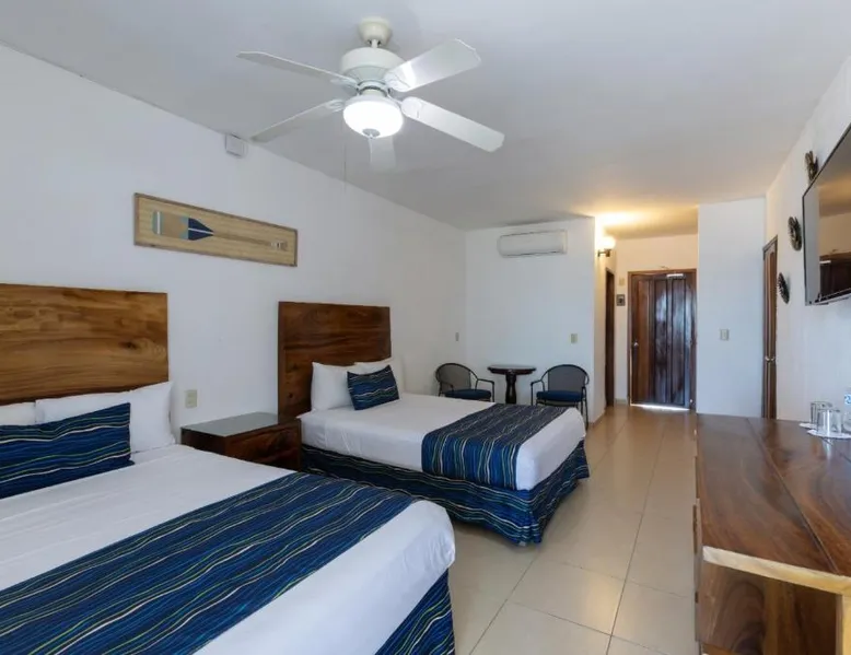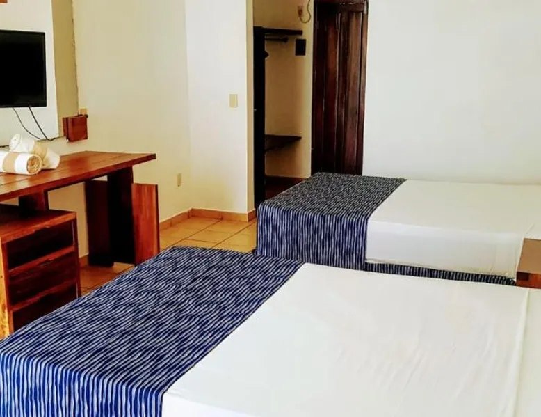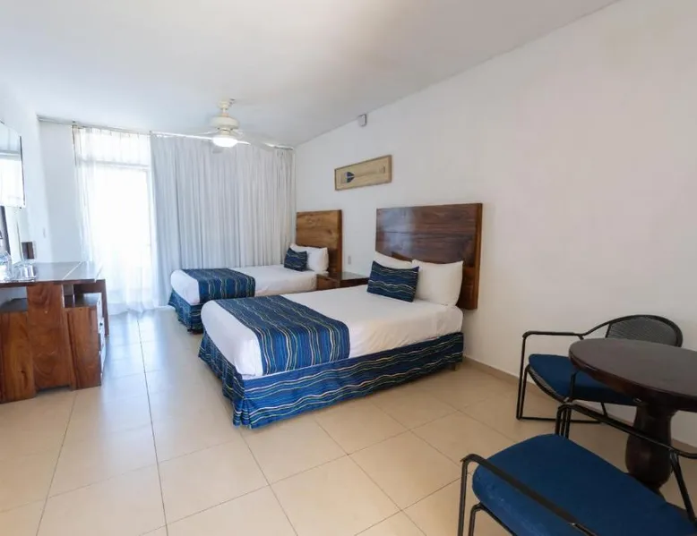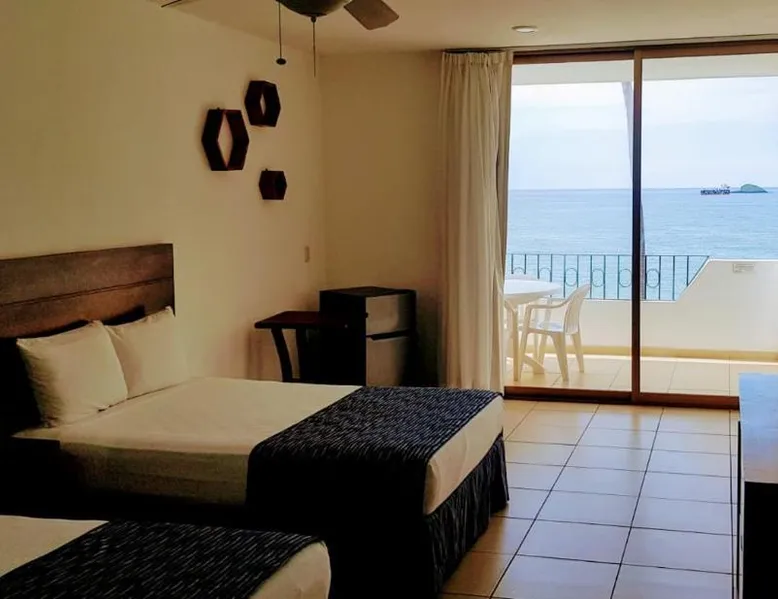 Comfortable Accommodations: Costa Alegre Hotel & Suites in Rincon de Guayabitos offers family rooms with air-conditioning, balconies, and private bathrooms. Each room includes a shower and TV, ensuring a pleasant stay. Exceptional Facilities: Guests can enjoy a year-round outdoor swimming pool, lush garden, and a children's playground. The hotel features a family-friendly restaurant serving lunch and dinner, a bar, and free WiFi in public areas. Convenient Location: Located a few steps from Rincon de Guayabitos, the hotel is 38 mi from Lic. Gustavo Diaz Ordaz Airport. Nearby attractions include Rincon de Guayabitos Beach and the Rincon de Guayabitos Pier. Guest Services: The hotel provides a 24-hour front desk, daily housekeeping, and free on-site private parking. Additional amenities include a elevator, entertainment staff, and a kids' pool. This air-conditioned quadruple room is consisted of of a flat-screen TV with cable channels, a private bathroom as well as a balcony with sea views. The unit has 2 beds.