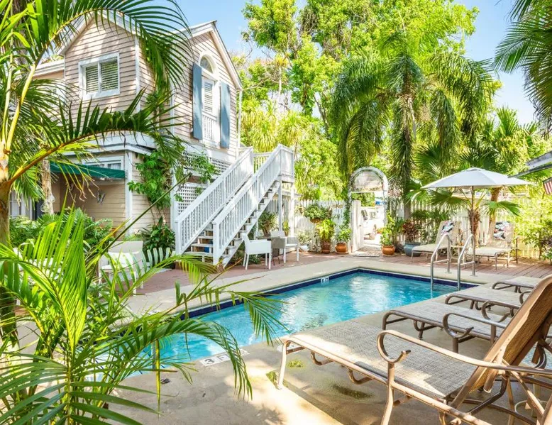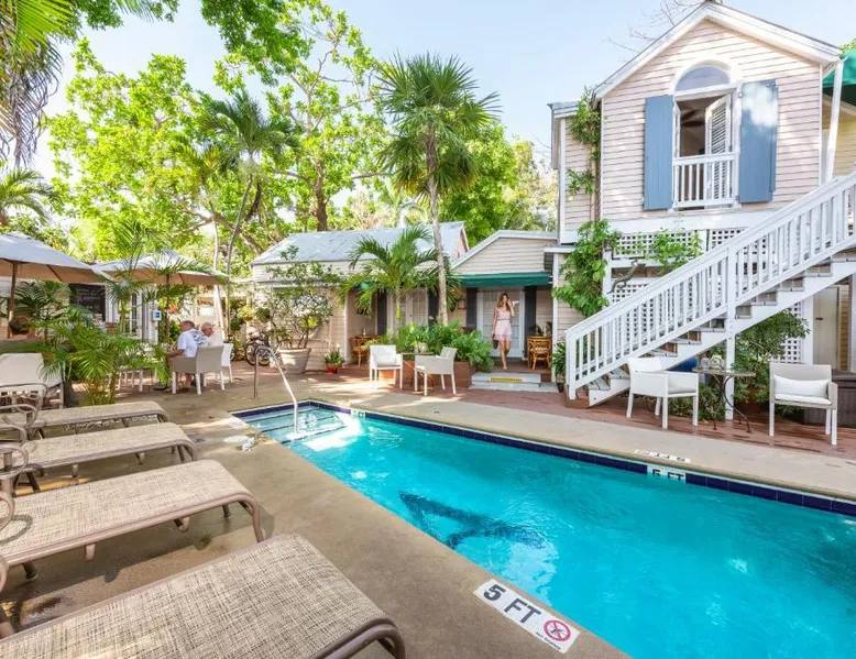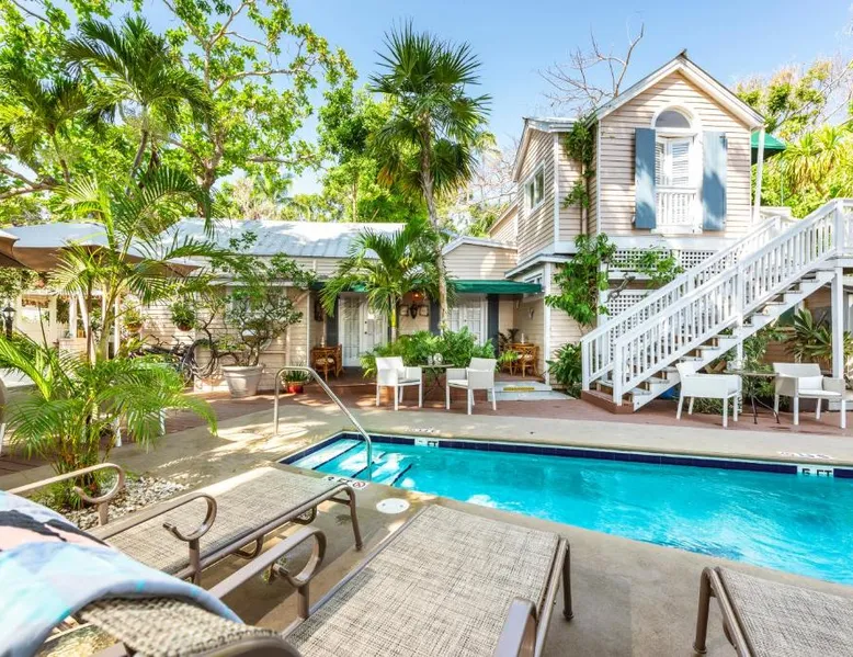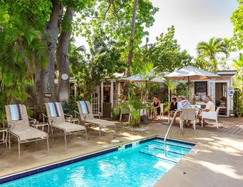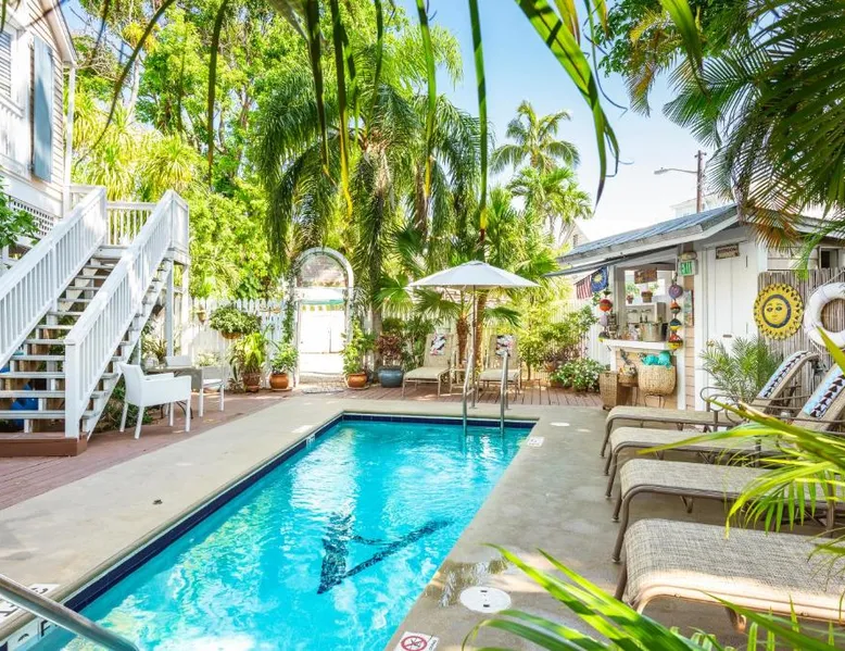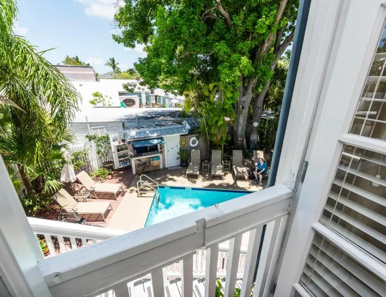 Located right off Duval Street, the Andrews Inn and Garden Cottages are less than 5 minutes’ walk from various dining and entertainment options. Guests can enjoy free WiFi and an outdoor pool. A flat-screen TV and an iPod docking station are featured in each classic room at this Key West bed and breakfast. Guests will also enjoy the convenience of a refrigerator in their room. Rooms also have a clock radio with auxiliary cables. Concierge services are located on site, as are luggage storage, beach towels, and on-site maid and bike hire services. A complimentary poolside happy hour is available and guestrooms located in the Main Inn offer a hot breakfast. The Ernest Hemingway Home and Museum is less than 5 minutes’ walk from the property and The Southernmost Point of the Continental United States and Mallory Square are just 0.5 miles away. Located on the 2nd floor, this queen room features a large French window overlooking the outdoor pool. Guests staying in this room must be able to walk up one flight of stairs. An alarm clock radio with auxiliary inputs is also available.