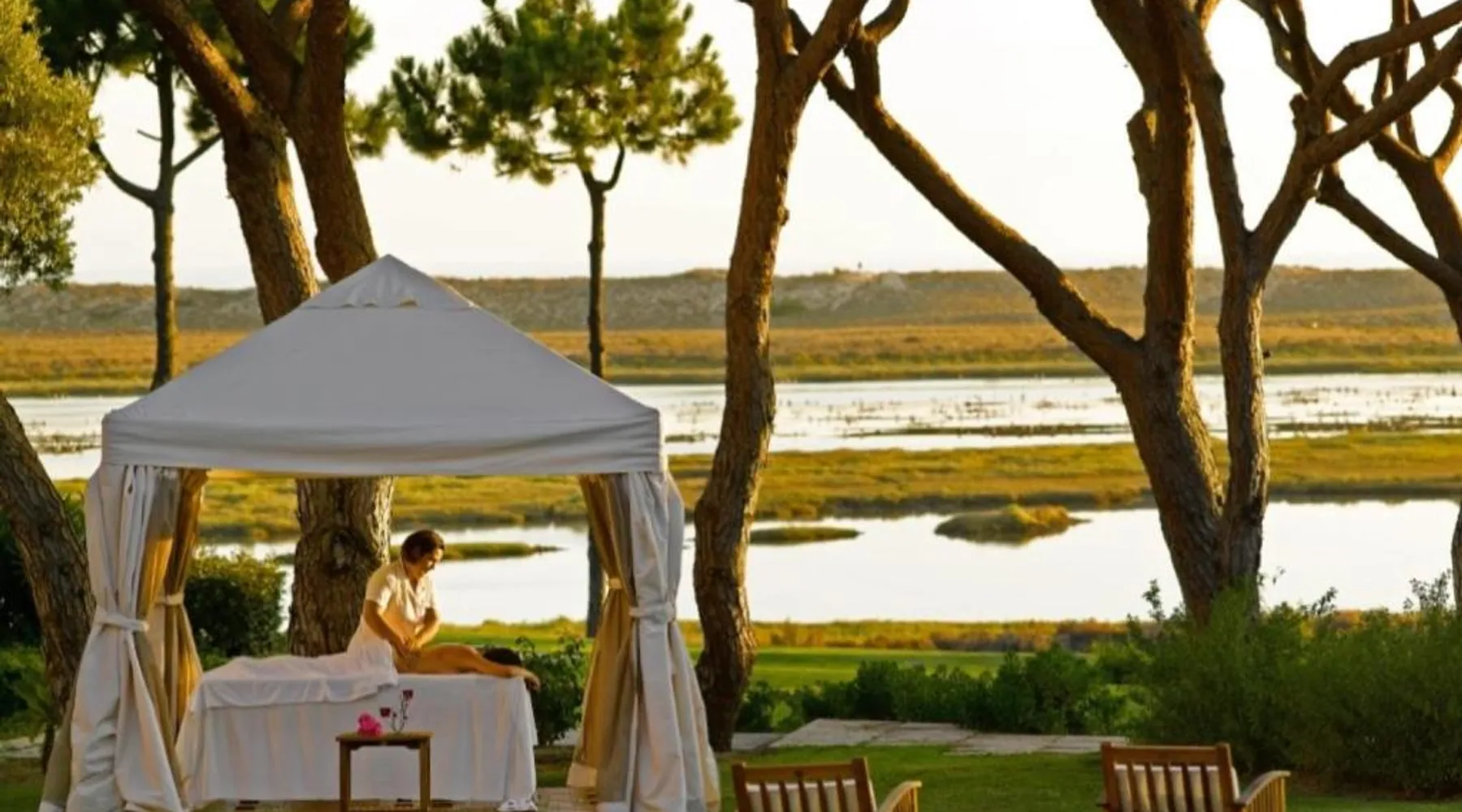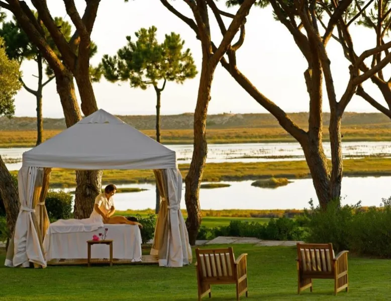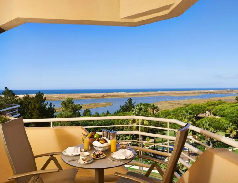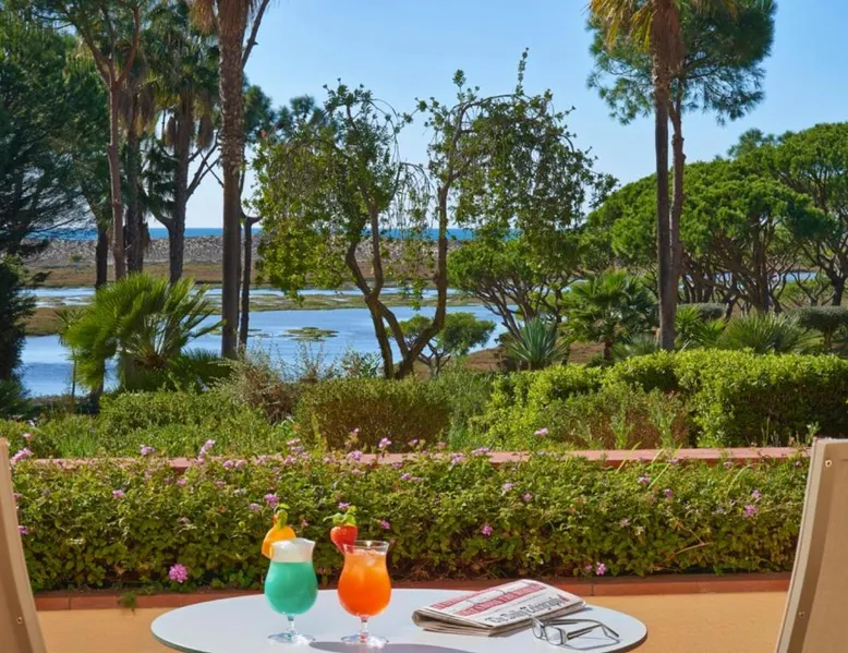 Set in the Ria Formosa Natural Park this 5-star unit is the only sea front hotel in Quinta do Lago. Guests of the Hotel Quinta do Lago enjoy walking access to an exclusive sandy beach, where the hotel has its own private area. The spacious and elegantly decorated rooms, with marble bathrooms, have private balconies from which guests can enjoy views over the Ria Formosa’s lagoon, the sea or the hotel's gardens. Each room features a flat-screen satellite TV and air conditioning. In the Briza do Mar restaurant guests can enjoy the traditional Algarvian cuisine in an open-air terrace with panoramic views. The Ca’ d'Oro offers fine Venetian cuisine in an intimate ambiance. The Laguna Piano Bar is the ideal spot to enjoy champagne or a cocktail while overlooking the surrounding scenery. The hotel has outdoor and indoor heated pools, and a Spa featuring a choice of many rejuvenating treatments. Just a few steps away are the Quinta do Lago golf courses, South, North and Laranjal as well as San Lorenzo. Shopping facilities are within 3.1 mi. Faro International Airport is a 20-minute drive away and Loulé is 11 mi away. Located in the Lagoon wing of the Hotel and with a balcony overlooking the garden, this spacious room is elegantly decorated and features a double bed or 2 twin beds. All units include a flat-screen TV with satellite channels and a private bathroom with a bath or shower.