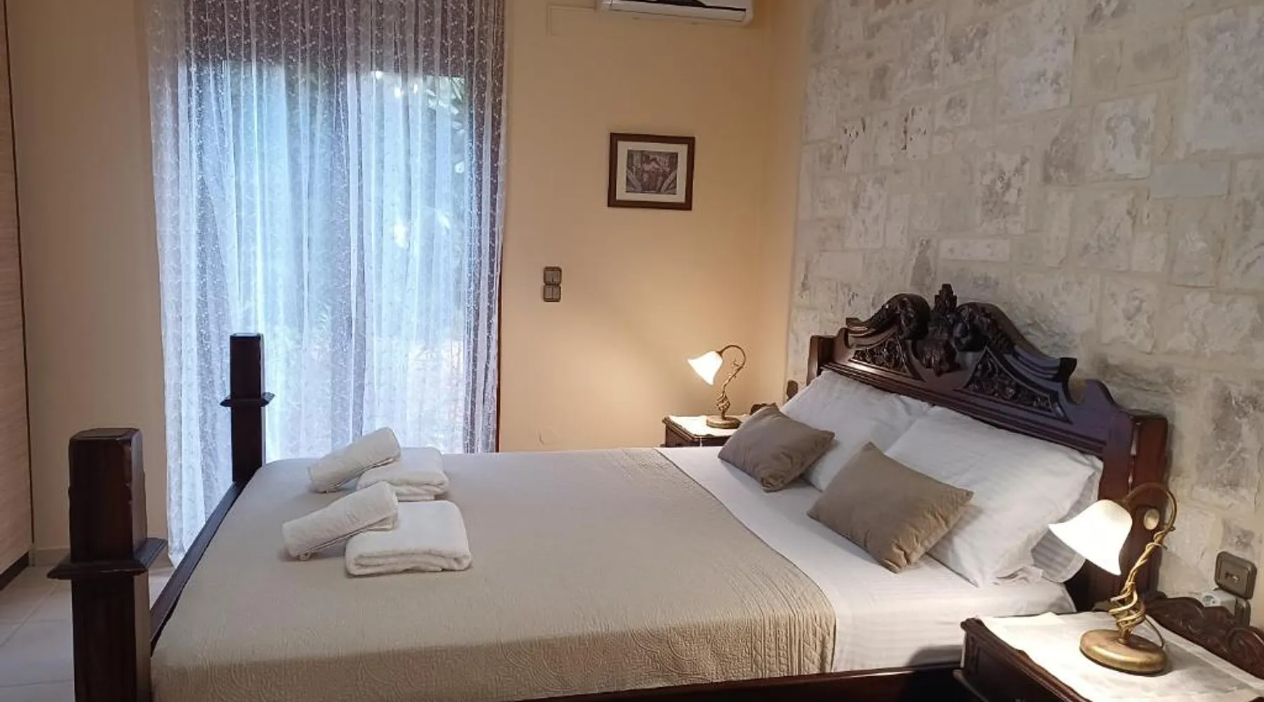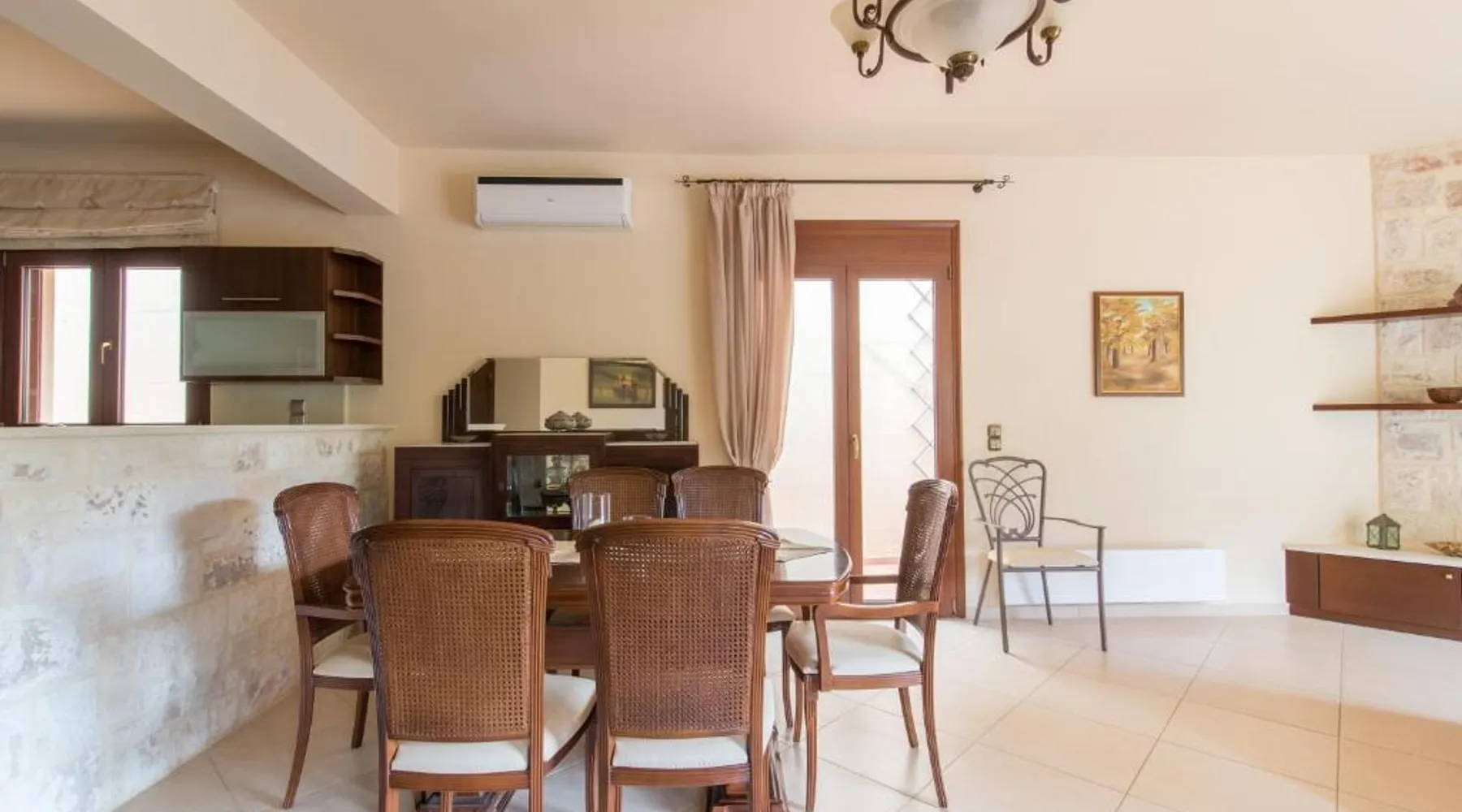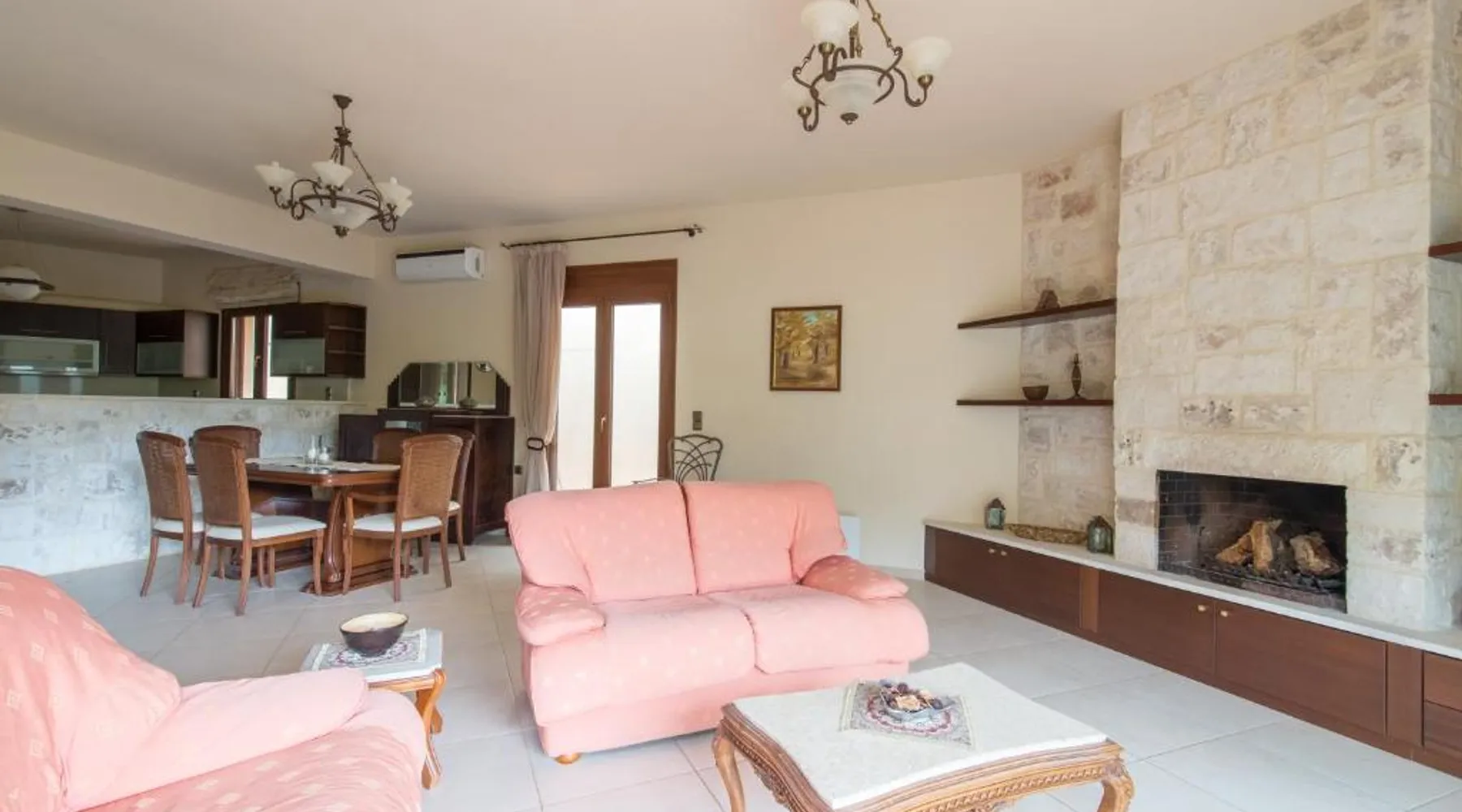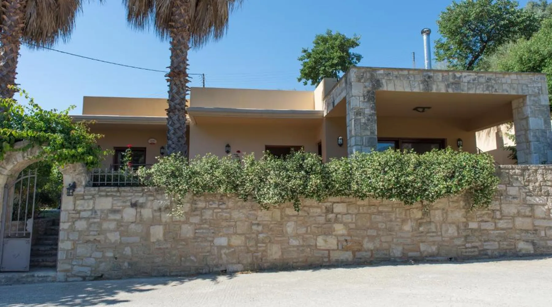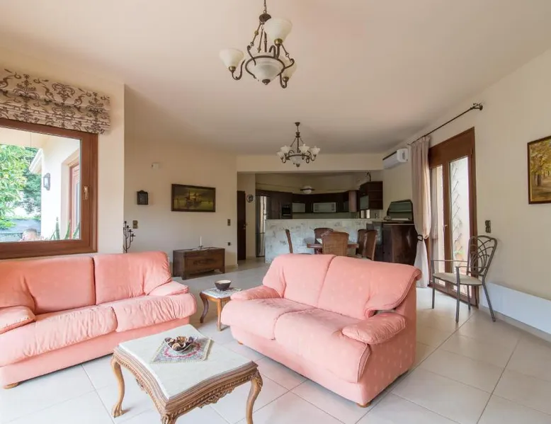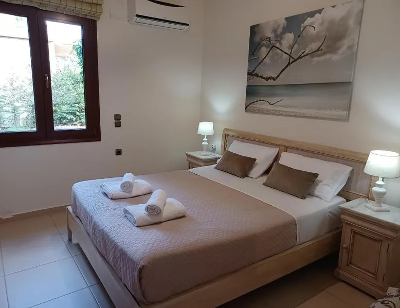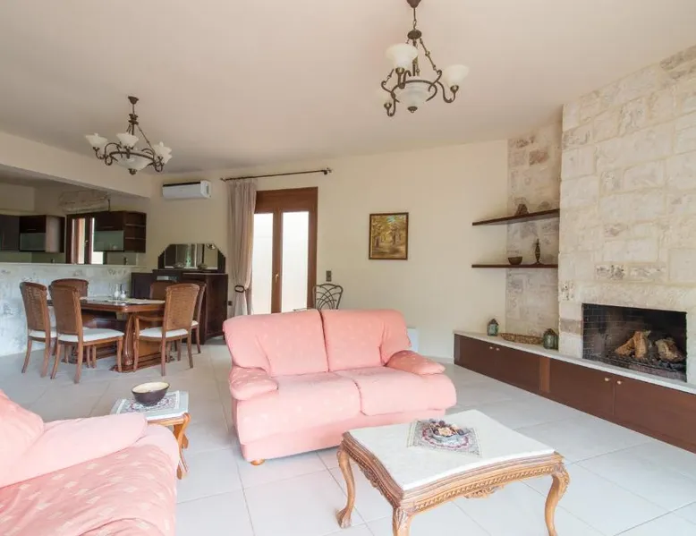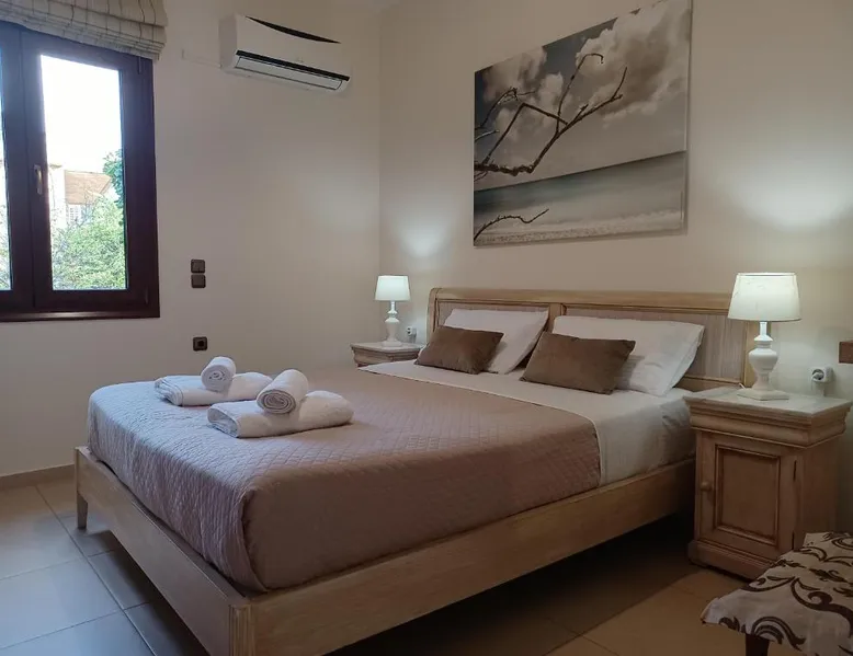 Comfortable Accommodations: Heraklion Comfy House with Mountain View in Heraklion offers a villa with three bedrooms and two bathrooms. The property features a garden and terrace, complemented by free WiFi. Modern Amenities: Guests enjoy air-conditioning, a fully equipped kitchen, and a washing machine. Additional facilities include a fireplace, barbecue, and outdoor seating area. Convenient Location: Located 11 mi from Heraklion International Airport, the villa is a short walk from Palaiokastro Beach and 2625 feet from Palaiokastro. Nearby attractions include Venetian Walls and The Palace of Knossos. Guests will have a special experience as this villa features a fireplace. Featuring a private entrance, this air-conditioned villa is consisted of of a kitchen, 3 bedrooms and 2 bathrooms with a bath and a shower. Guests will find a stovetop, a refrigerator, a dishwasher and kitchenware in the well-equipped kitchen. The villa also has a barbecue. Boasting a terrace with garden views, this villa also offers a washing machine and a flat-screen TV with satellite channels. The unit offers 3 beds.