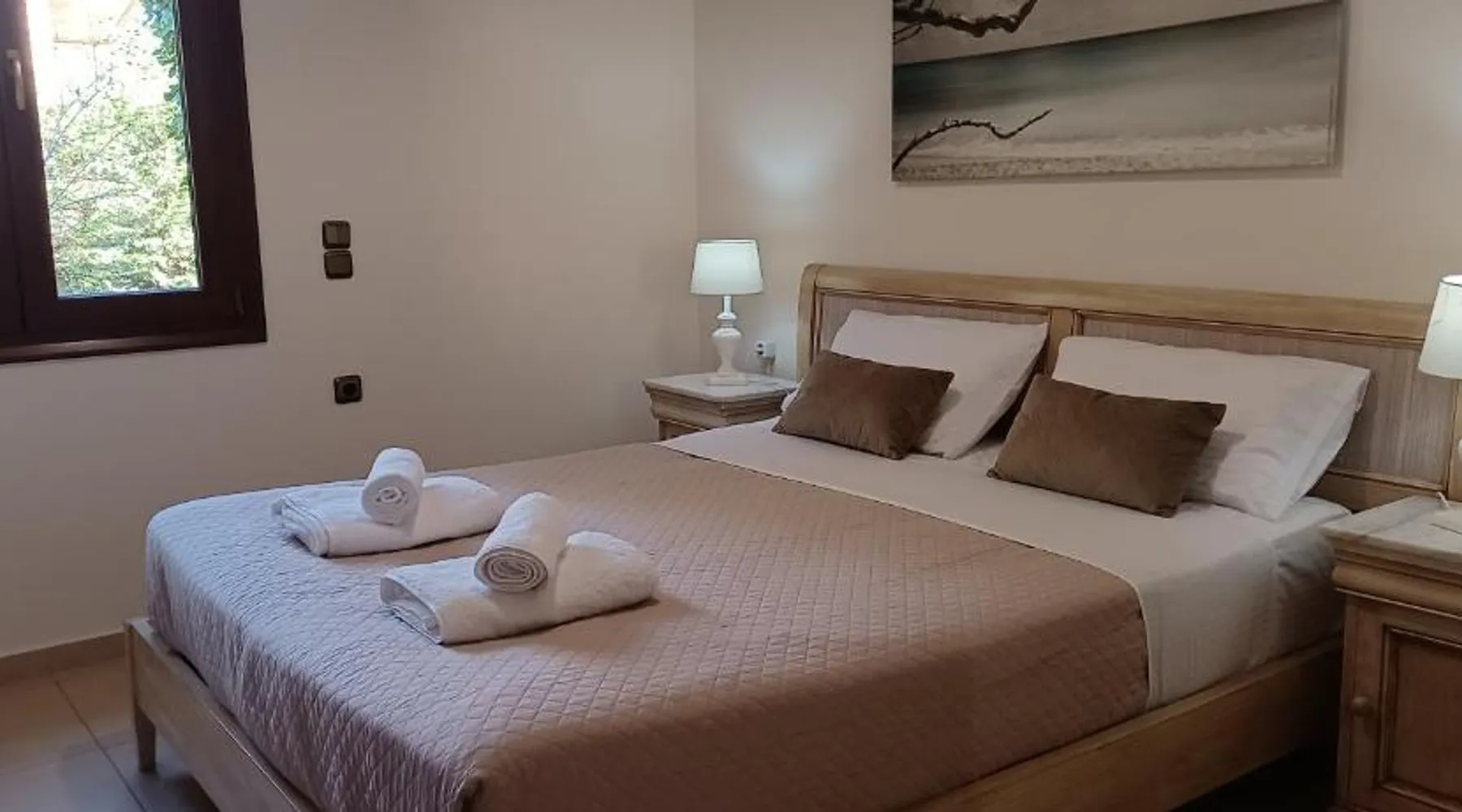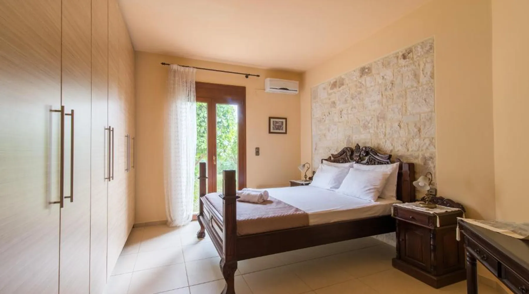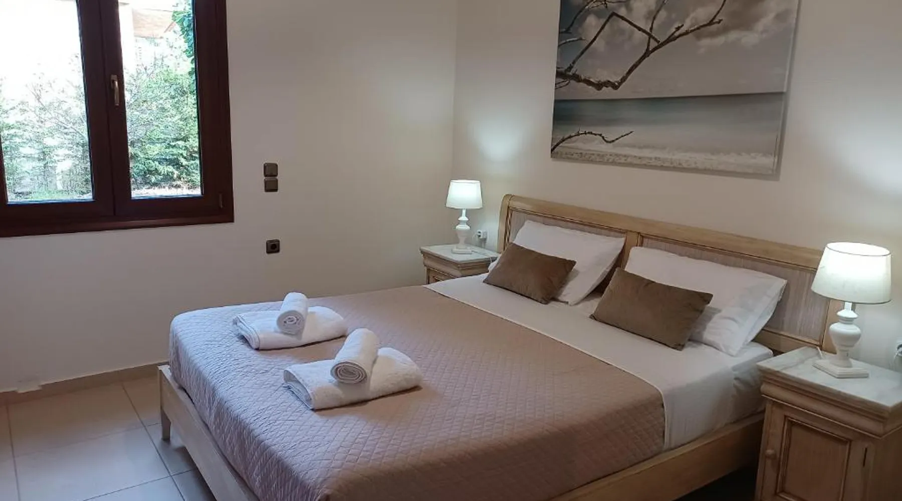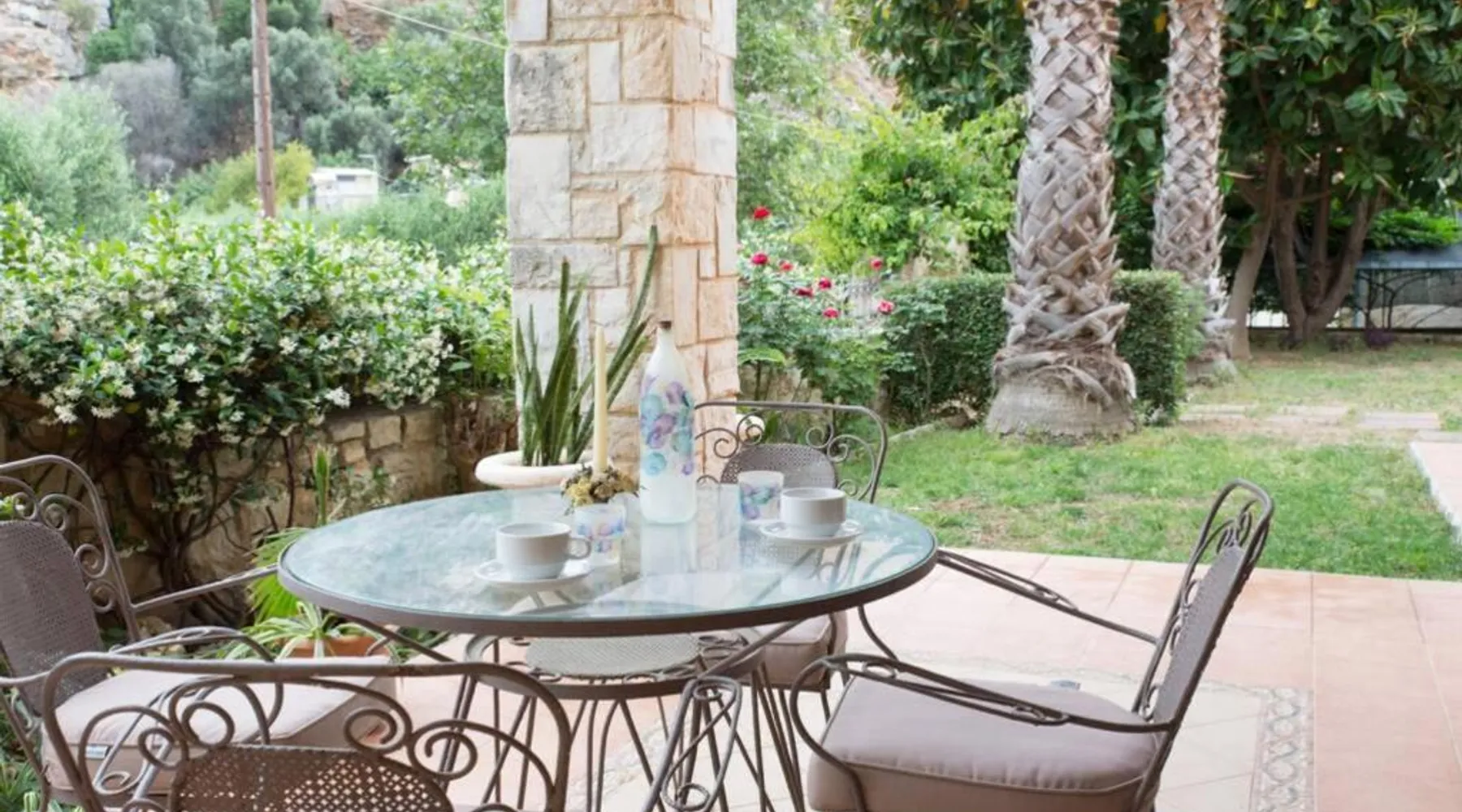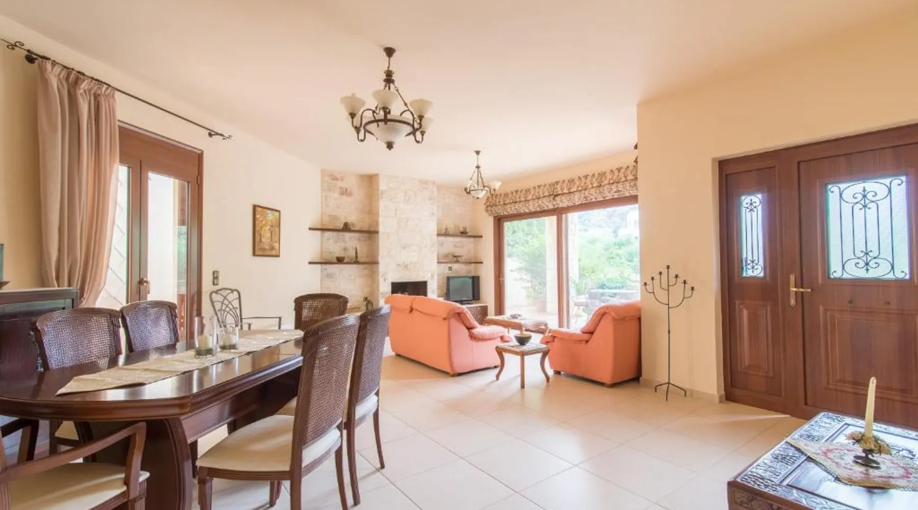 Comfortable Accommodations: Heraklion Comfy House with Mountain View in Heraklion offers a villa with three bedrooms and two bathrooms. The property features a garden and terrace, complemented by free WiFi. Modern Amenities: Guests enjoy air-conditioning, a fully equipped kitchen, and a washing machine. Additional facilities include a fireplace, barbecue, and outdoor seating area. Convenient Location: Located 11 mi from Heraklion International Airport, the villa is a short walk from Palaiokastro Beach and 2625 feet from Palaiokastro. Nearby attractions include Venetian Walls and The Palace of Knossos. Guests will have a special experience as this villa features a fireplace. Featuring a private entrance, this air-conditioned villa is consisted of of a kitchen, 3 bedrooms and 2 bathrooms with a bath and a shower. Guests will find a stovetop, a refrigerator, a dishwasher and kitchenware in the well-equipped kitchen. The villa also has a barbecue. Boasting a terrace with garden views, this villa also offers a washing machine and a flat-screen TV with satellite channels. The unit offers 3 beds.