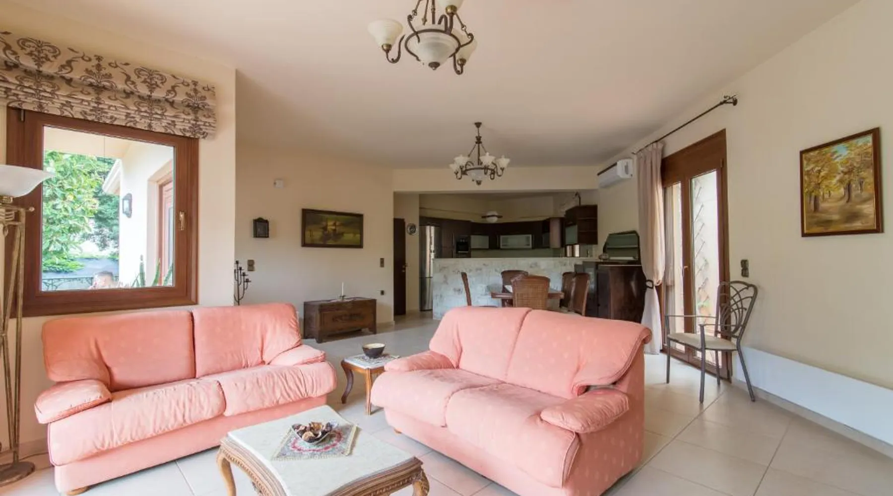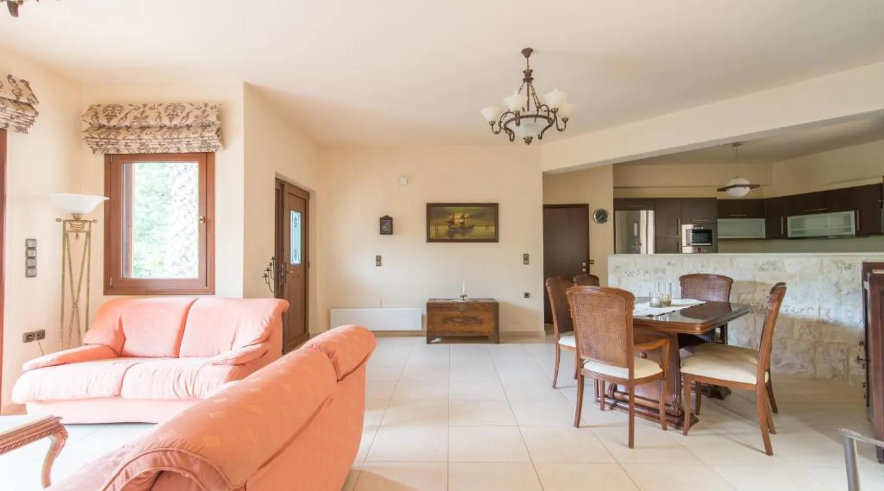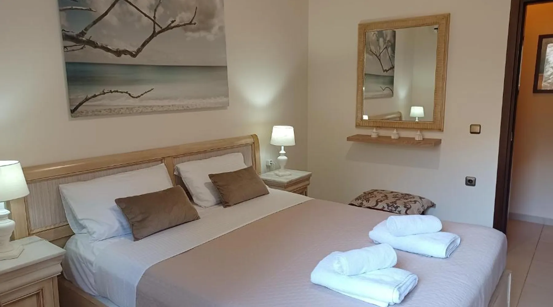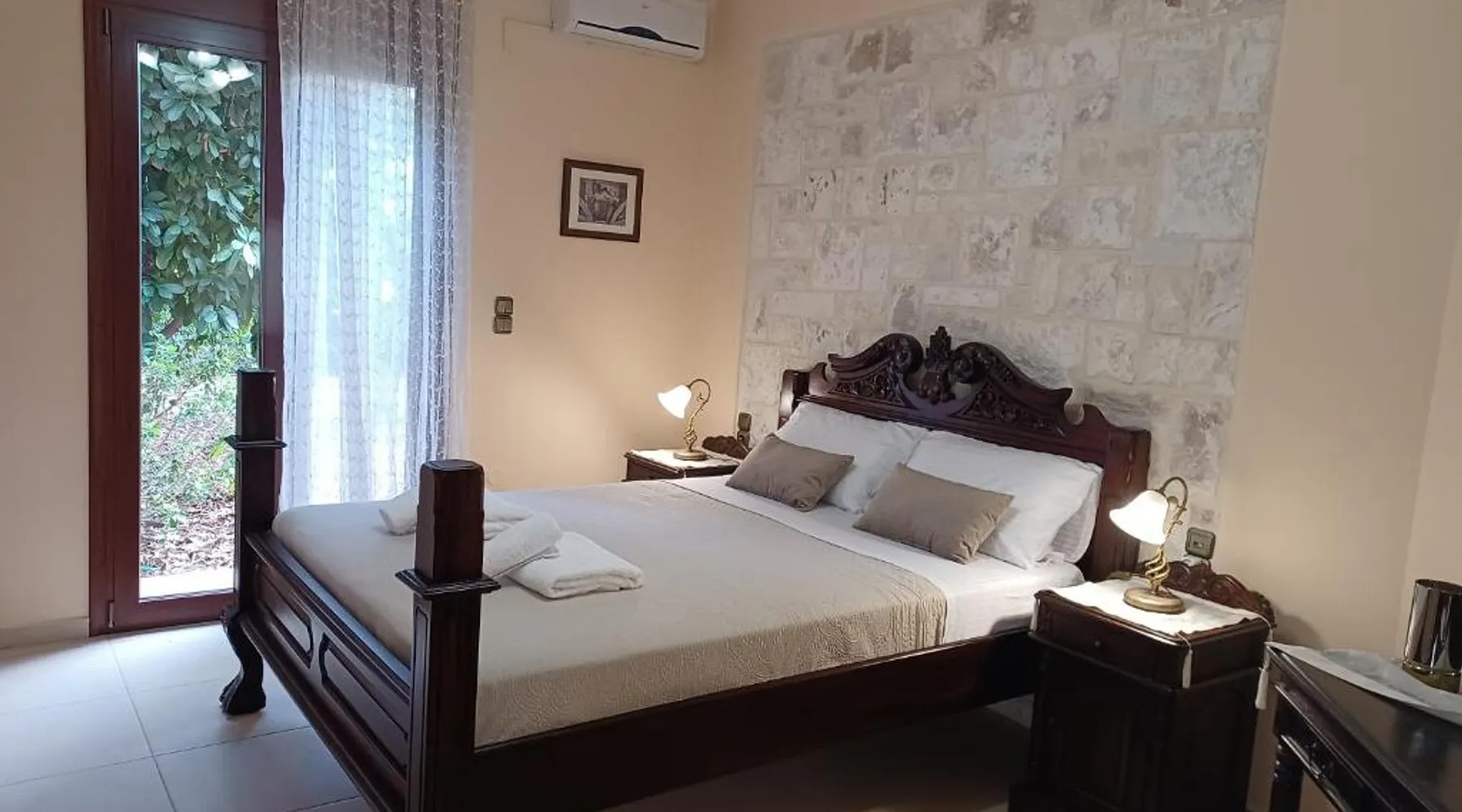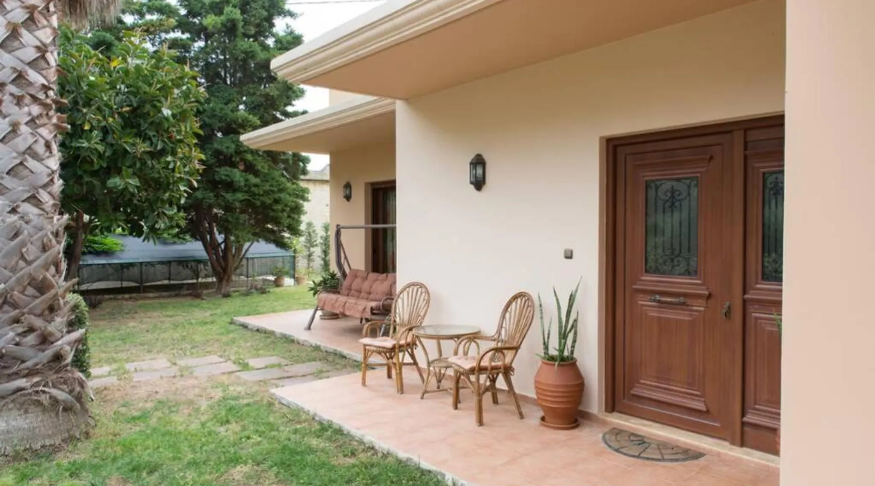 Comfortable Accommodations: Heraklion Comfy House with Mountain View in Heraklion offers a villa with three bedrooms and two bathrooms. The property features a garden and terrace, complemented by free WiFi. Modern Amenities: Guests enjoy air-conditioning, a fully equipped kitchen, and a washing machine. Additional facilities include a fireplace, barbecue, and outdoor seating area. Convenient Location: Located 11 mi from Heraklion International Airport, the villa is a short walk from Palaiokastro Beach and 2625 feet from Palaiokastro. Nearby attractions include Venetian Walls and The Palace of Knossos. Guests will have a special experience as this villa features a fireplace. Featuring a private entrance, this air-conditioned villa is consisted of of a kitchen, 3 bedrooms and 2 bathrooms with a bath and a shower. Guests will find a stovetop, a refrigerator, a dishwasher and kitchenware in the well-equipped kitchen. The villa also has a barbecue. Boasting a terrace with garden views, this villa also offers a washing machine and a flat-screen TV with satellite channels. The unit offers 3 beds.