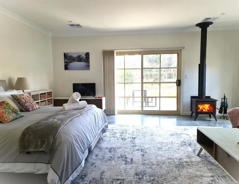 Elegant Accommodations: Canyonleigh Retreat in Canyonleigh offers a recently renovated farm stay with a beautiful garden and free WiFi. Guests enjoy private check-in and check-out services, a lounge, outdoor fireplace, and outdoor seating areas. Comfortable Amenities: The property features family rooms, a terrace, kitchenette, balcony, and private bathrooms with walk-in showers. Additional amenities include air-conditioning, garden views, and free toiletries. Convenient Location: Located 57 mi from Shellharbour Airport, the farm stay is near attractions such as Fitzroy Falls (24 mi) and Moss Vale Golf Club (13 mi). Guests can enjoy hiking and cycling activities. Exceptional Service: Highly rated for its garden, host, and property staff, Canyonleigh Retreat provides breakfast in the room, room service, and free on-site private parking. This suite provides a fireplace. Boasting a private entrance, this spacious suite also includes 1 bedroom, a seating area and 1 bathroom with a walk-in shower and a hairdryer. The air-conditioned suite offers a flat-screen TV, soundproof walls, a mini-bar, a tea and coffee maker as well as garden views. The unit has 1 bed.