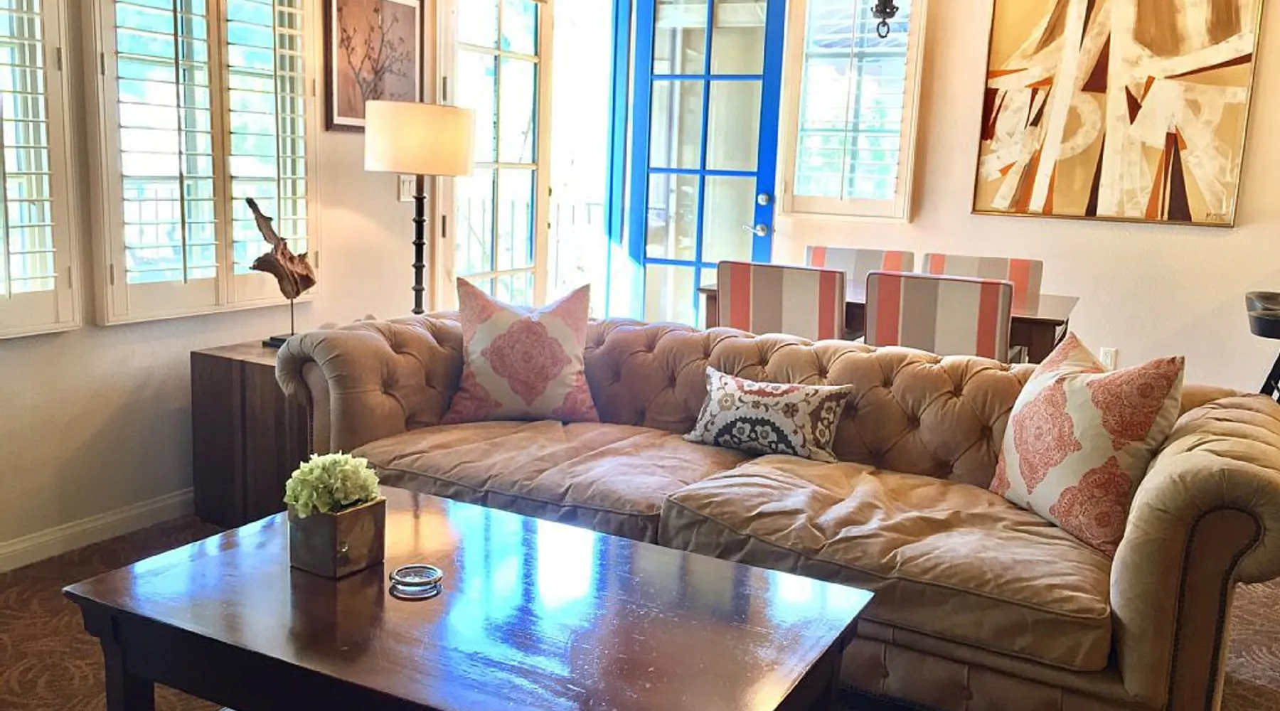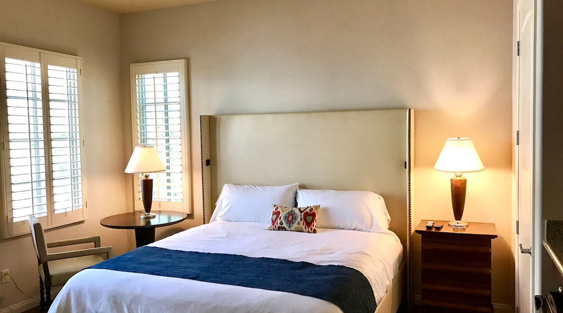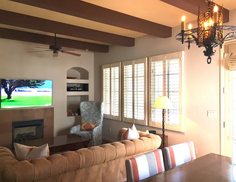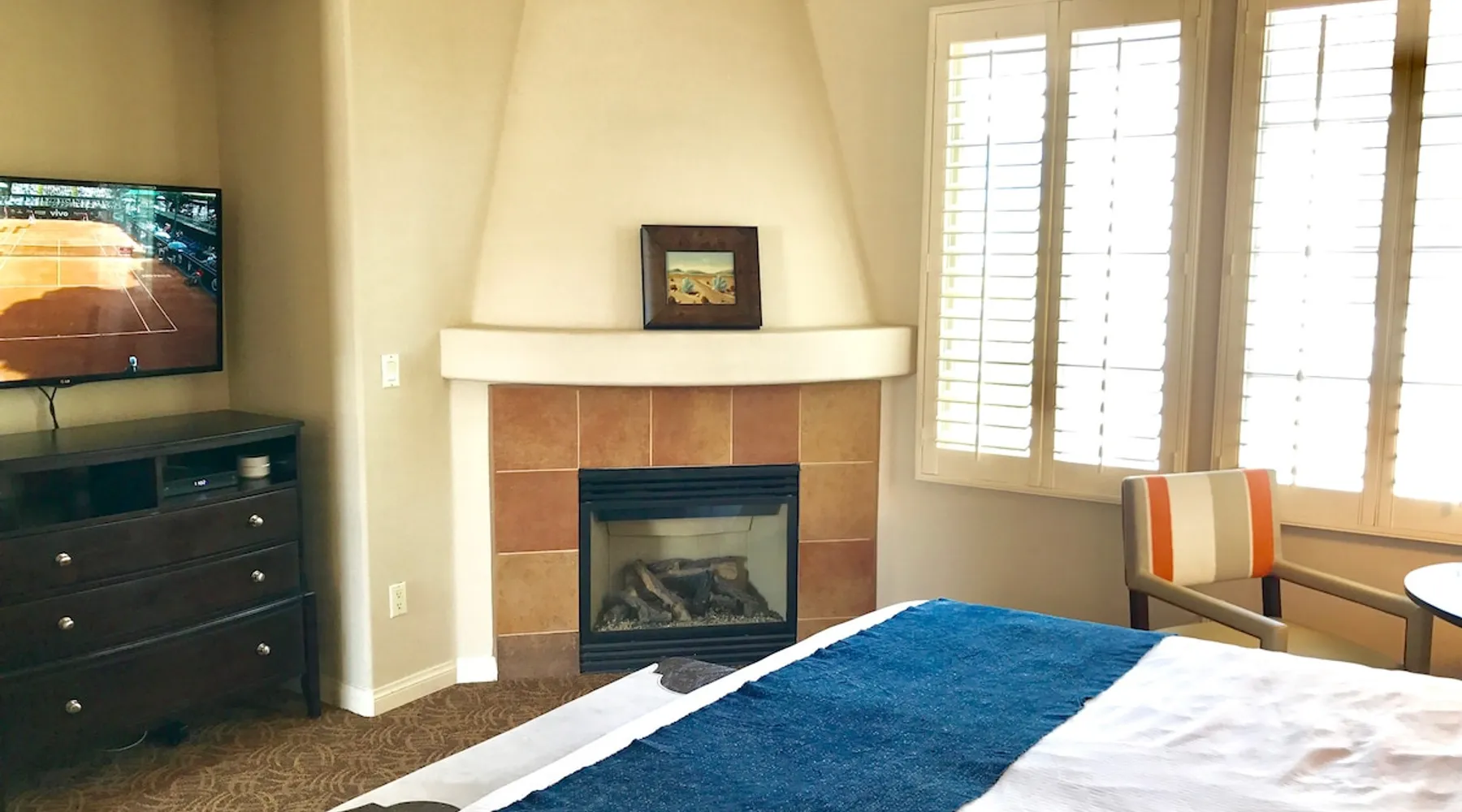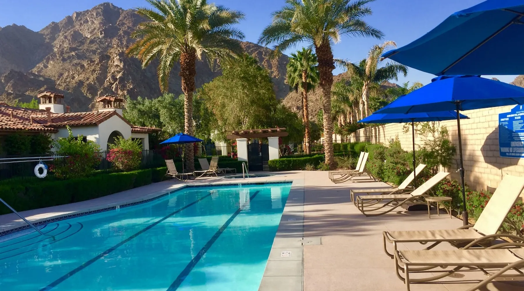 Legacy Villas is an exclusive resort community located in La Quinta, CA. The property is a two bedroom, two bath second floor home with a full size kitchen, dining area and private balcony. The unit features period architectural details, gracious living spaces, and unparalleled north and west direct exposures to the Santa Rosa mountains. ** Pools open - Social distancing rules in effect - Limiting pools capacity ** Permit #064622 The space The property is a three bedroom second floor home enjoying unparalleled north and west direct exposures to the Santa Rosa Mountains. The expansive corner great room is tastefully furnished and complete with a fireplace and 60" Samsung 4K flatscreen HDTV. Interior architectural details include a gracious entry foyer, ten foot ceiling height, exposed beams, as well as vintage Spanish Colonial lighting. The kitchen is complete with custom cherry cabinetry, granite countertops, a professional Dacor stainless steel gas range, a Dacor microwave/convection oven as well as a Bosch SilencePlus 44dBA dishwasher. The windowed dining area is adjacent the kitchen and opens onto the private outdoor terrace. The master bedroom features a king sized bed, fireplace, 50" LG flatscreen TVs, en-suite master bathroom with soaking tub, and private shower enclosure. The second bedroom features a queen sized bed, double closet space and a 42" flat screen TV. Further amenities include a washer/dryer, private balcony with barbecue, and free wifi. Located steps from the property, the main clubhouse includes three pools with cabanas, two spas, fitness center, hammock garden, outdoor fireplaces, community barbecue, cafe, and meeting rooms. Legacy Villas is a private gated community with 24x7 security, located two blocks from the La Quinta Resort and close to restaurants, tennis, golf, shopping and casinos. CHECKING OUT: Please check out of our rental by 11:00AM. By checking out by this time ensures that we have enough time to clean the property and get it ready for our next guest as the cleaning team is scheduled to arrives. For any late check out, we will reserve the right to charge $200 if exceed 30 minutes and half day rate if exceed one hour. • Check in time 4:00PM •Check out time 11:00AM - EARLY CHECK-IN/ LATE CHECK-OUT - Stay a little longer and add up to 2 hours before or after your arrival for $75/hour. Half days (11am arrival or 4pm departure) are also available for 50% of the nightly rate for the night needing to be blocked. Please let as know beforehand so that any special request we can be accommodated. PETS: Pets are not permitted. There is a pet cleaning fee is $150 if not disclosed. Please inquire about Service Animals and next steps to waive the fees. MASTER BEDROOM • King size bed. • Wide-screen LG 46" TV • Large private bathroom with granite countertops, soaking tub, and separate glass shower • One touch fireplace • Ceiling Fan SECOND BEDROOM • Queen Size Bed. • Wide-screen 40" HDTV • Ceiling Fan LIVING ROOM: • Leather Sofa • Large-screen 4K 60" Smart TV mounted above the fireplace with Netflix and Tivo • One Touch Gas fireplace • Large windows with blue trim and plantation shutters • Ceiling Fan • Queen Air Mattress for additional guests DINING ROOM: • Dining Table with seating for 6 • Bar height granite counter for additional seating • French doors that open to a private balcony with BBQ and table for alfresco dining KITCHEN: • Chef’s kitchen with custom cherry cabinetry, solid granite countertops, pantry, and storage • Full Size KitchenAid Refrigerator with Ice Dispenser and Filtered Water Bosch dishwasher garbage disposal • Bosch SilencePlus 44 dBA dishwasher • Professional Dacor stainless gas range and Dacor Microwave and Convection Oven • All kitchenware, barware, glassware, silverware • Toaster, Coffee Maker, and Teapot Included LAUNDRY: • Stackable washer and dryer in unit LEGACY VILLAS AMENITIES: • 11,000 SQ Foot Clubhouse • Poolside Restaurant (Legacy Grill) - Open during High Season • State of the art Fitness Center • Hammock Garden with 12 Hammocks • 12 Sparkling Saltwater Pools and 11 Spas throughout the community • 19 Fountains with Walking Trails throughout the property • Main Pool area includes poolside cabanas, showers, and walk-in wading pool • BBQ Grills and Outdoor Fireplaces • Walking distance to the World Famous La Quinta Resort with restaurants, SPA, shopping, and golf OTHER FEATURES: • All TVs are connected to Spectrum Cable. • Two zone central air conditioning and heating • Iron and Ironing Board, Hairdryer • Guest and street parking available nearby. • Close to golf courses at La Quinta Resort, PGA West, Silver Rock, and Indian Wells • Enjoy shopping and restaurants in Old Town La Quinta Village, the New Thermal Equestrian Center, take a short Drive to El Paseo Shopping District or the Living Desert (Zoo) • Home is less than 5 miles to the Stagecoach and Coachella Music Festivals at the Polo Fields Keywords: Villa, Luxury, Estate, Single Family House, Resort, Golf, Tennis, Pool, Spa, 3 BR, Golf Course, Mountain Views, family friendly, Palm Springs area, La Quinta, Kids love us, close to La Quinta Resort, no smoking, Coachella, StageCoach, Stage Coach. Guest access LEGACY VILLAS AMENITIES: • 11,000 SQ Foot Clubhouse • Poolside Restaurant (Legacy Grill) - Open during High Season • State of the art Fitness Center • Hammock Garden with 12 Hammocks • 12 Sparkling Saltwater Pools and 11 Spas throughout the community • 19 Fountain with Walking Trails throughout • Main Pool area includes poolside cabanas, showers, and walk-in wading pool • 24 hour guard gated community • BBQ Grills and Outdoor Fireplaces • Walking distance to the World Famous La Quinta Resort with restaurants, SPA, shopping, and golf Other things to note OTHER FEATURES: • All TVs are connected to Time Warner Cable. • Two zone central air conditioning and heating • Iron