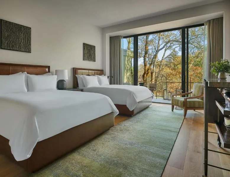 Elegant Accommodations: Montage Healdsburg in Healdsburg offers luxurious rooms with mountain views, balconies, and private bathrooms. Each room features air-conditioning, free WiFi, and modern amenities. Exceptional Facilities: Guests can enjoy spa facilities, a swimming pool with a view, sauna, fitness center, sun terrace, restaurant, bar, and free WiFi. Additional amenities include a steam room, hot tub, and yoga classes. Dining Experience: The family-friendly restaurant serves French, seafood, Vietnamese, local, Latin American, and European cuisines. Breakfast options include American and à la carte, while brunch, lunch, and dinner are available. Prime Location: Located 12 mi from Charles M. Schulz Sonoma County Airport, the hotel is near attractions such as Healdsburg Plaza (3.1 mi) and Luther Burbank Center for the Arts (14 mi). Guests appreciate the scenic mountain views and excellent service. Providing free toiletries and bathrobes, this studio includes a private bathroom with a walk-in shower, a bath and a hairdryer. The spacious studio provides air conditioning, a seating area, a wardrobe, a safe deposit box and a flat-screen TV with cable channels. The unit offers 2 beds.