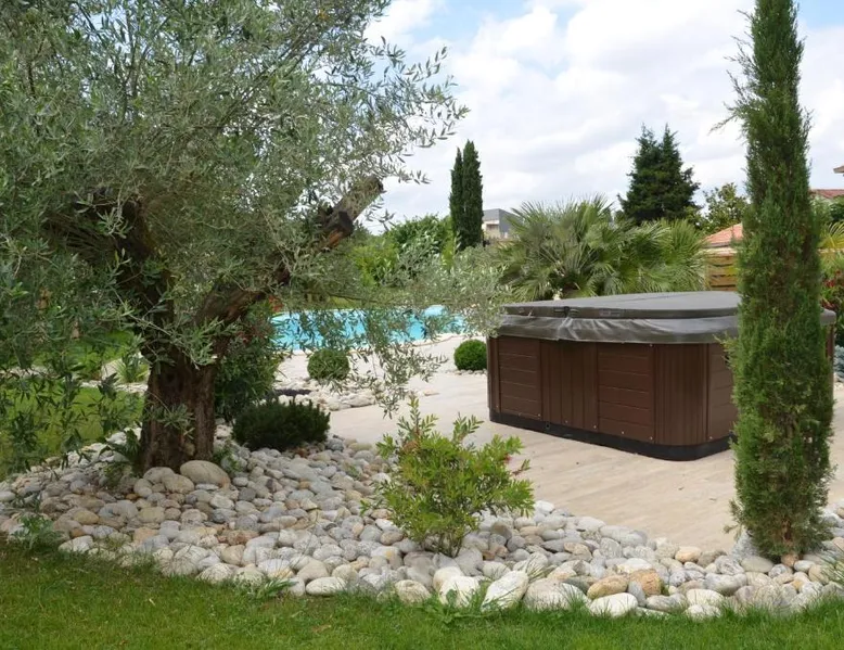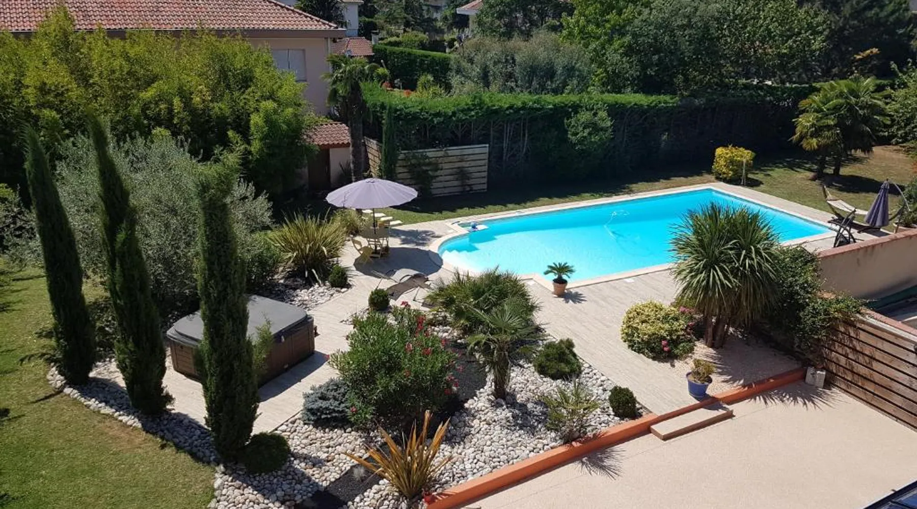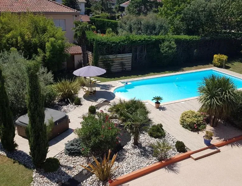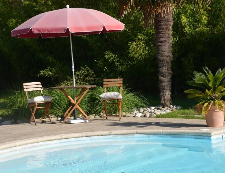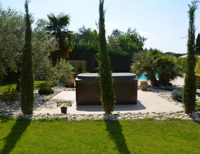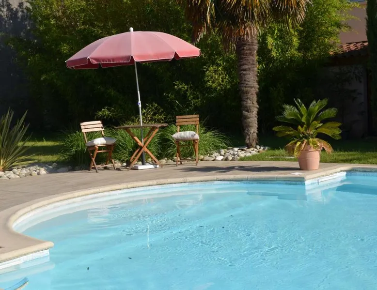 Elegant Accommodations: Chambre D'hôtes Et Spa in Agen offers adults-only bed and breakfast with spa facilities, a swimming pool with a view, sun terrace, and a lush garden. Guests enjoy free WiFi, air-conditioning, and private check-in and check-out services. Relaxing Amenities: The property features an open-air bath, hot tub, and a casino. Additional facilities include a 24-hour front desk, coffee shop, outdoor seating area, and bicycle parking. Free on-site private parking is available. Comfortable Living: Rooms offer private bathrooms with walk-in showers, bathrobes, and free toiletries. Guests can enjoy continental or gluten-free breakfast with fresh pastries and juice. The swimming pool and hot tub are highly rated by guests. Local Attractions: Located 55 mi from Bergerac Dordogne Périgord Airport, the bed and breakfast is near Stade Armandie (1.1 mi) and Agen Exhibition Center (2.1 mi). Hiking opportunities are available in the surrounding area. This double room's standout features are the pool with a view and hot tub. This air-conditioned double room is consisted of of a flat-screen TV with streaming services, a private bathroom as well as a terrace with garden views. The unit has 1 bed.