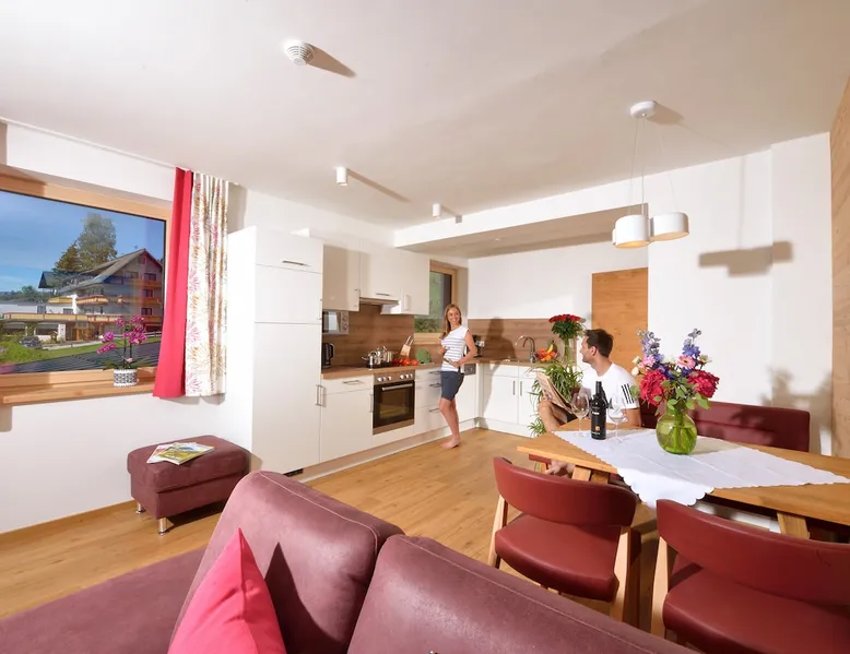 This modern and brightly furnished holiday home is located in Tauplitz in the Ausseerland. The holiday apartment has 2 bedrooms, 1 bathroom, 1 guest toilet, and a cozy living room with an open kitchen. On 75m² it offers space for up to 5 people. From the beautiful terrace, you have a wonderful view of the surrounding mountain landscape. With the well-equipped kitchen, it is perfect for self-catering, if you wish. The space This modern and brightly furnished holiday home is located in Tauplitz in the Ausseerland. The holiday apartment has 2 bedrooms, 1 bathroom, 1 guest toilet, and a cozy living room with an open kitchen. On 75m² it offers space for up to 5 people. From the beautiful terrace, you have a wonderful view of the surrounding mountain landscape. With the well-equipped kitchen, it is perfect for self-catering, if you wish. If not, the tranquil town of Tauplitz also offers restaurants and cafés, most of which can be reached on foot. With the family ski area and hiking area "Die Tauplitz", which can also be reached on foot, this apartment is perfect for your family vacation. Excursion destinations such as the world heritage Hallstatt or the Dachstein glacier can be easily and quickly reached by car from Tauplitz. Of course, the apartment includes a parking space, WiFi and satellite Tv, and many other amenities such as a ski room. Other things to note Included services - Heating Optional services - Pet: Price: EUR 15.00 per day (minimum: 10 EUR).