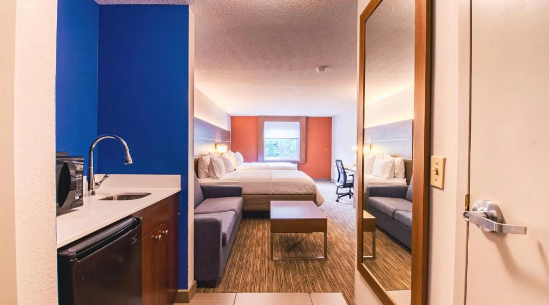 Offering an indoor pool and a restaurant, Holiday Inn Express & Suites Lincoln is located in Lincoln. Free WiFi access is available. Each room here will provide you with air conditioning. Complete with a microwave, the dining area also has a refrigerator. Featuring a shower, private bathrooms come with a bath or shower. Extras include a desk and ironing facilities. At Holiday Inn Express & Suites Lincoln you will find a ticket service and luggage storage. An array of activities can be enjoyed on site or in the surroundings, including skiing, fishing and hiking. The property offers free parking. The hotel is 5.7 mi from Loon Mountain and 7.3 mi from Franconia Notch State Park. White Mountains Visitor Center is 1312 feet away while Ski New Hampshire is 1.3 mi away. The suite offers air conditioning, a tea and coffee maker, as well as a private bathroom featuring a bath or a shower and a hairdryer. This suite provides heating and a flat-screen TV. The unit offers 2 beds.