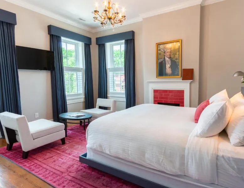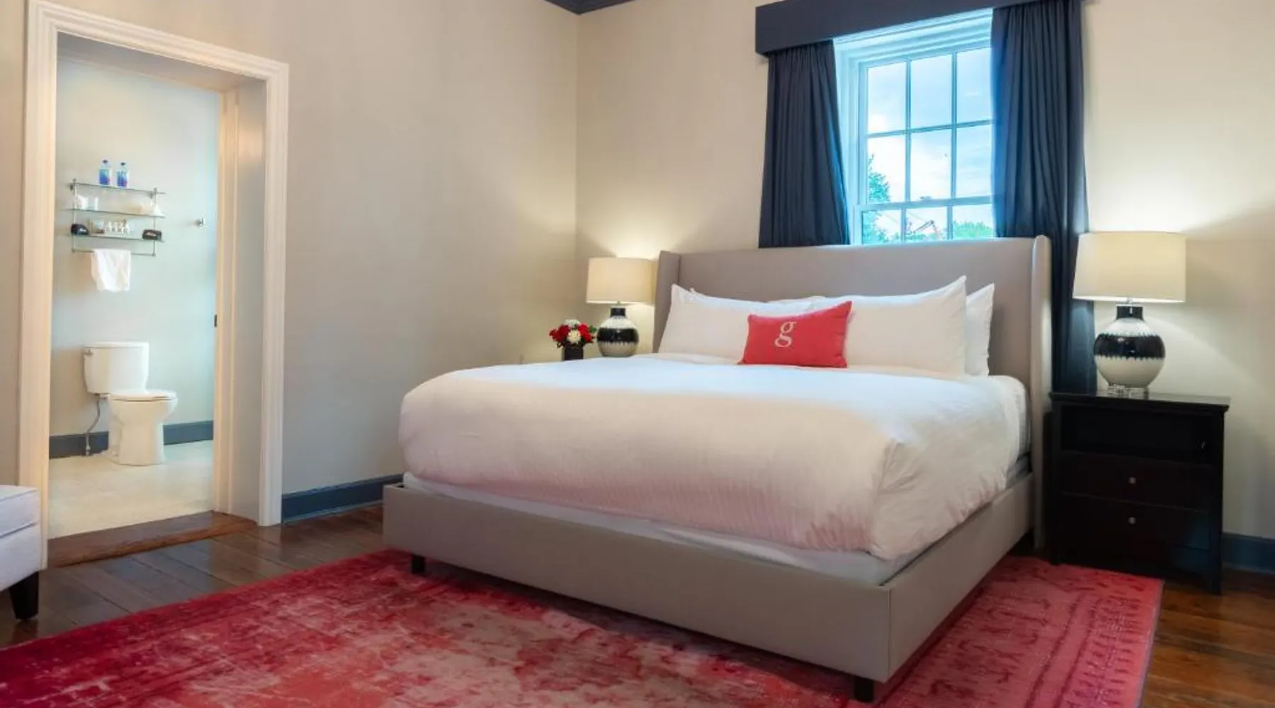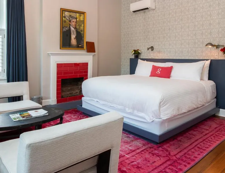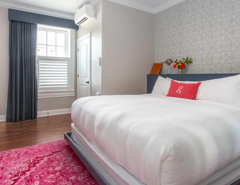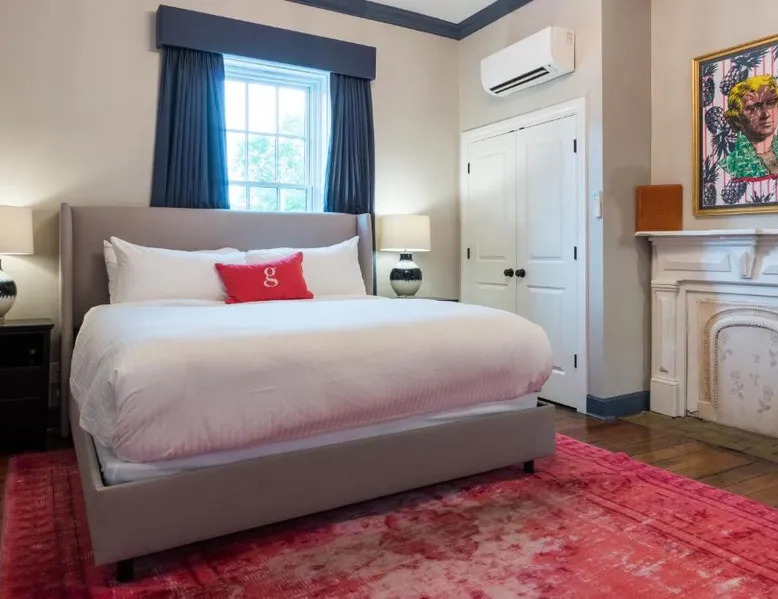 Comfortable Accommodations: The Germantown Inn in Nashville offers air-conditioned rooms with private bathrooms, walk-in showers, and free WiFi. Each room includes a seating area, TV, and parquet floors. Outdoor Spaces: Guests can relax on the sun terrace or in the garden, enjoying the outdoor fireplace and picnic area. The property also features a lounge and outdoor seating area. Convenient Services: The inn provides private check-in and check-out, a 24-hour front desk, concierge service, and free on-site parking. Additional amenities include a business area, bike hire, and luggage storage. Prime Location: Located 6.8 mi from Nashville International Airport, the inn is near Ryman Auditorium (1.2 mi), Tennessee Performing Arts Center (17-minute walk), and Bridgestone Arena (1.2 mi). Highly rated for its breakfast, attentive staff, and convenient location. Also known as The Madison Room, this guestroom is located upstairs and includes the original floors.