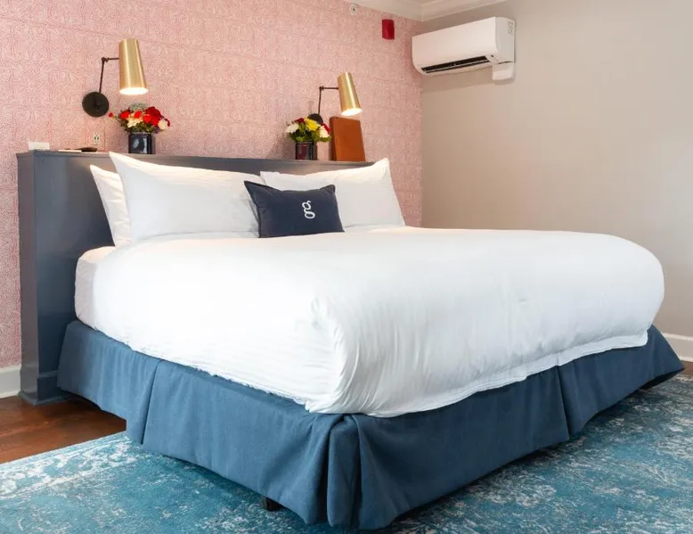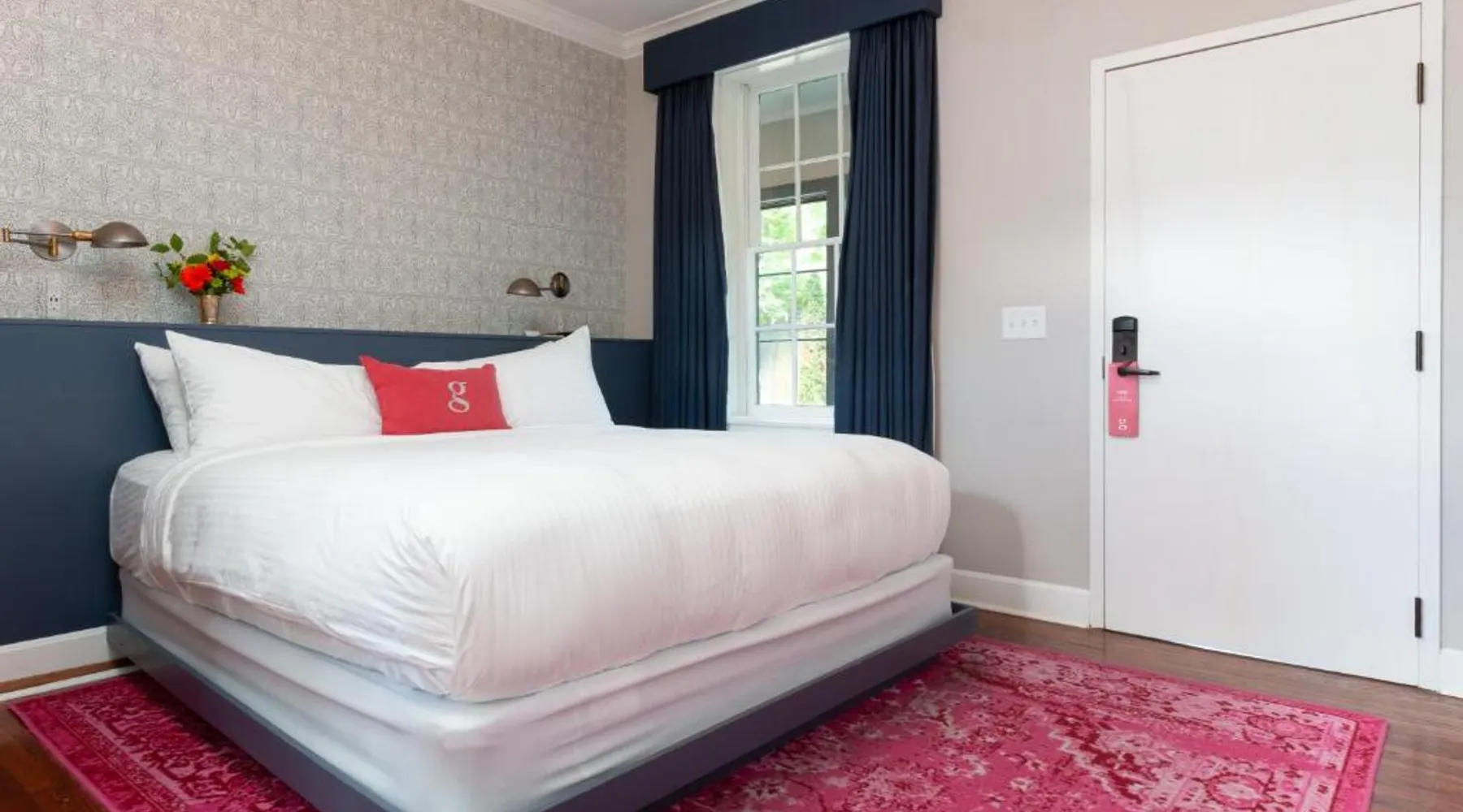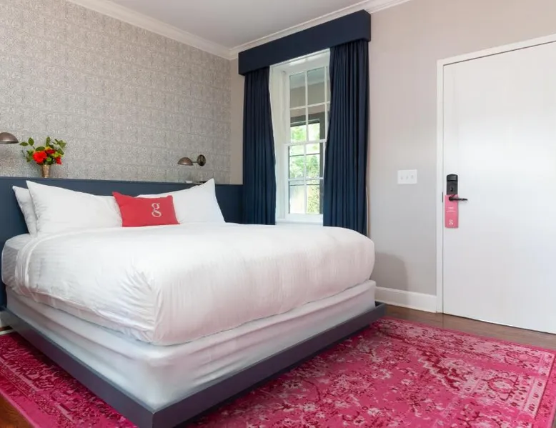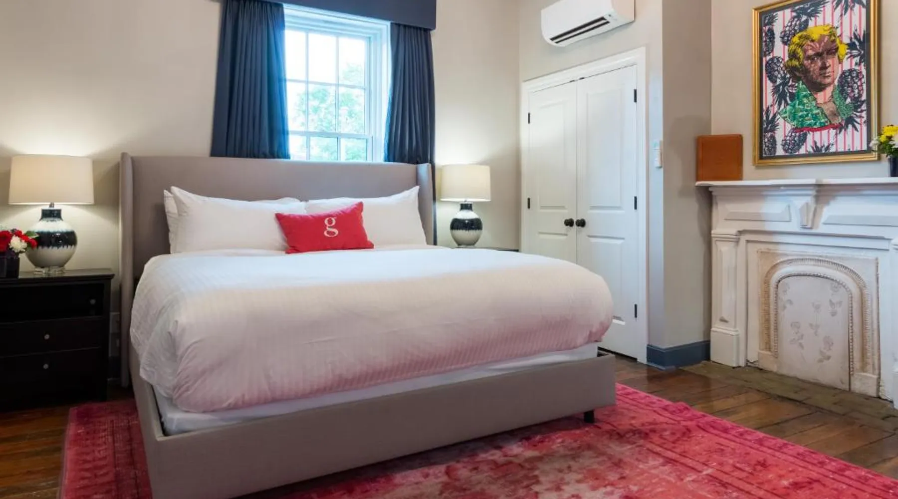 Comfortable Accommodations: The Germantown Inn in Nashville offers air-conditioned rooms with private bathrooms, walk-in showers, and free WiFi. Each room includes a seating area, TV, and parquet floors. Outdoor Spaces: Guests can relax on the sun terrace or in the garden, enjoying the outdoor fireplace and picnic area. The property also features a lounge and outdoor seating area. Convenient Services: The inn provides private check-in and check-out, a 24-hour front desk, concierge service, and free on-site parking. Additional amenities include a business area, bike hire, and luggage storage. Prime Location: Located 6.8 mi from Nashville International Airport, the inn is near Ryman Auditorium (1.2 mi), Tennessee Performing Arts Center (17-minute walk), and Bridgestone Arena (1.2 mi). Highly rated for its breakfast, attentive staff, and convenient location. Also known as The Madison Room, this guestroom is located upstairs and includes the original floors.