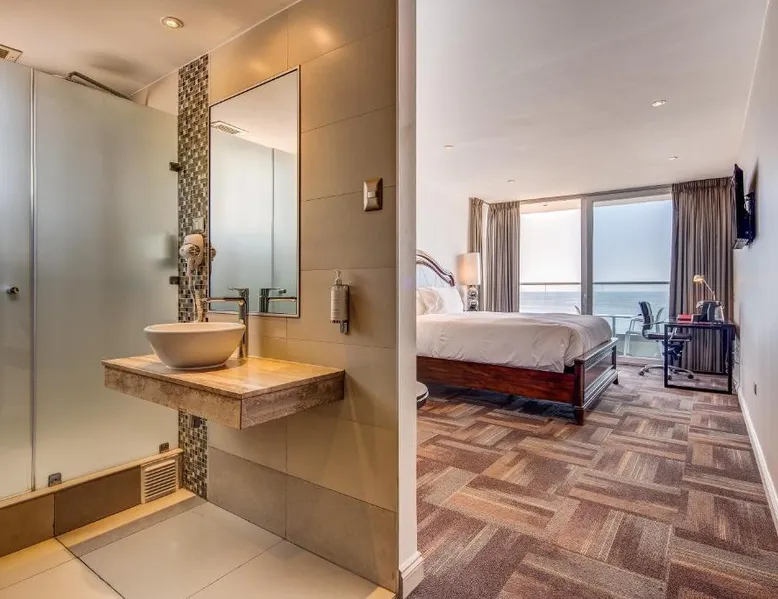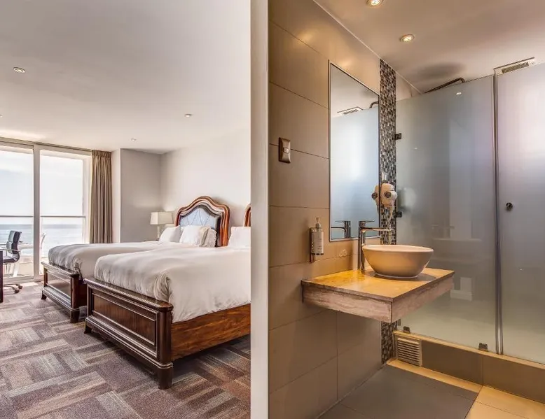 Located in Antofagasta, 0.9 mi from Balneario Municipal, Wyndham Garden Antofagasta Pettra provides accommodations with a restaurant, free private parking and a fitness center. Among the facilities at this property are a 24-hour front desk and room service, along with free WiFi throughout the property. The accommodations features a tour desk and luggage storage space for guests. The hotel will provide guests with air-conditioned rooms offering a desk, a safety deposit box, a flat-screen TV and a private bathroom with a shower. At Wyndham Garden Antofagasta Pettra, every room is equipped with bed linen and towels. A buffet breakfast is available daily at the accommodations. Regional Calvo y Bascuñán Stadium is 1.2 mi from Wyndham Garden Antofagasta Pettra. The nearest airport is Andres Sabella Galvez International Airport, 15 mi from the hotel. The spacious double room features air conditioning, a mini-bar, a terrace with sea views as well as a private bathroom boasting a shower. The unit has 2 beds.