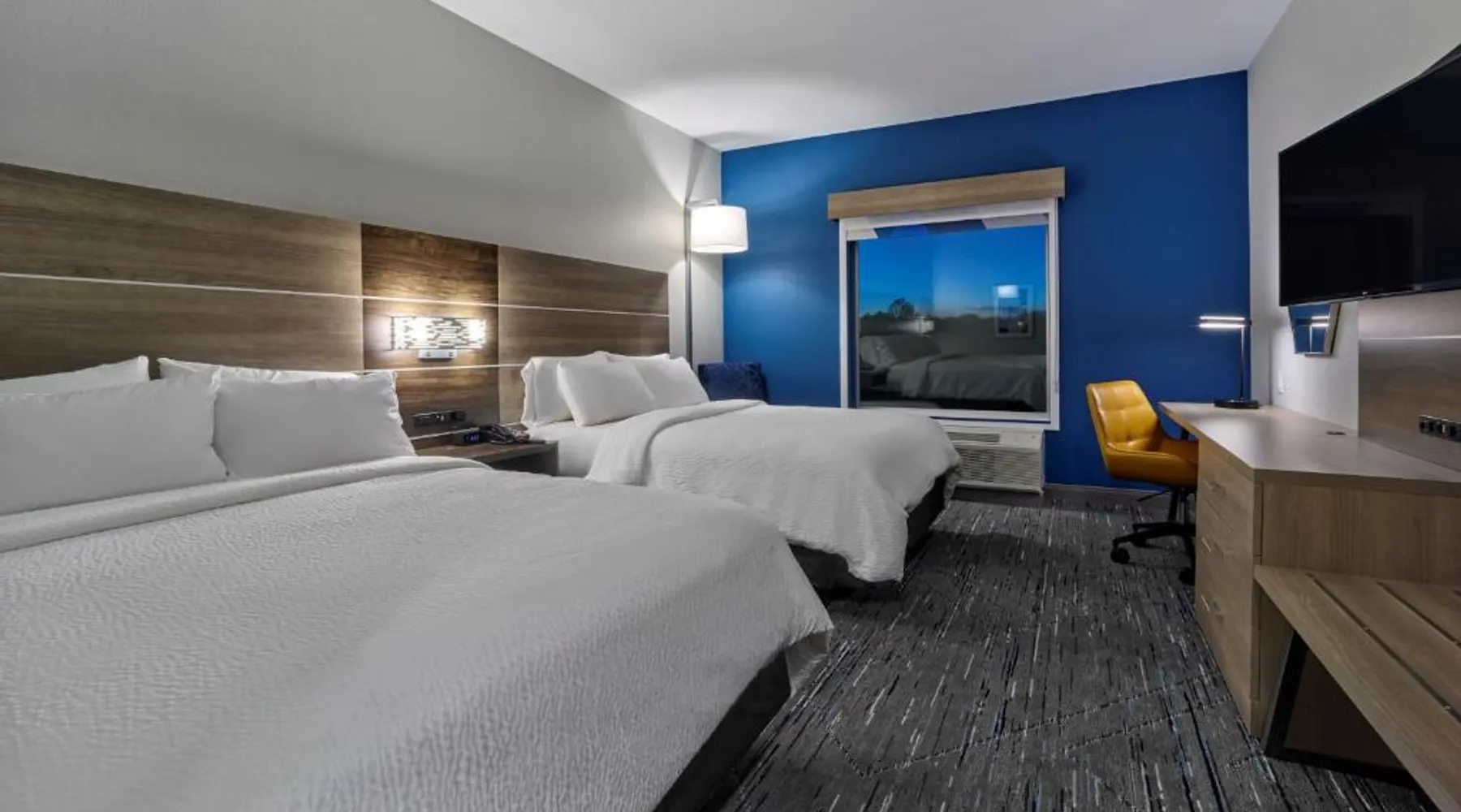 Comfortable Accommodations: Holiday Inn Express - Huntsville Space Center by IHG in Huntsville offers rooms with private bathrooms, tea and coffee makers, hairdryers, refrigerators, microwaves, and TVs. Guests enjoy free WiFi, a saltwater swimming pool, and a fitness center. Convenient Facilities: The hotel features a lounge, elevator, 24-hour front desk, electric vehicle charging station, business area, and express check-in and check-out services. Free on-site private parking is available. Dining Options: A continental buffet breakfast is served daily. Additional amenities include baths and showers. Prime Location: Located 9.3 mi from Huntsville International Airport and 1.2 mi from the University of Alabama in Huntsville. Nearby attractions include Southern Adventures (4.3 mi) and Big Spring Park (22 mi). Highly rated for staff, room cleanliness, and breakfast. The spacious double room offers a tea and coffee maker, a safe deposit box, as well as a private bathroom featuring a shower and a hairdryer. This double room provides a TV. The unit offers 1 bed.