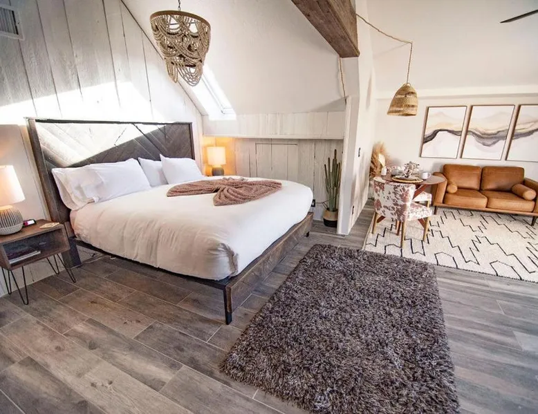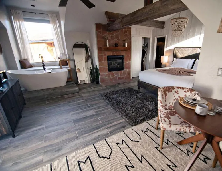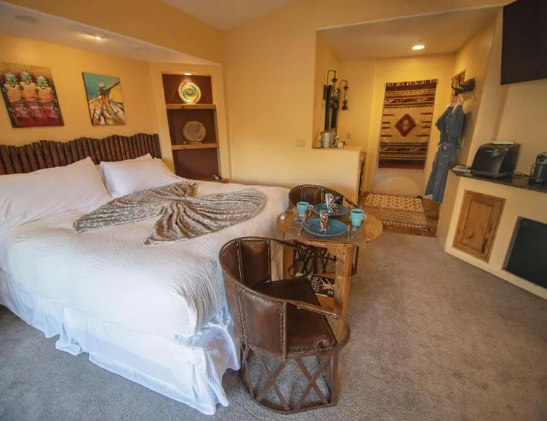 Comfortable Accommodations: The Inn at Thunder Mountain in Sedona offers a garden and free WiFi. Guests enjoy air-conditioning, private bathrooms, and modern amenities. Delicious Breakfast: A variety of breakfast options are available, including continental, American, vegetarian, vegan, and gluten-free. Local specialties, warm dishes, juice, pancakes, cheese, and fruits are served. Relaxing Facilities: The property features a hot tub, terrace, and outdoor seating area. Additional amenities include a business area, concierge service, and housekeeping. Convenient Location: Located 29 mi from Flagstaff Pulliam Airport, the inn is near attractions such as Chapel of the Holy Cross (6.8 mi) and Cliff Castle Casino (27 mi). Free on-site parking is provided. This suite's special feature is the fireplace. Featuring a private entrance, this air-conditioned suite consists of 1 living room, 1 separate bedroom and 1 bathroom with a walk-in shower and a bath. Meals can be prepared in the kitchenette, which is equipped with a refrigerator, kitchenware and a microwave. The spacious suite provides a tea and coffee maker, a seating area, a wardrobe, a flat-screen TV with streaming services, as well as garden views. The unit offers 1 bed.