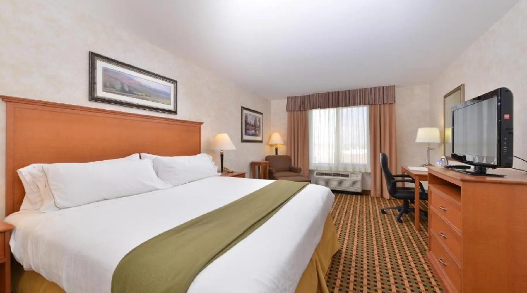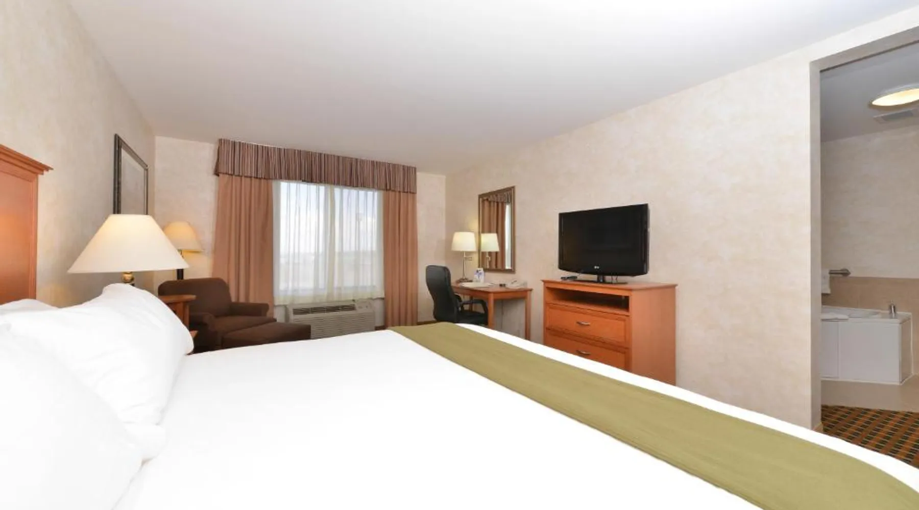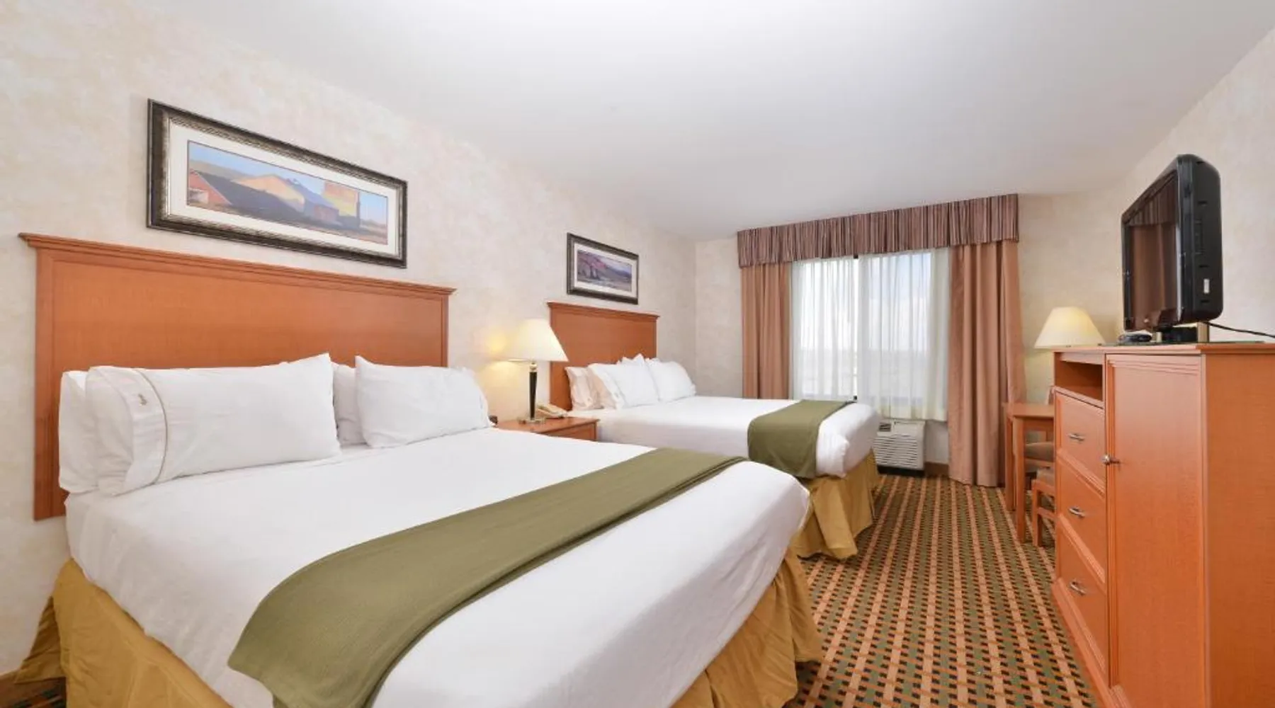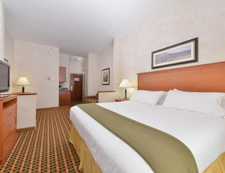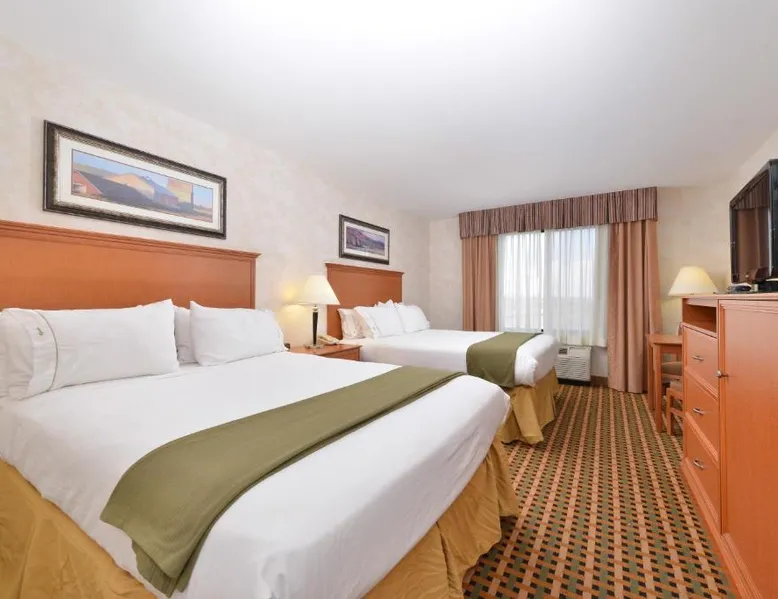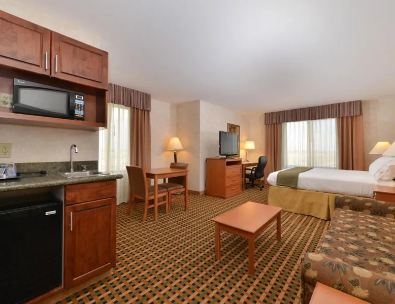 Comfortable Accommodations: Holiday Inn Express Rawlins by IHG in Rawlins offers comfortable rooms with air-conditioning, private bathrooms, and modern amenities. Each room includes a tea and coffee maker, hairdryer, refrigerator, work desk, seating area, free toiletries, microwave, bath or shower, carpeted floors, and a TV. Leisure Facilities: Guests can enjoy an indoor swimming pool, fitness center, hot tub, and spa bath. The hotel provides a elevator, 24-hour front desk, daily housekeeping service, and a business area. Free on-site parking is available. Guest Services: The property offers a highly rated breakfast, room cleanliness, and comfort. Additional services include a 24-hour front desk, daily housekeeping, and a business area. Location and Access: Located 92 mi from Laramie Regional Airport, the hotel is praised for its excellent breakfast, room cleanliness, and comfort. This modern room comes with a cable TV, a microwave, small refrigerator, and a tea/coffee maker. Ironing facilities, a seating area, and a private bathroom with a bath or shower and free toiletries are also included.