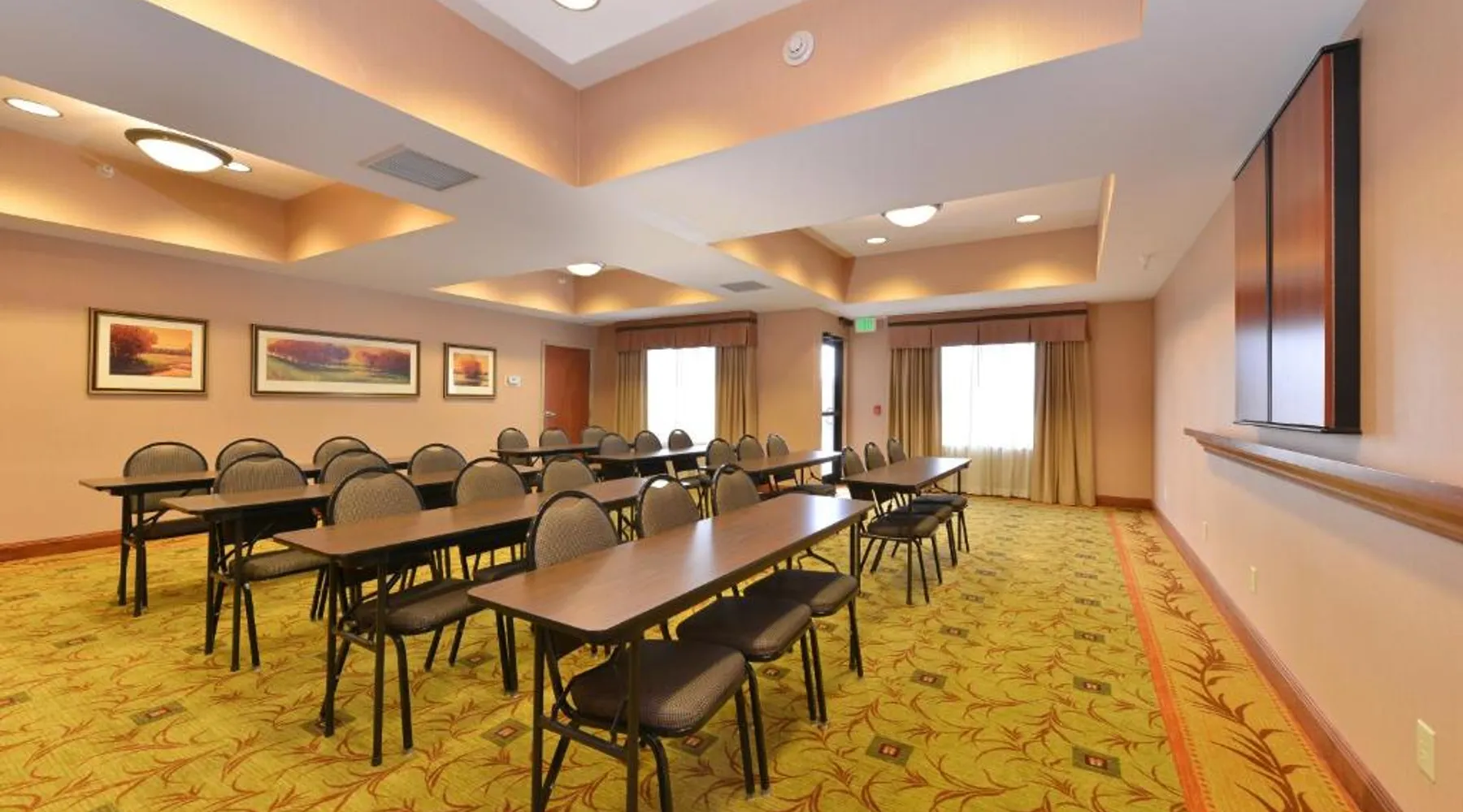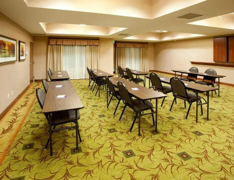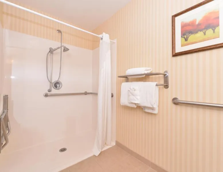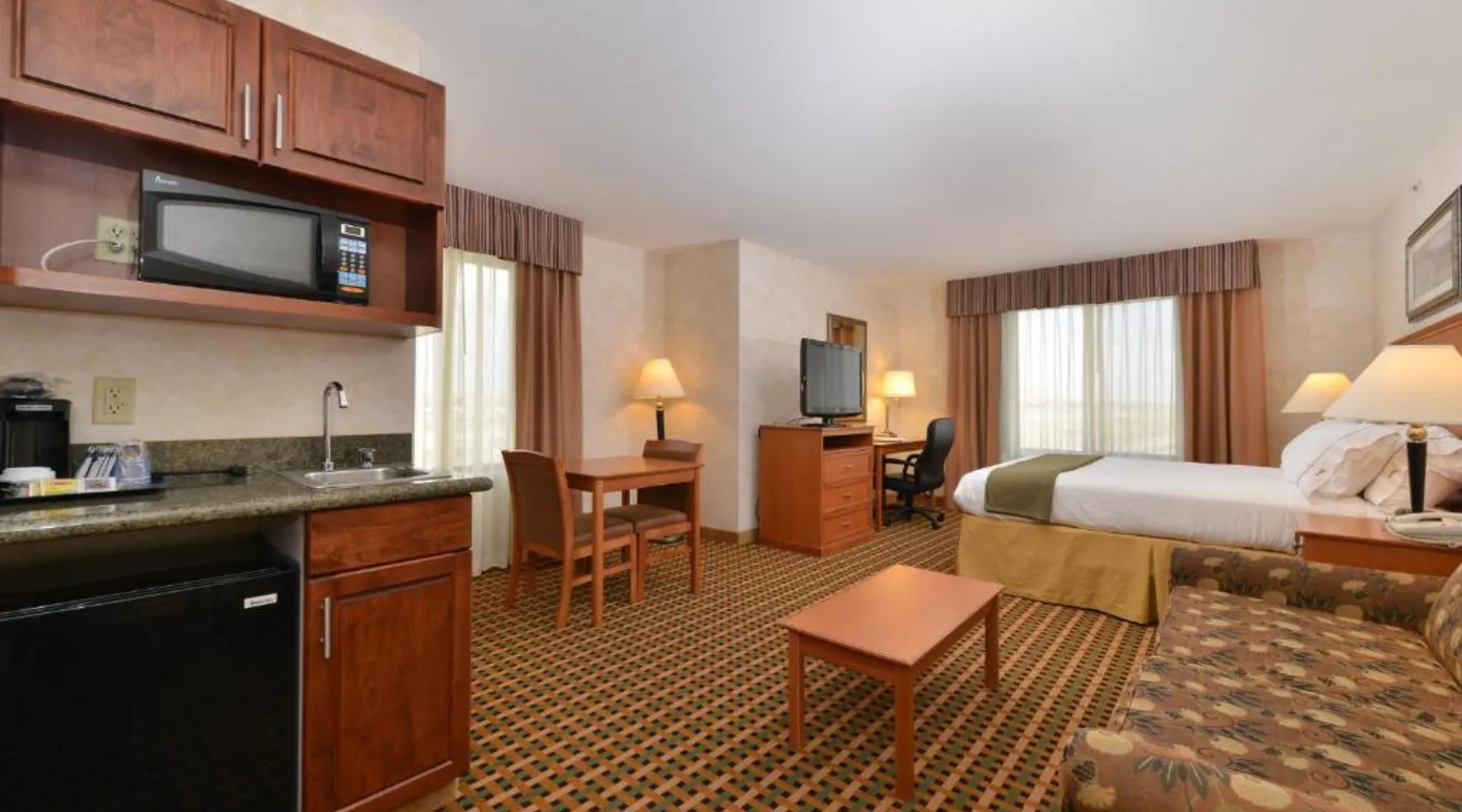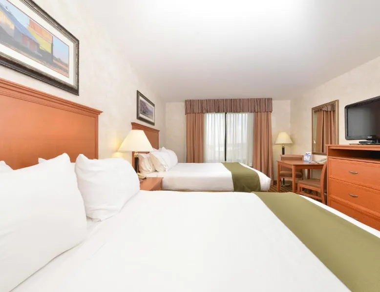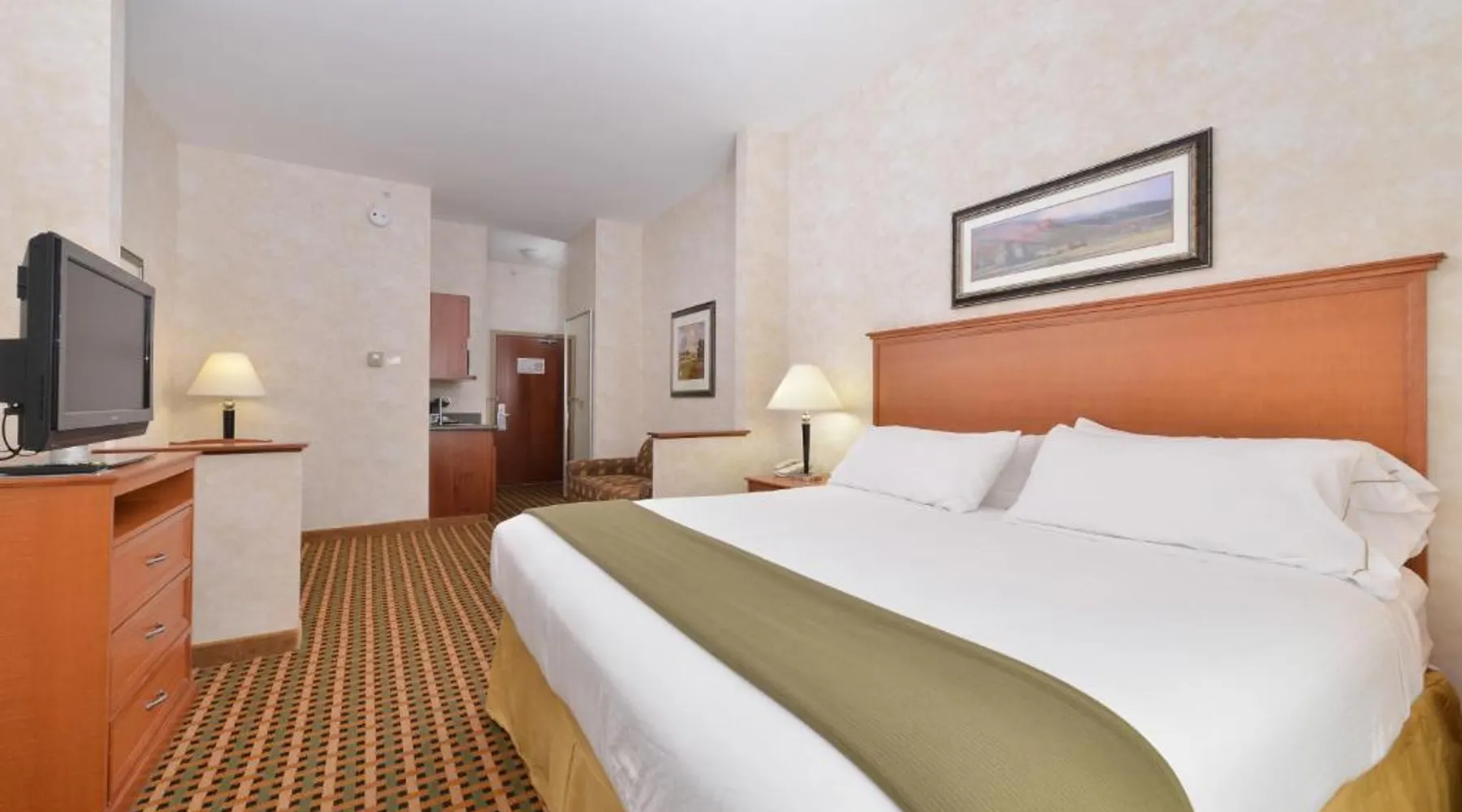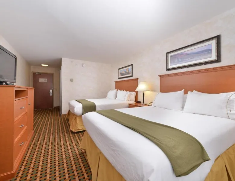 Comfortable Accommodations: Holiday Inn Express Rawlins by IHG in Rawlins offers comfortable rooms with air-conditioning, private bathrooms, and modern amenities. Each room includes a tea and coffee maker, hairdryer, refrigerator, work desk, seating area, free toiletries, microwave, bath or shower, carpeted floors, and a TV. Leisure Facilities: Guests can enjoy an indoor swimming pool, fitness center, hot tub, and spa bath. The hotel provides a elevator, 24-hour front desk, daily housekeeping service, and a business area. Free on-site parking is available. Guest Services: The property offers a highly rated breakfast, room cleanliness, and comfort. Additional services include a 24-hour front desk, daily housekeeping, and a business area. Location and Access: Located 92 mi from Laramie Regional Airport, the hotel is praised for its excellent breakfast, room cleanliness, and comfort. This modern room comes with a cable TV, a microwave, small refrigerator, and a tea/coffee maker. Ironing facilities, a seating area, and a private bathroom with a bath or shower and free toiletries are also included.