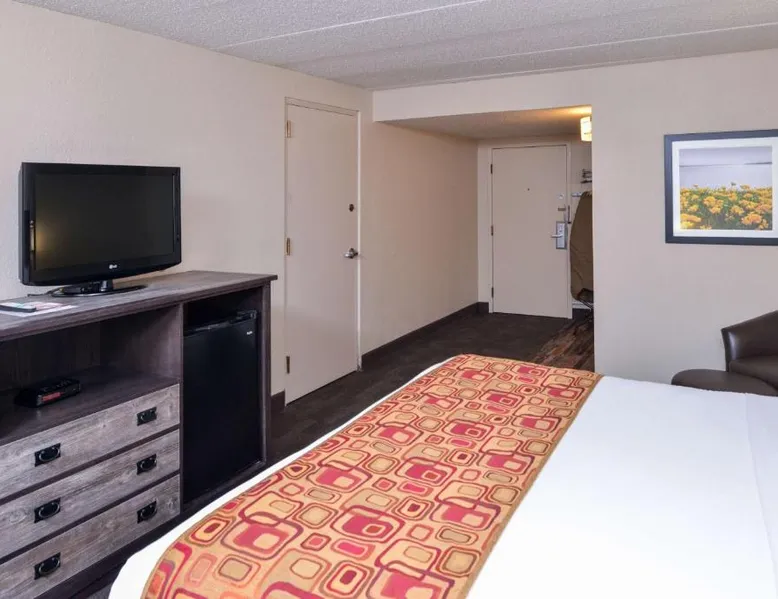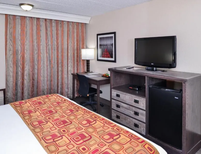 Comfortable Accommodations: Best Western Kelly Inn - Yankton in Yankton offers family rooms with air-conditioning, private bathrooms, and modern amenities. Each room includes a work desk, free WiFi, and a seating area. Exceptional Facilities: Guests can enjoy an indoor swimming pool, fitness center, hot tub, and free on-site parking. Additional services include a 24-hour front desk, housekeeping, and room service. Dining Experience: The family-friendly restaurant serves American cuisine in a modern ambiance. Breakfast options include continental and American styles. Convenient Location: Located 75 mi from Sioux Gateway Airport, the hotel is pet-friendly and welcomes guests with pets. A flat-screen cable TV is included in this room, along with a coffee machine and hairdryer.