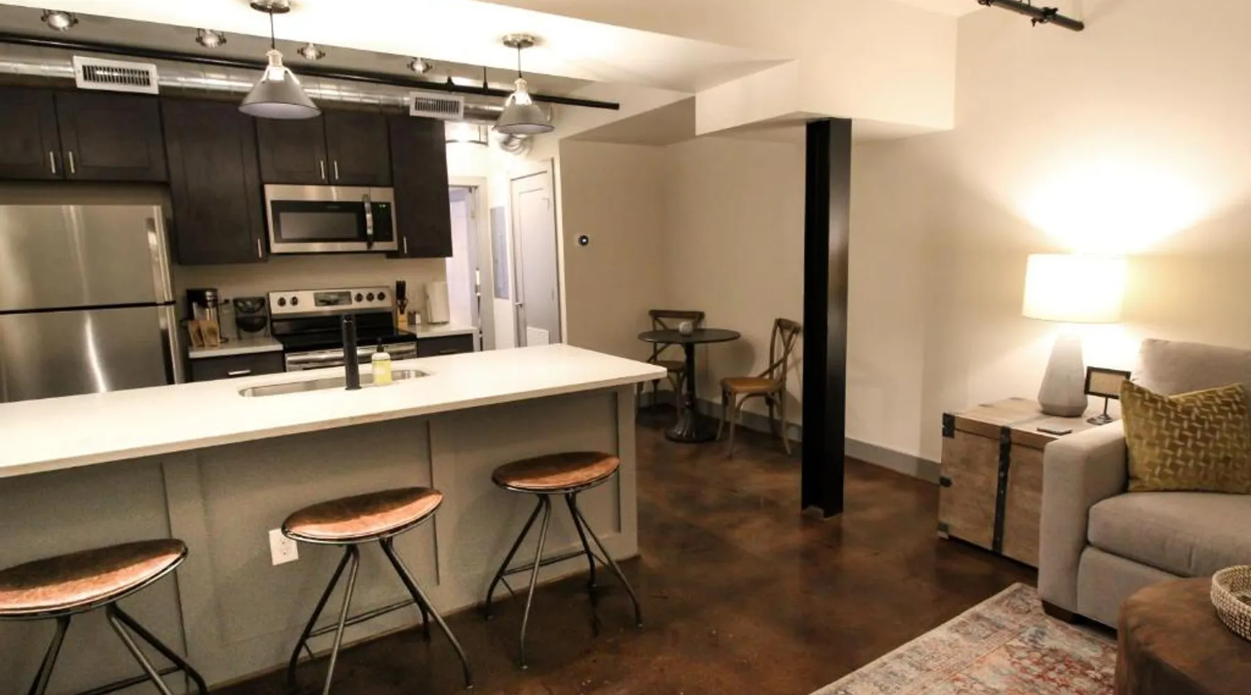 Comfortable Accommodations: The Lofts at Downtown Salem in Salem offers family rooms with air-conditioning, private bathrooms, and kitchenettes. Each unit includes a washing machine, work desk, and free WiFi. Modern Amenities: Guests enjoy streaming services, a dishwasher, microwave, and kitchenware. Additional features include a sofa bed, parquet floors, and a dining area. Convenient Location: Located 8.1 mi from Roanoke Airport, the aparthotel is near attractions such as Civic Center (7.5 mi) and Mill Mountain Zoo (9.9 mi). Free parking is available. Guest Satisfaction: Highly rated for its convenient location, kitchen, and options for food and drinks nearby. Featuring a private entrance, this air-conditioned suite is consisted of of 1 living room, 1 separate bedroom and 1 bathroom with a bath and a shower. The well-equipped kitchen features a stovetop, a refrigerator, a dishwasher and kitchenware. The suite offers a washing machine, a tea and coffee maker, a dining area, a wardrobe and a flat-screen TV with streaming services. The unit offers 1 bed.