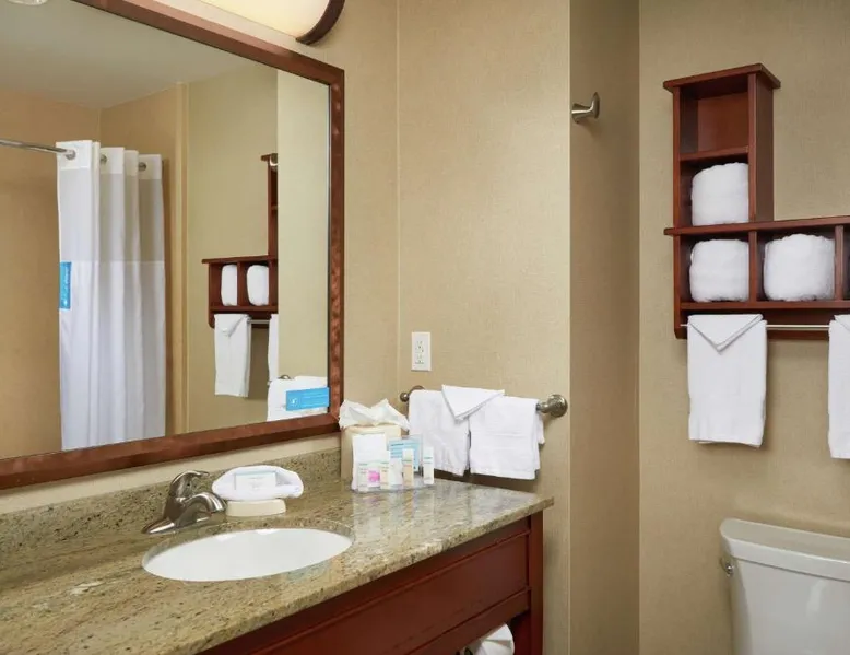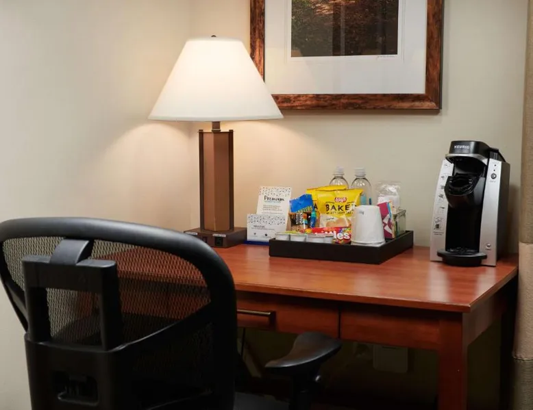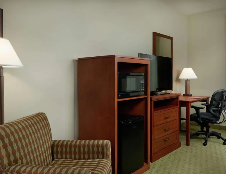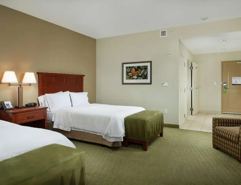 Comfortable Accommodations: Hampton Inn and Suites Salem in Salem offers family rooms with air-conditioning, free WiFi, and amenities such as a tea and coffee maker, refrigerator, and TV. Each room includes a kitchenette, sofa bed, and seating area. Leisure Facilities: Guests can enjoy a saltwater swimming pool, indoor pool, and fitness center. Additional facilities include a hot tub, outdoor seating area, and a 24-hour front desk. Free on-site parking is available. Convenient Location: Located 55 mi from Portland International Airport, the hotel is near attractions like Enchanted Forest Theme Park (7.5 mi) and Linfield College (29 mi). Highly rated for its breakfast, attentive staff, and room cleanliness. The quadruple room's kitchenette, which features a refrigerator and a microwave, is available for cooking and storing food. This quadruple room is air-conditioned and has a TV, a tea and coffee maker, a seating area and heating. The unit has 2 beds.