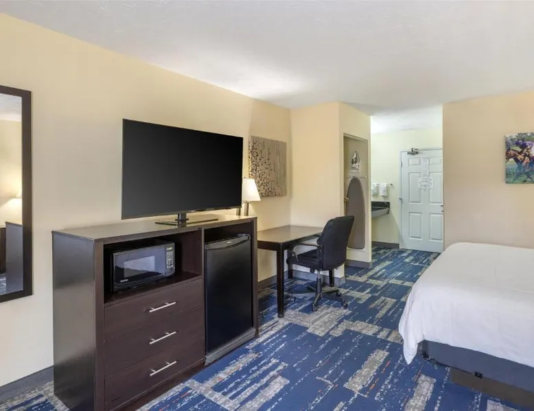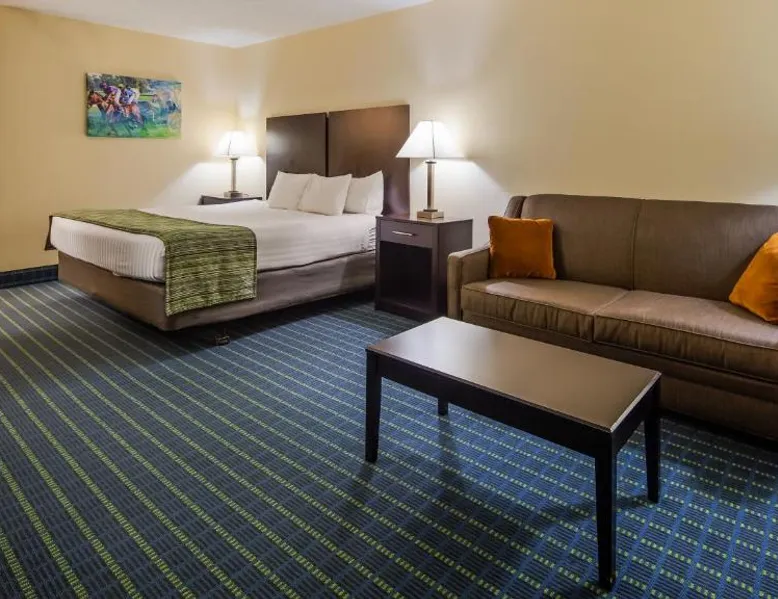 Located in Kentucky’s scenic Blue Grass Region, Best Western Parkside Inn is only five miles from historic downtown Frankfort. The hotel has both an indoor and an outdoor pool. Rooms at the Parkside Inn Best Western have cable TV and free Wi-Fi. The Best Western Parkside Inn serves breakfast every morning. After breakfast, exercise in the fitness center or get some work done in the business center. The hotel also has meeting/ banquet rooms available for large groups or special events. Best Western Parkside Inn is conveniently located right off I-64. The Kentucky State Capitol, as well as the Kentucky Military Museum and the Kentucky History Center, is five miles away. Pioneer Daniel Boone’s grave is a 10 minute drive from the hotel. Featuring free toiletries, this quadruple room includes a private bathroom with a bath, a shower and a hairdryer. This quadruple room is air-conditioned and has a flat-screen TV with streaming services, a tea and coffee maker, a sofa and a carpeted floor. The unit has 2 beds.