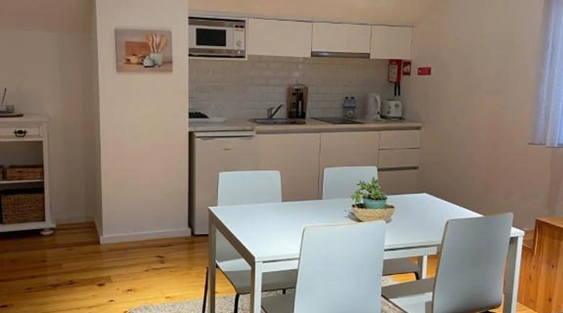 Historic Setting: Botica Guest house in Espinho offers a unique stay within a historic building. Guests enjoy a sun terrace and a beautiful garden, complemented by free WiFi throughout the property. Comfortable Accommodations: The guest house features family rooms with private bathrooms, air-conditioning, and soundproofing. Each room includes a kitchenette, dining area, and modern amenities such as a TV and refrigerator. Convenient Location: Located 20 mi from Francisco Sá Carneiro Airport, Botica Guest house is a short walk from Baia Beach. Nearby attractions include Europarque (8.1 mi) and Douro River (14 mi). Guests appreciate the convenient location and nearby shops. Guests can make meals in the kitchenette that has a stovetop, a refrigerator, kitchenware and a microwave. This air-conditioned studio is consisted of of a flat-screen TV with cable channels, a private bathroom as well as a balcony with city views. The unit has 1 bed.