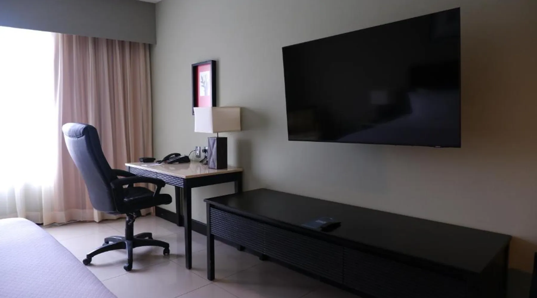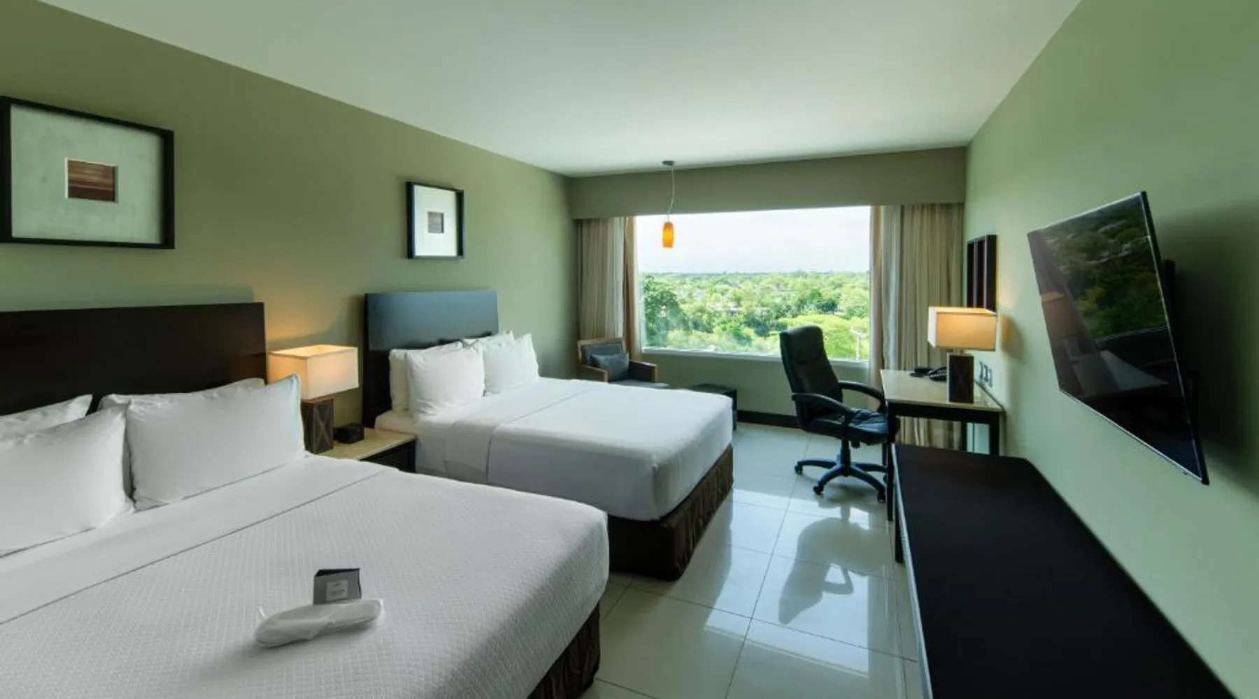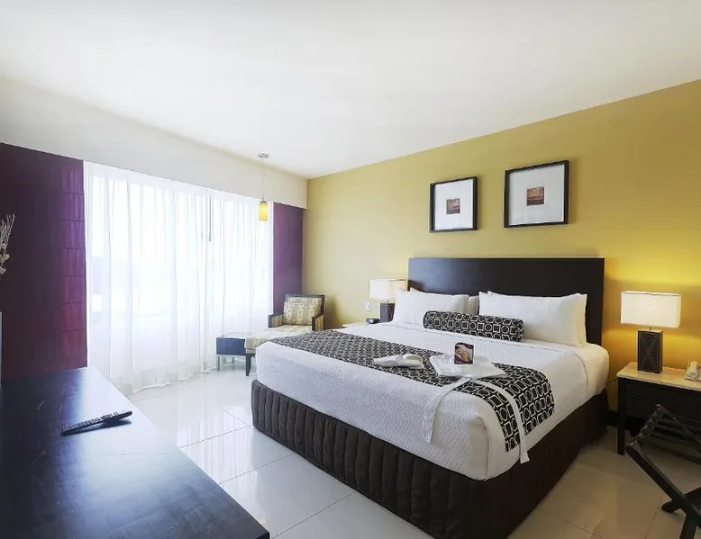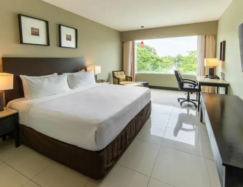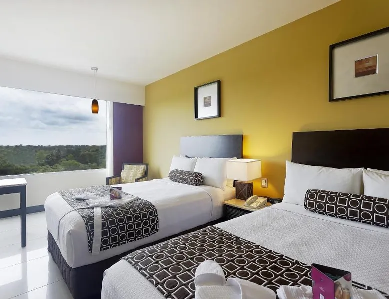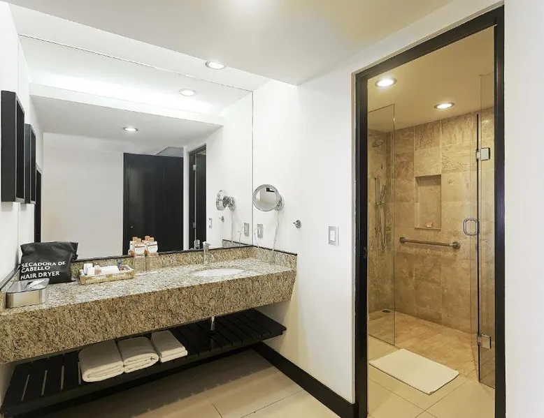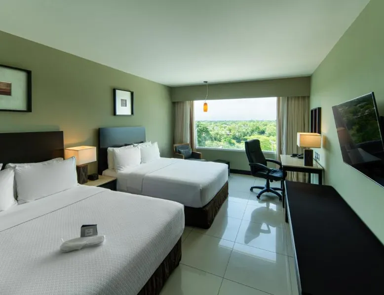 Comfortable Accommodations: Crowne Plaza Villahermosa by IHG in Villahermosa offers comfortable rooms with air-conditioning, private bathrooms, and modern amenities. Guests enjoy free WiFi, city or river views, and soundproofing for a relaxing stay. Exceptional Facilities: The hotel features a fitness center, sun terrace, year-round outdoor swimming pool, and a restaurant. Additional facilities include a bar, coffee shop, and live music, ensuring entertainment and relaxation for all visitors. Dining Experience: A variety of dining options are available, including a family-friendly restaurant serving American and Mexican cuisine. Breakfast options include continental, American, and buffet, with local specialties, warm dishes, cheese, and fruits. Prime Location: Located 11 mi from Carlos Rovirosa Pérez Airport and 1.9 mi from Parque Museo La Venta, the hotel provides easy access to key attractions. Guests appreciate the convenient location and excellent service. This spacious, air-conditioned room has contemporary décor and features free Wi-Fi and a flat-screen TV with cable channels. A mini-bar and coffee maker are provided, while the bathroom includes toiletries and a hairdryer.