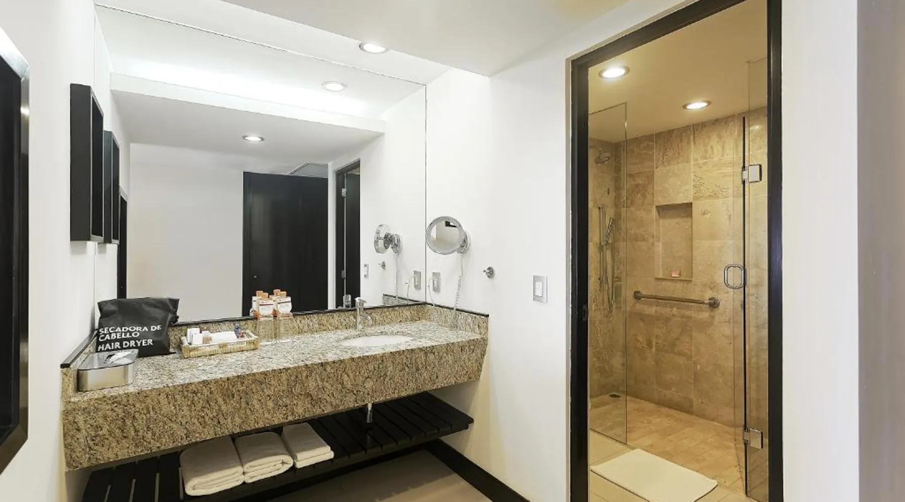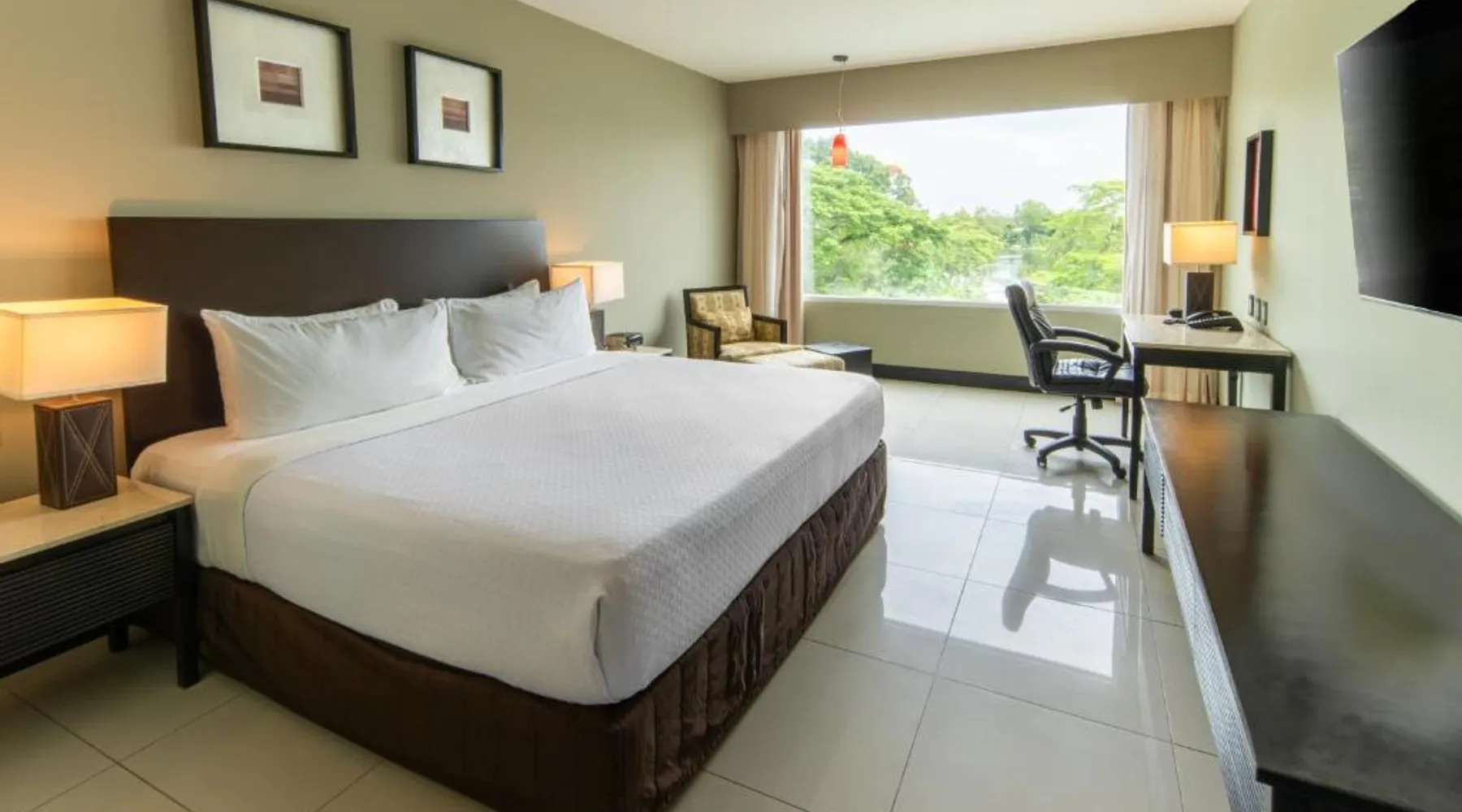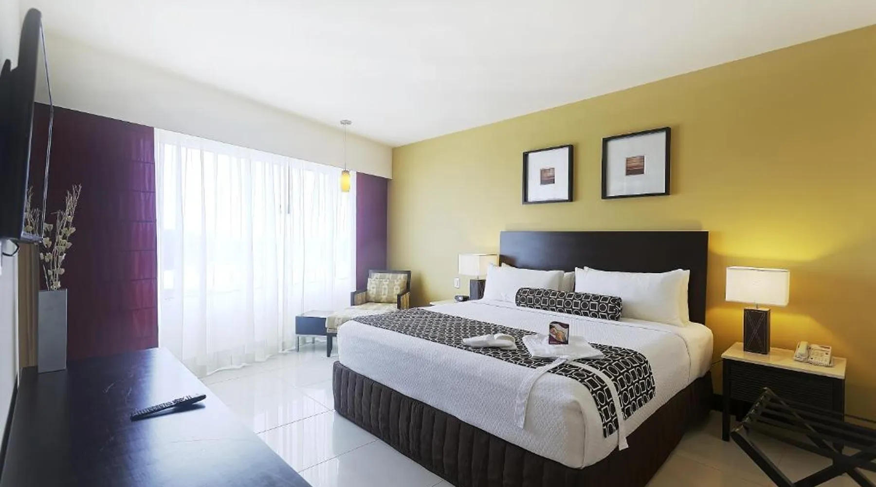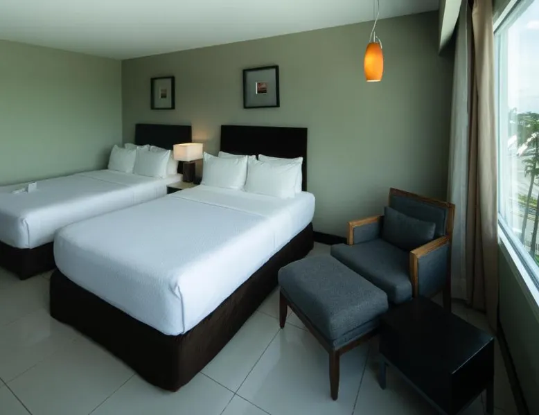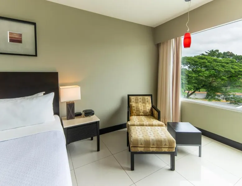 Comfortable Accommodations: Crowne Plaza Villahermosa by IHG in Villahermosa offers comfortable rooms with air-conditioning, private bathrooms, and modern amenities. Guests enjoy free WiFi, city or river views, and soundproofing for a relaxing stay. Exceptional Facilities: The hotel features a fitness center, sun terrace, year-round outdoor swimming pool, and a restaurant. Additional facilities include a bar, coffee shop, and live music, ensuring entertainment and relaxation for all visitors. Dining Experience: A variety of dining options are available, including a family-friendly restaurant serving American and Mexican cuisine. Breakfast options include continental, American, and buffet, with local specialties, warm dishes, cheese, and fruits. Prime Location: Located 11 mi from Carlos Rovirosa Pérez Airport and 1.9 mi from Parque Museo La Venta, the hotel provides easy access to key attractions. Guests appreciate the convenient location and excellent service. This spacious, air-conditioned room has contemporary décor and features free Wi-Fi and a flat-screen TV with cable channels. A mini-bar and coffee maker are provided, while the bathroom includes toiletries and a hairdryer.