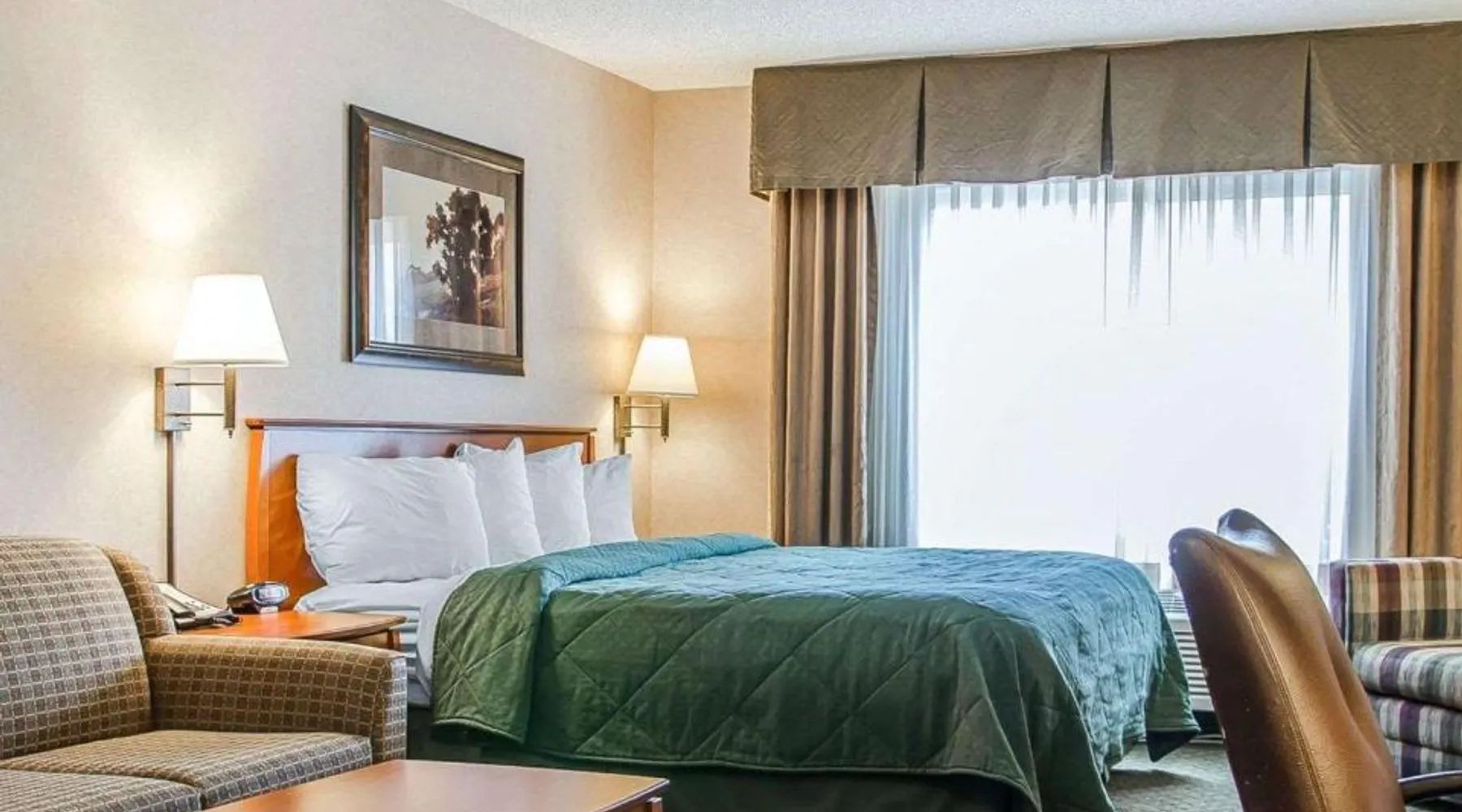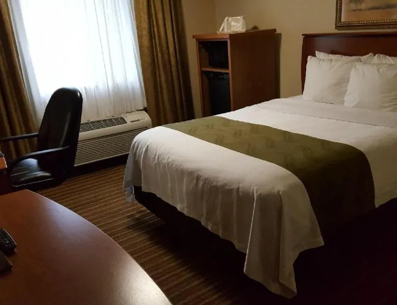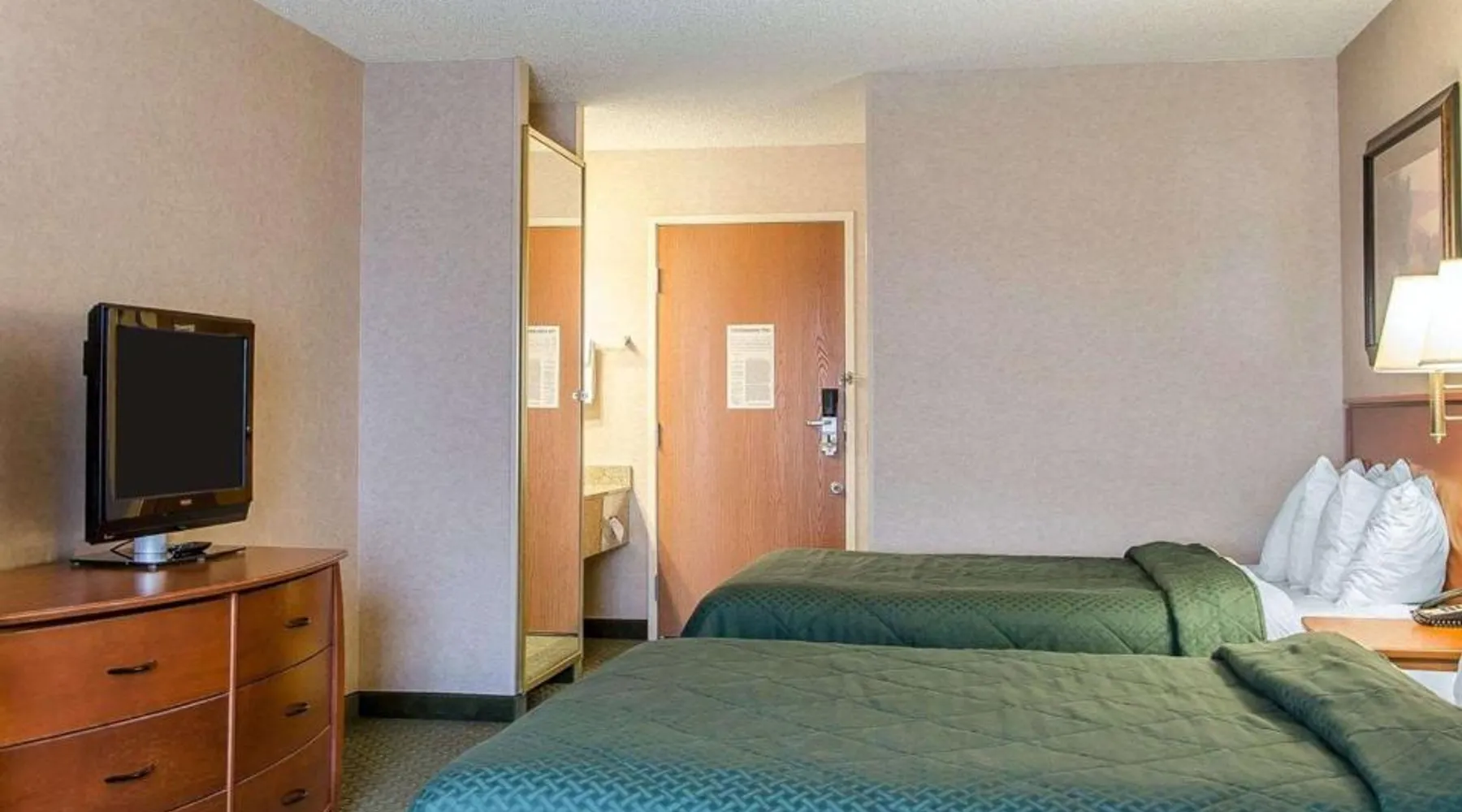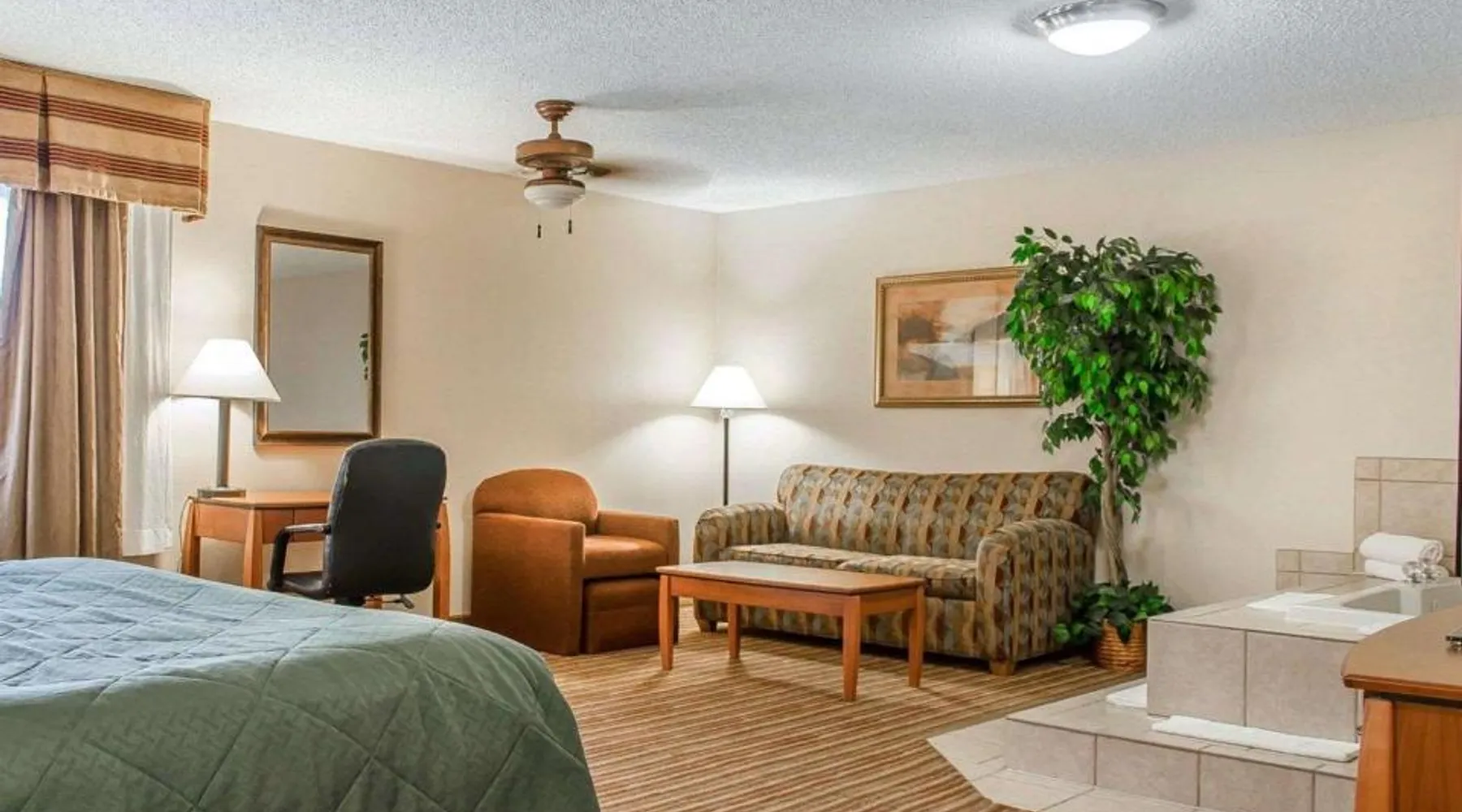 The recently-renovated Quality Inn & Suites Twin Falls North in Twin Falls, ID offers easy access to Snake River Canyon, Canyon Rim walking trails, golf, zip line and Shoshone Falls. This Twin Falls, Idaho hotel is also close to Evil Knievel’s famous jump site, shopping and Centennial Park. Guests of the Quality Inn & Suites Twin Falls North hotel can appreciate comfortable interior halls that provide easy and safe room access. The indoor heated pool and hot tub are great places to relax. Business travelers can appreciate the on-site Business Center, offering access to copy and fax services and a computer with Internet. Other amenities include free hot breakfast, free wireless high-speed Internet access, free daily newspaper and a fitness center. All spacious guest rooms offer a flat-screen television with cable, desk, coffee maker, refrigerator, microwave, hair dryer, alarm clock, iron and ironing board. Some rooms feature a ceiling fan, sofa sleeper and whirlpool. This is a pet-friendly hotel, with four-legged friends allowed to stay for a fee. Offering free toiletries, this twin/double room includes a private bathroom with a bath and a hairdryer. The twin/double room has carpeted floors, a seating area with a flat-screen TV with cable channels, air conditioning, a tea and coffee maker, as well as a wardrobe. The unit has 1 bed.
