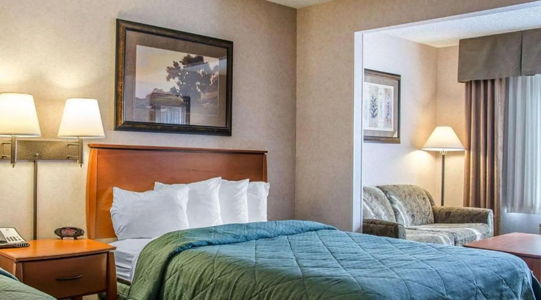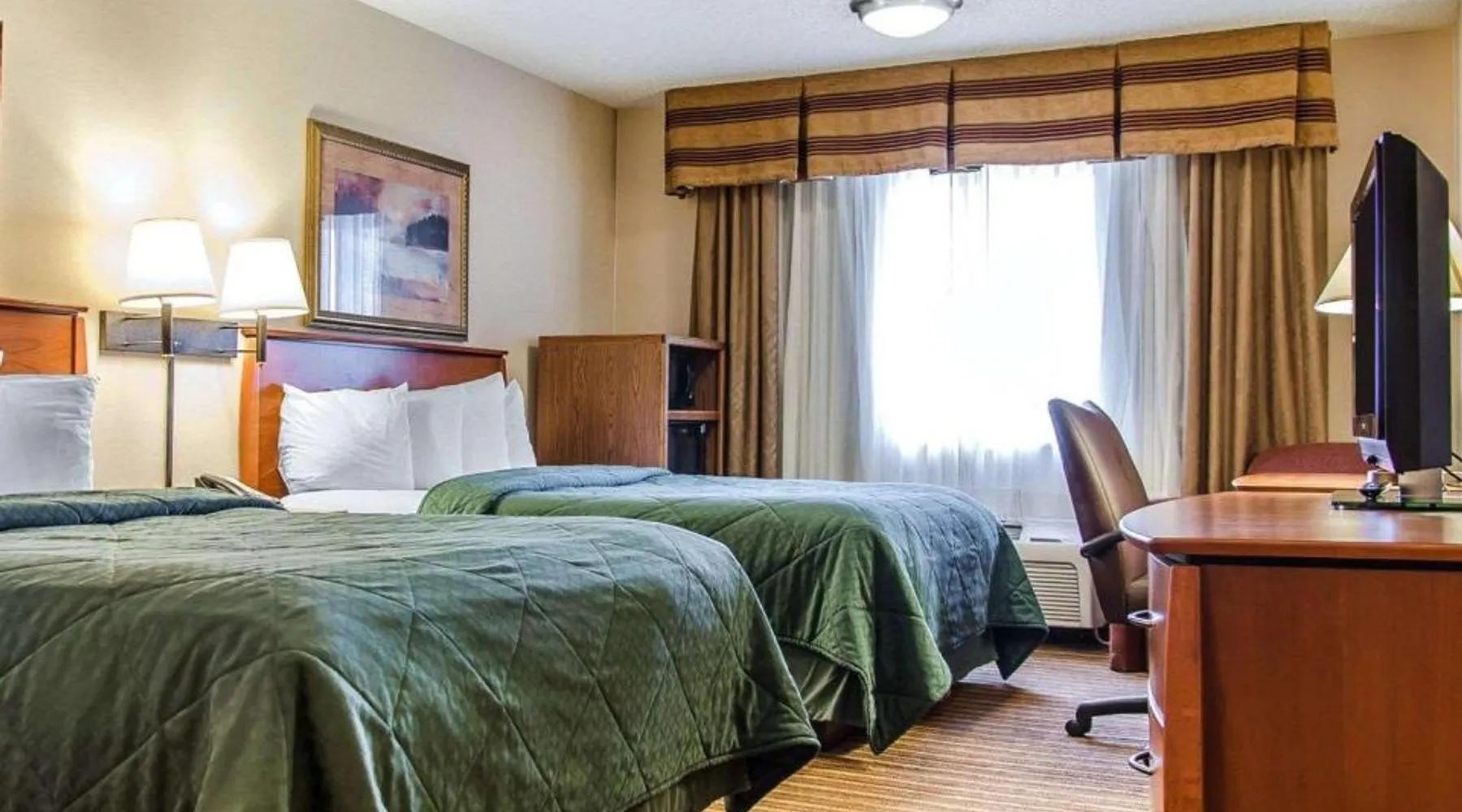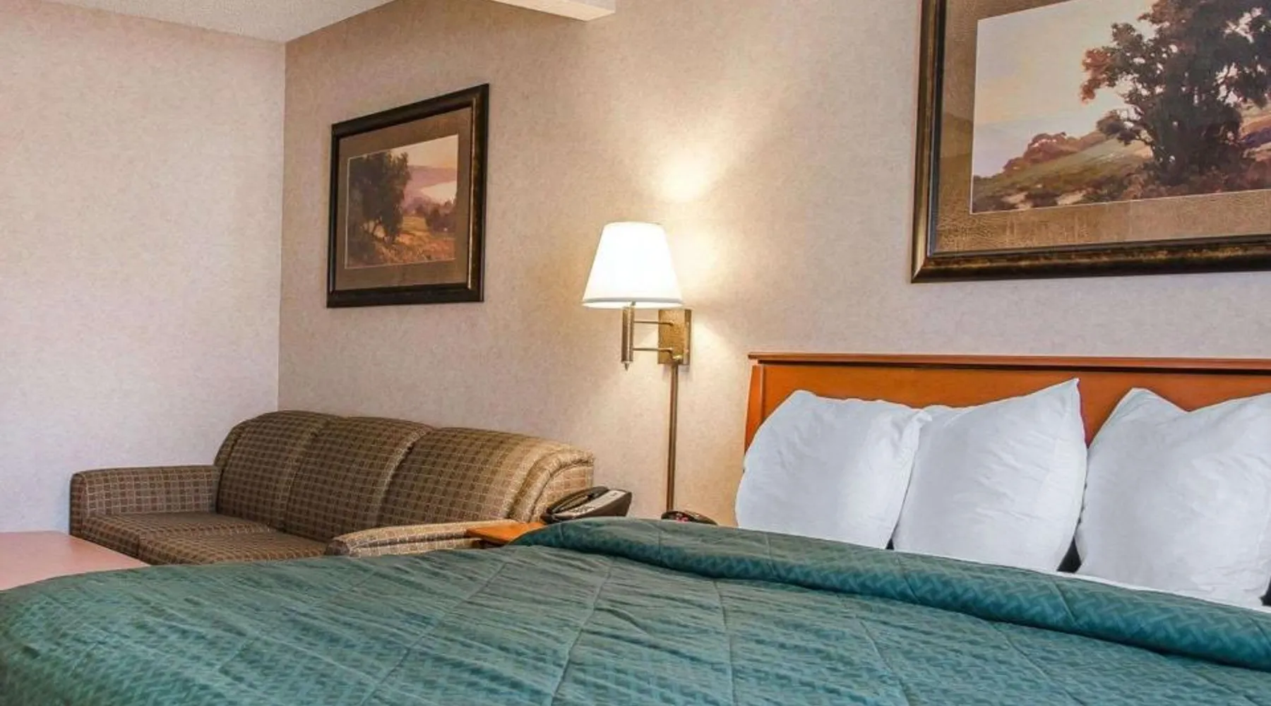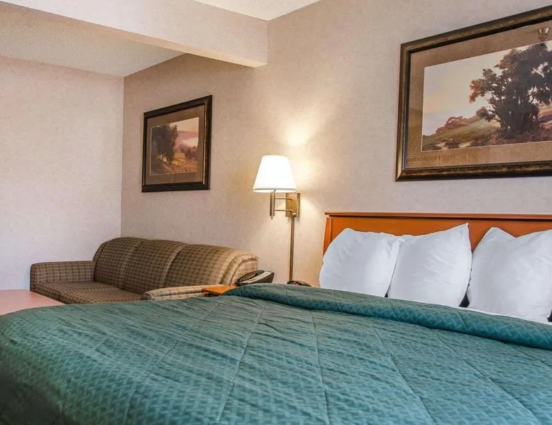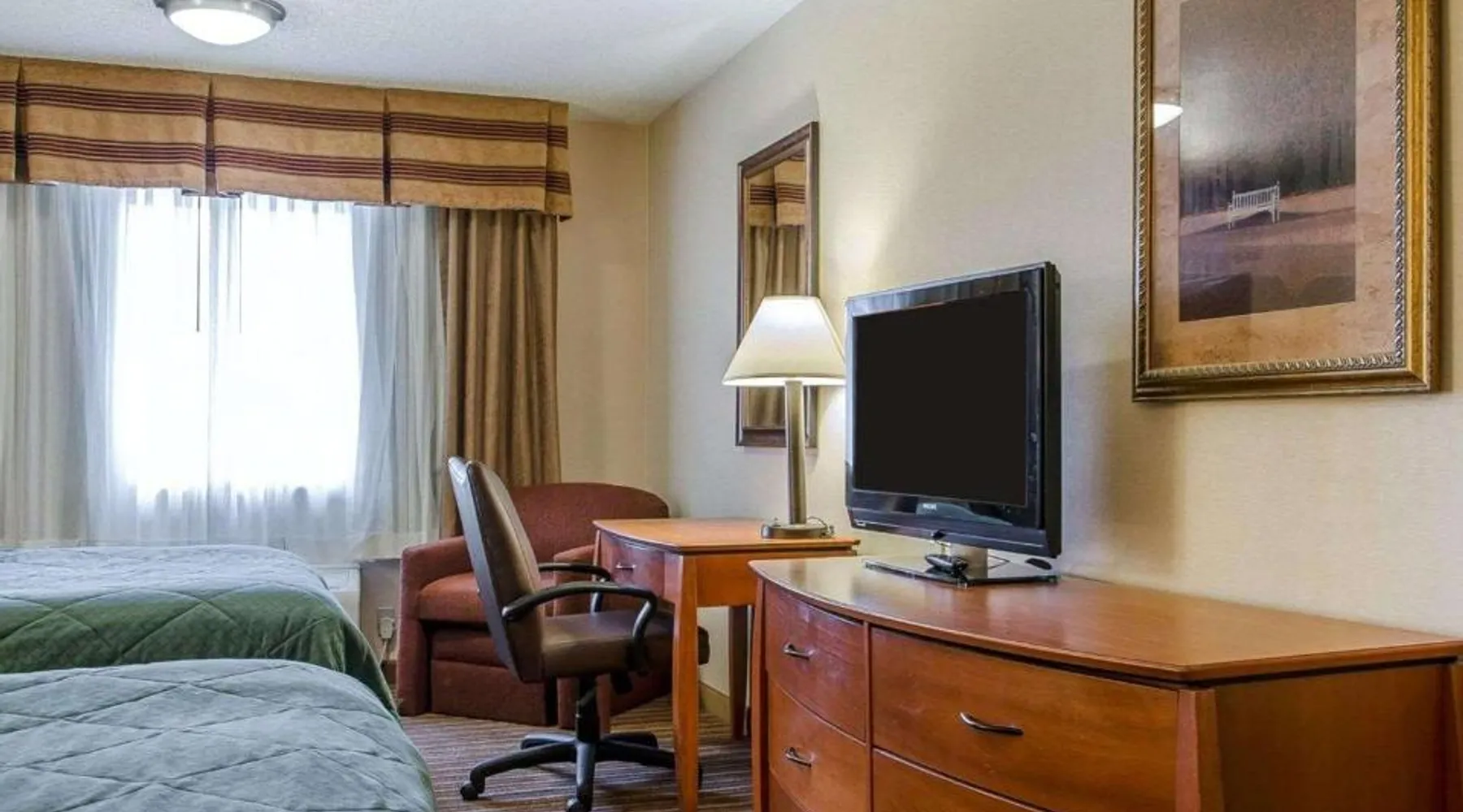 The recently-renovated Quality Inn & Suites Twin Falls North in Twin Falls, ID offers easy access to Snake River Canyon, Canyon Rim walking trails, golf, zip line and Shoshone Falls. This Twin Falls, Idaho hotel is also close to Evil Knievel’s famous jump site, shopping and Centennial Park. Guests of the Quality Inn & Suites Twin Falls North hotel can appreciate comfortable interior halls that provide easy and safe room access. The indoor heated pool and hot tub are great places to relax. Business travelers can appreciate the on-site Business Center, offering access to copy and fax services and a computer with Internet. Other amenities include free hot breakfast, free wireless high-speed Internet access, free daily newspaper and a fitness center. All spacious guest rooms offer a flat-screen television with cable, desk, coffee maker, refrigerator, microwave, hair dryer, alarm clock, iron and ironing board. Some rooms feature a ceiling fan, sofa sleeper and whirlpool. This is a pet-friendly hotel, with four-legged friends allowed to stay for a fee. Offering free toiletries, this twin/double room includes a private bathroom with a bath and a hairdryer. The twin/double room has carpeted floors, a seating area with a flat-screen TV with cable channels, air conditioning, a tea and coffee maker, as well as a wardrobe. The unit has 1 bed.