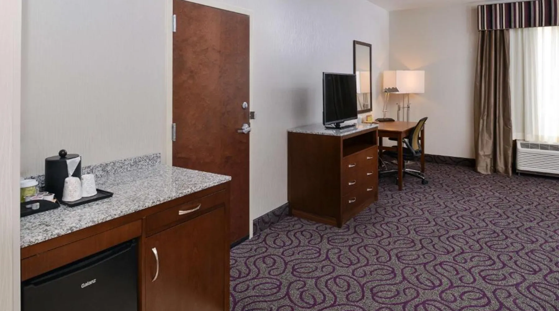 Comfortable Accommodations: Hilton Garden Inn Hobbs in Hobbs offers family rooms with air-conditioning, refrigerators, microwaves, and free WiFi. Each room includes a work desk, TV, and free toiletries. Exceptional Facilities: Guests can enjoy a fitness center, indoor swimming pool, and a restaurant. Additional amenities include a business area, 24-hour front desk, room service, and luggage storage. Convenient Location: Located 6.2 mi from Lea County Regional Airport, the hotel provides free on-site parking. Guests appreciate the convenient location and attentive property staff. The spacious double room offers air conditioning, a tea and coffee maker, heating, as well as a flat-screen TV with cable channels. The unit has 1 bed.