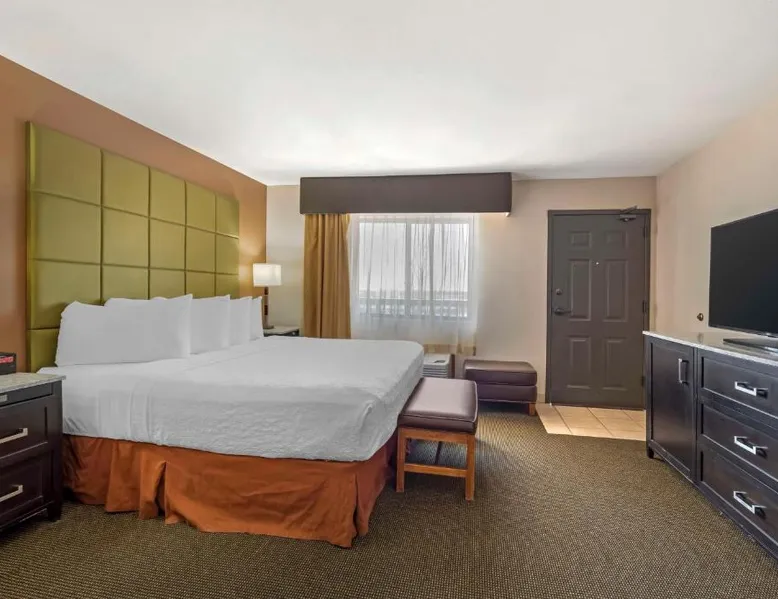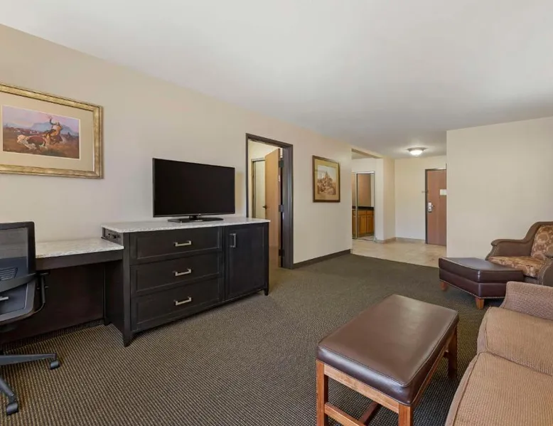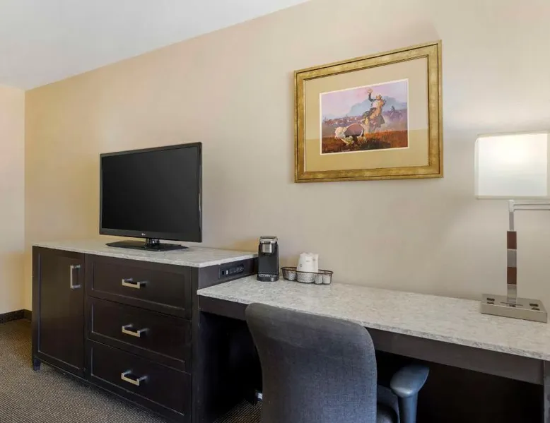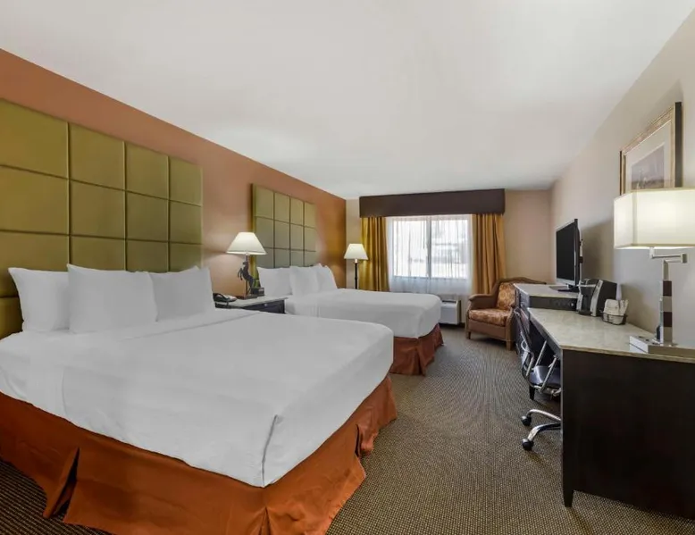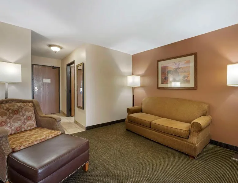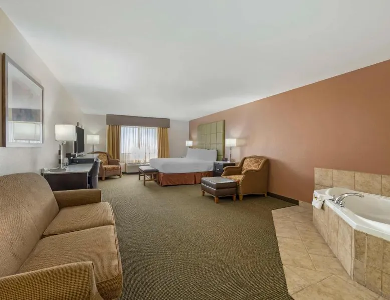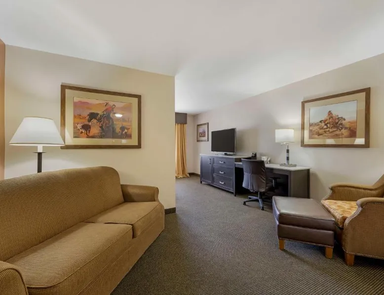 Comfortable Accommodations: Best Western Plus Country Inn & Suites in Dodge City offers family rooms with air-conditioning, private bathrooms, and modern amenities. Each room includes a balcony, work desk, and free WiFi. Exceptional Facilities: Guests can enjoy a fitness center, sun terrace, indoor swimming pool, and bar. Additional amenities include a business area, meeting rooms, and barbecue facilities. Free on-site parking is available. Delicious Breakfast: A buffet breakfast is served daily, highly praised by guests for its quality and variety. Convenient Location: Located 5 mi from Dodge City Regional Airport, the hotel provides easy access to local attractions. Cable TV is included in this room, along with a microwave, fridge, and coffeemaker.