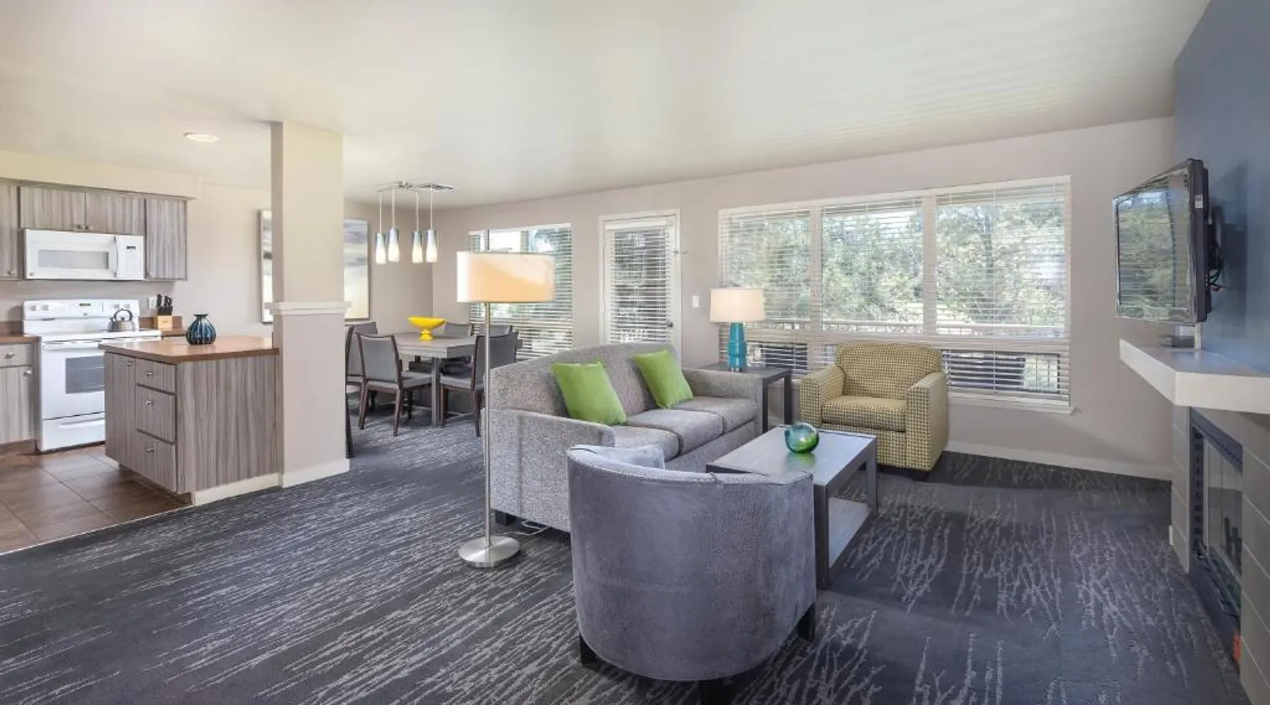 Located in Redmond, Oregon, an indoor pool and outdoor pool are available at this aparthotel. Apartments each feature a fully equipped kitchen. Smith Rock State Park is 30 minutes’ drive away. Laundry facilities are provided in each spacious apartment for guest convenience. A balcony is also included at the WorldMark Eagle Crest. Tennis Courts, a hot tub, and a games room are all available at the Eagle Crest WorldMark. Skiing, golfing, and whitewater rafting are all available nearby. Mt. Bachelor is less than 1 hours’ drive from this aparthotel. Aspen Lakes Golf is 20 minutes’ drive away. A fully equipped kitchen is featured in this apartment. A balcony and laundry facilities are also included.