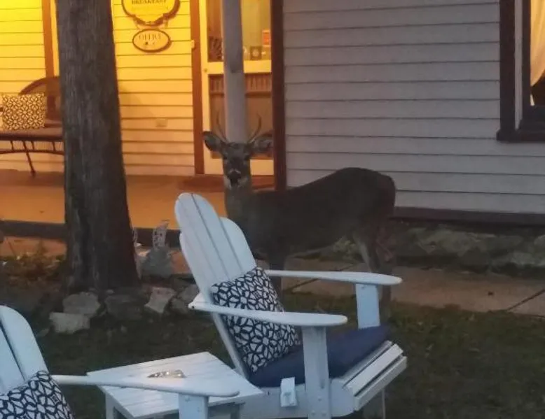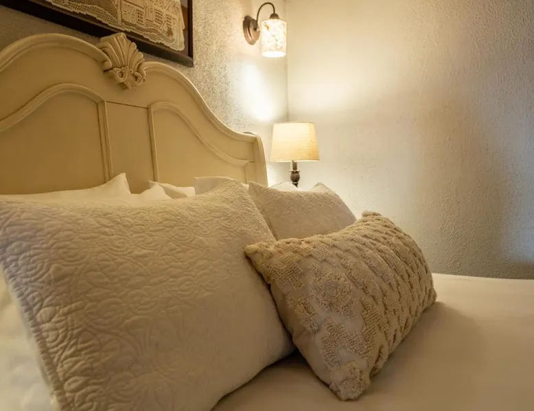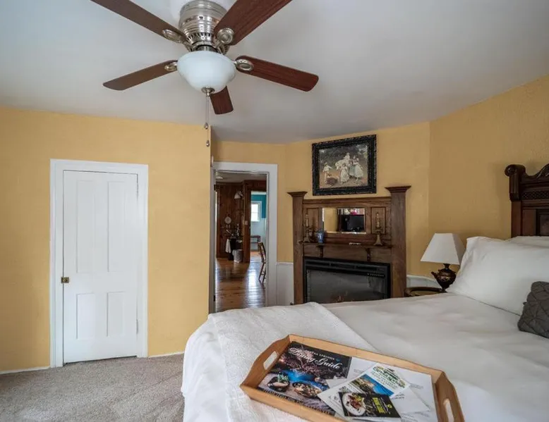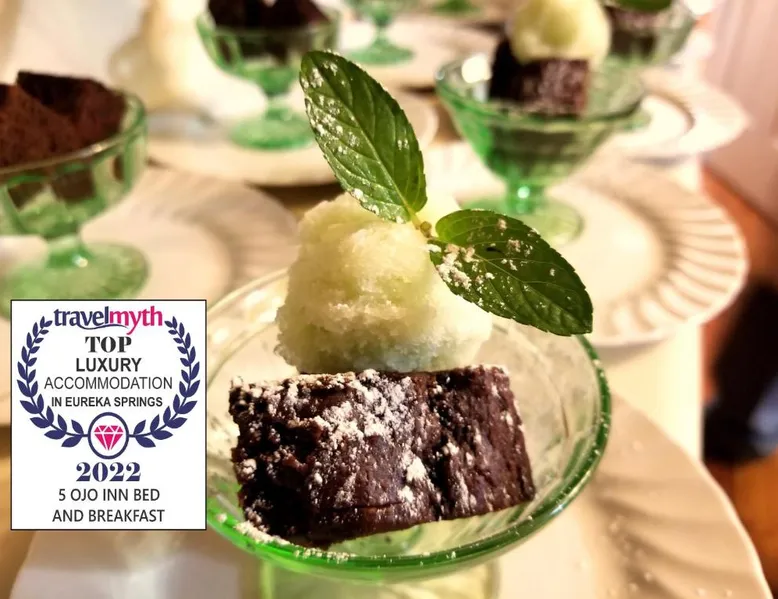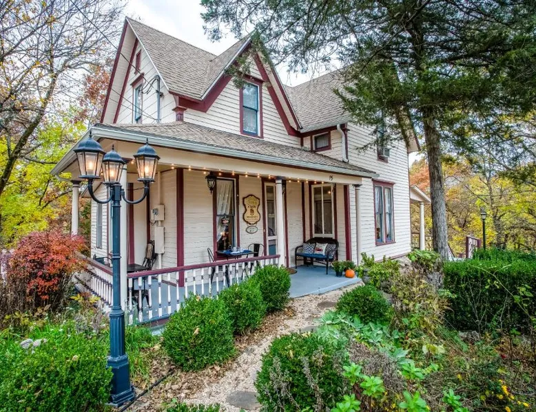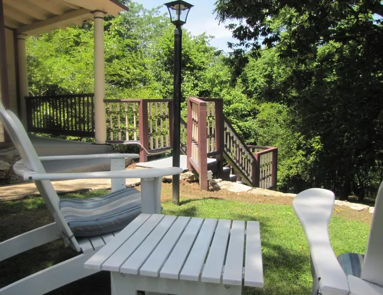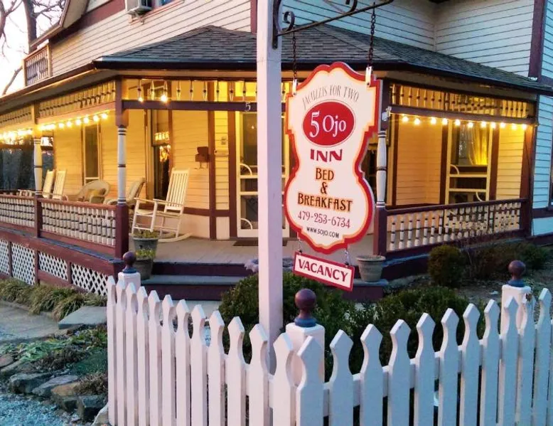 Historic Setting: 5 Ojo Inn Bed and Breakfast in Eureka Springs offers a 4-star experience within a historic building. The property is adults-only and highly rated for its breakfast, attentive staff, and comfortable beds. Exceptional Facilities: Guests enjoy a sun terrace, garden, and free WiFi. Additional amenities include a hot tub, lounge, games room, and outdoor seating area. Free on-site private parking is available. Comfortable Accommodations: Rooms feature air-conditioning, private bathrooms, and garden or mountain views. Amenities include bathrobes, spa baths, and balconies. Local Attractions: Located less than 0.6 mi from Eureka Springs Historic District and near attractions such as The Great Passion Play (2.5 mi) and Christ Of The Ozarks (2.4 mi). Boone County Airport is 40 mi away. This room features a separate windowed room with a sunken spa bath. There is also a separate seating area with hardwood floors, a flat-screen cable TV, wet bar and refrigerator. The bedroom has a queen bed and a corner fireplace. An outdoor covered porch allows for deer watching in the early morning and late afternoon. The private bathroom comes with a shower. *This room requires climbing down approximately 12 steps to get to the room entrance.