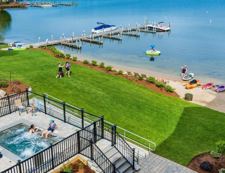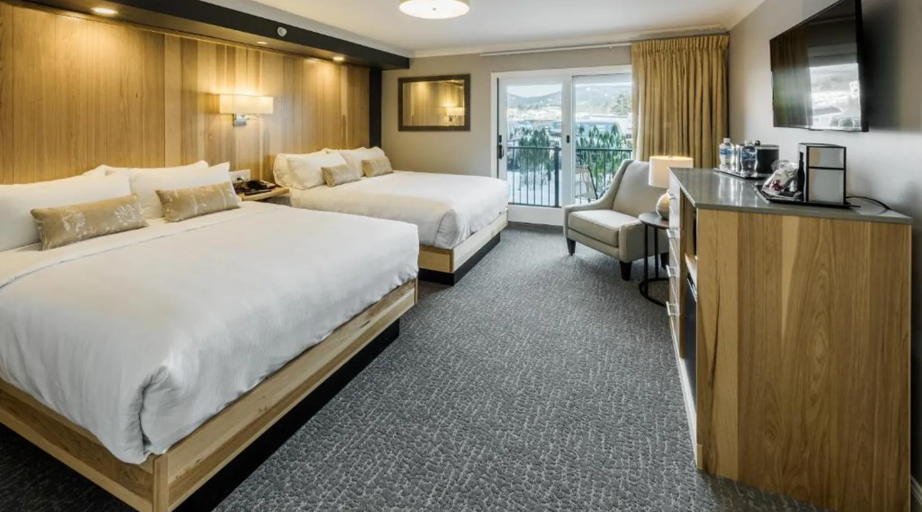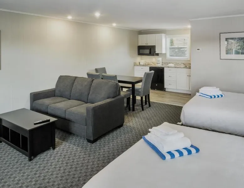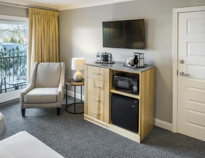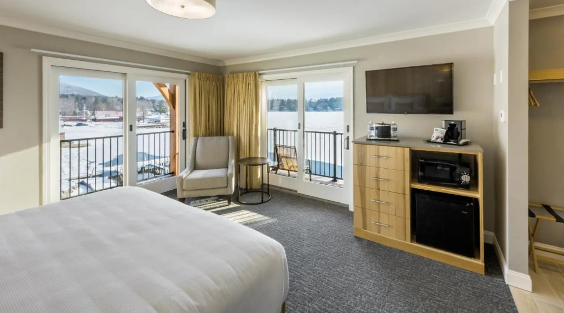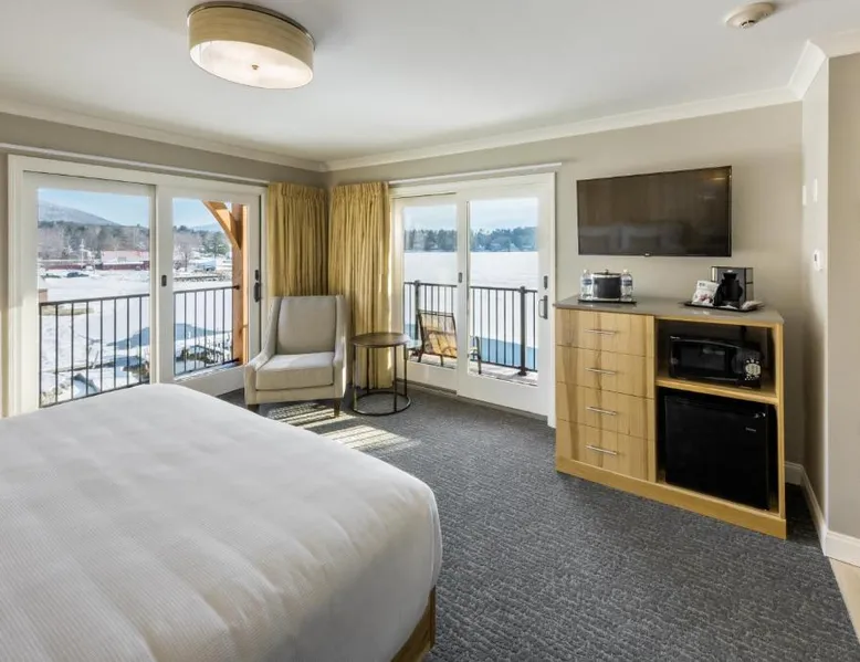 Beachfront Location: Center Harbor Inn in Center Harbor offers a private beach area and direct beachfront access. Guests can relax on the sandy shores or enjoy the scenic views of the surrounding lakes. Comfortable Accommodations: Rooms feature air-conditioning, private bathrooms, and mountain views. Each room includes a tea and coffee maker, refrigerator, and free WiFi, ensuring a comfortable stay. Leisure Facilities: The hotel features a sauna, fitness center, and hot tub. Additional amenities include a lounge, outdoor fireplace, and picnic area. Free parking is available for guests. Activities and Attractions: Guests can enjoy skiing, hiking, and other outdoor activities. The Lebanon Municipal Airport is 58 mi away, providing convenient travel options. The spacious double room features air conditioning, a tea and coffee maker, a balcony with mountain views as well as a private bathroom boasting a bath. The unit has 2 beds.