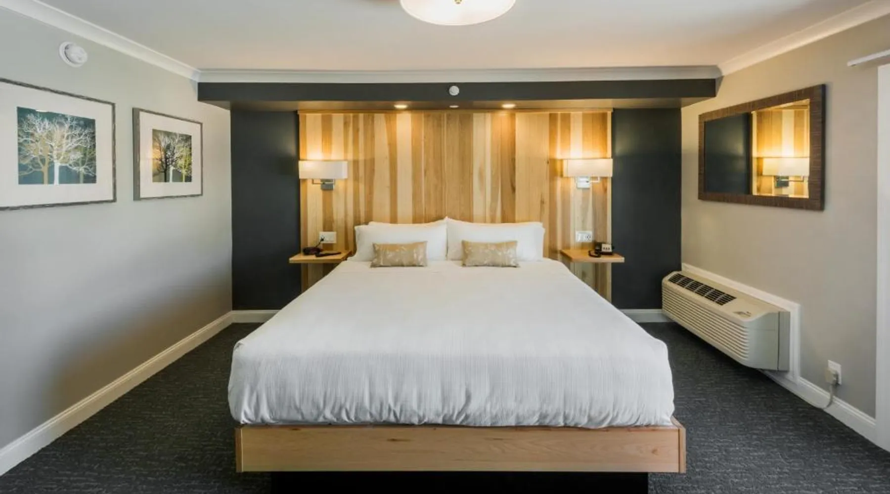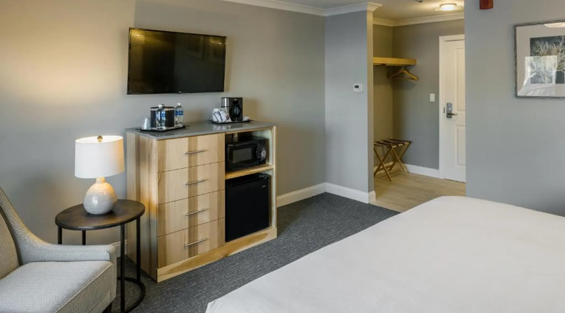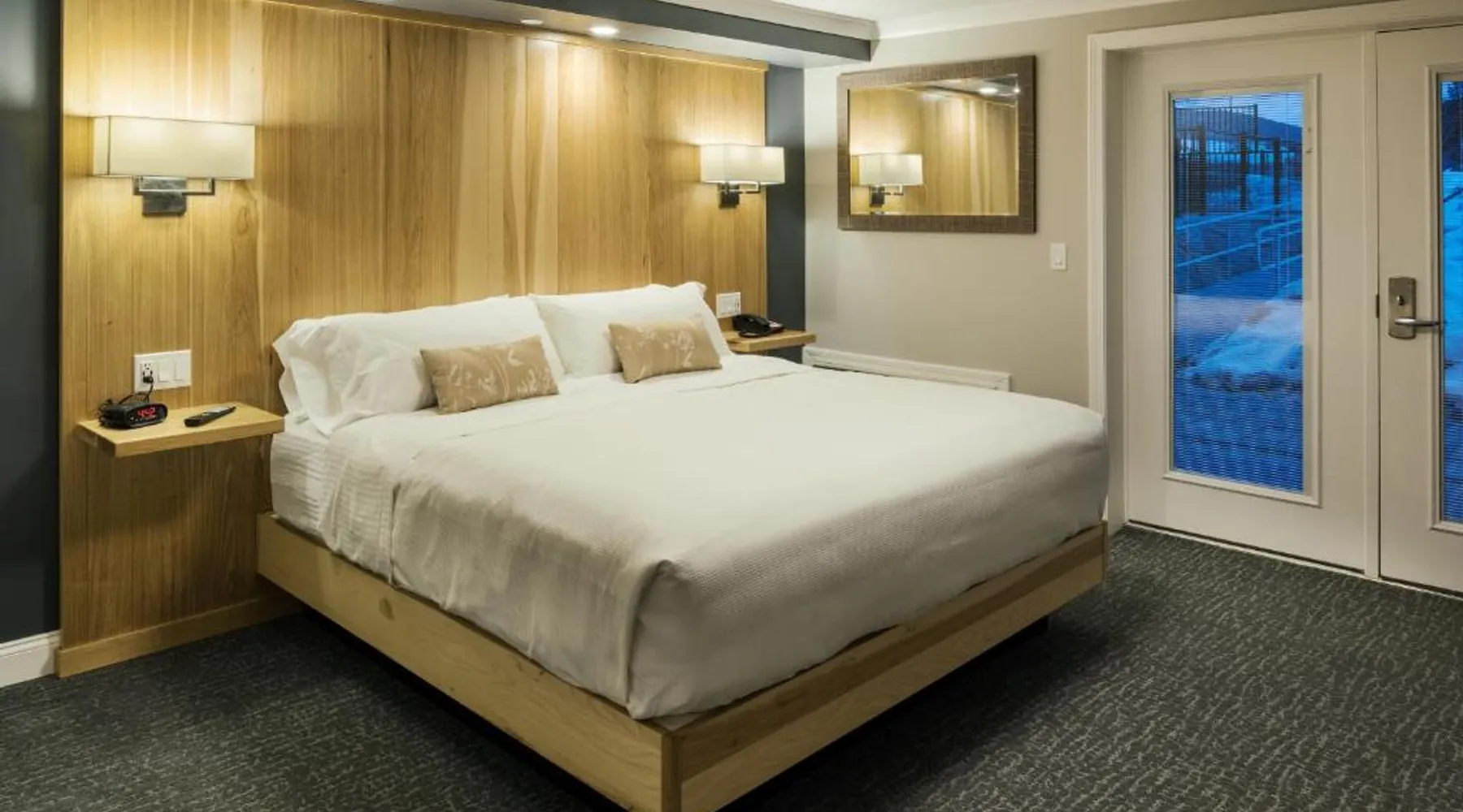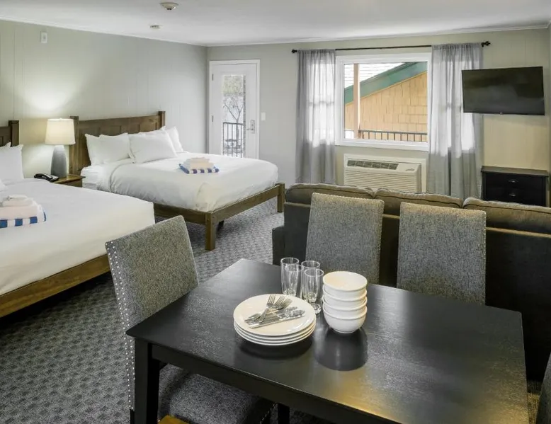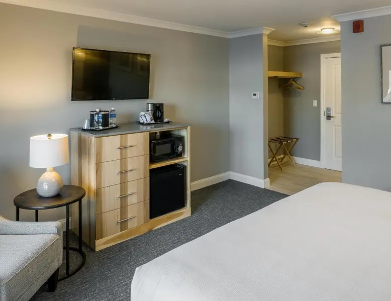 Beachfront Location: Center Harbor Inn in Center Harbor offers a private beach area and direct beachfront access. Guests can relax on the sandy shores or enjoy the scenic views of the surrounding lakes. Comfortable Accommodations: Rooms feature air-conditioning, private bathrooms, and mountain views. Each room includes a tea and coffee maker, refrigerator, and free WiFi, ensuring a comfortable stay. Leisure Facilities: The hotel features a sauna, fitness center, and hot tub. Additional amenities include a lounge, outdoor fireplace, and picnic area. Free parking is available for guests. Activities and Attractions: Guests can enjoy skiing, hiking, and other outdoor activities. The Lebanon Municipal Airport is 58 mi away, providing convenient travel options. The spacious double room features air conditioning, a tea and coffee maker, a balcony with mountain views as well as a private bathroom boasting a bath. The unit has 2 beds.