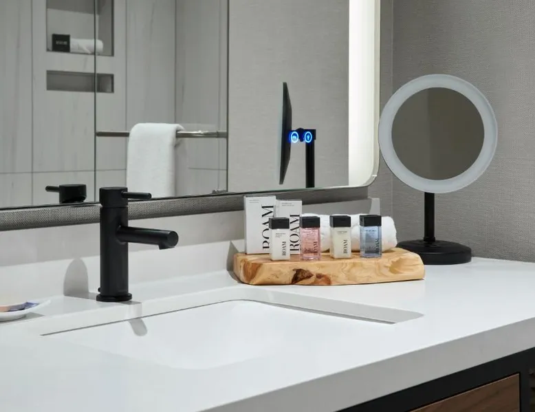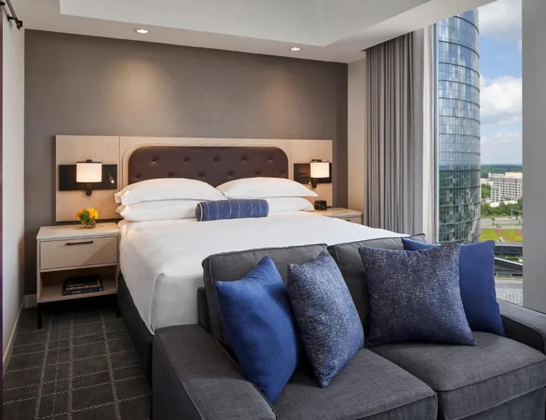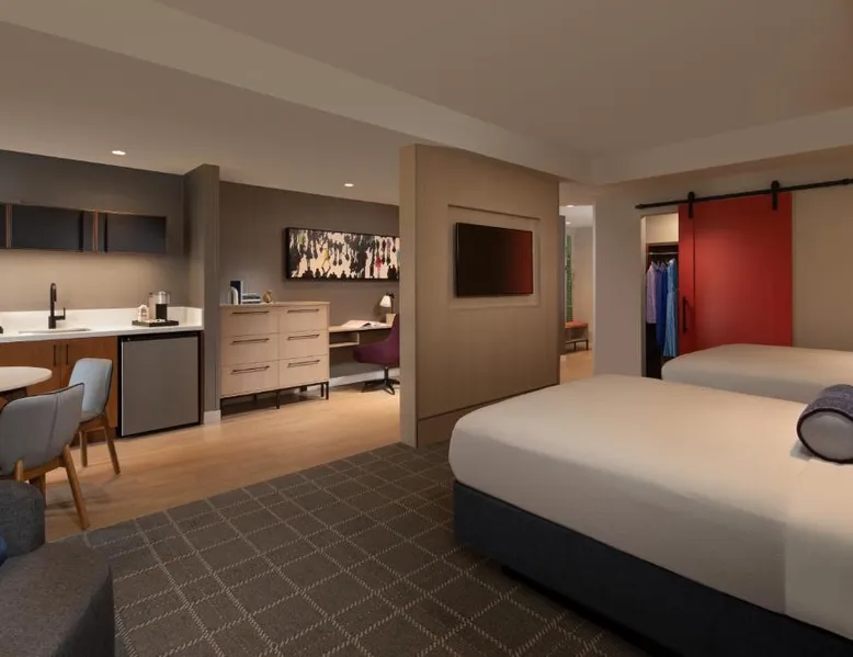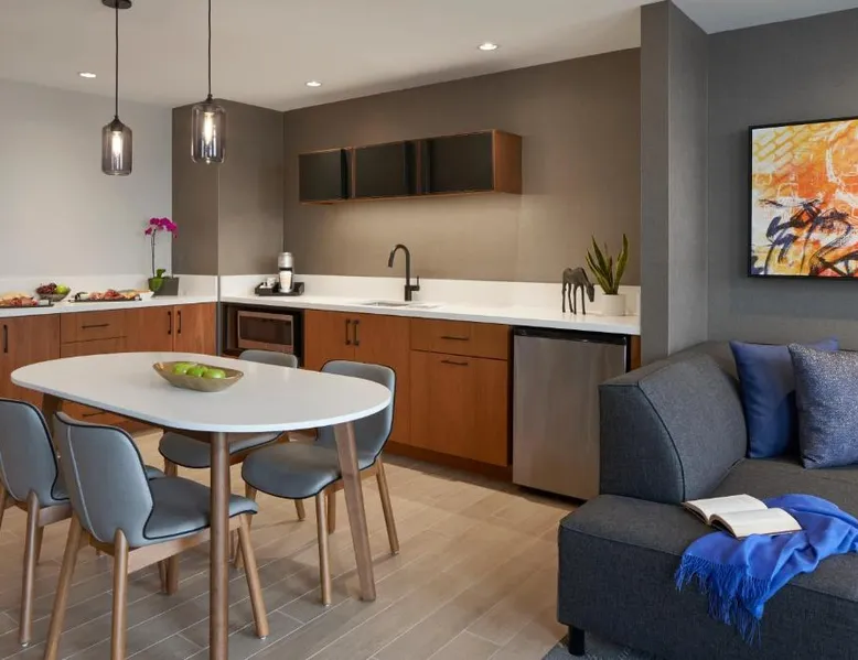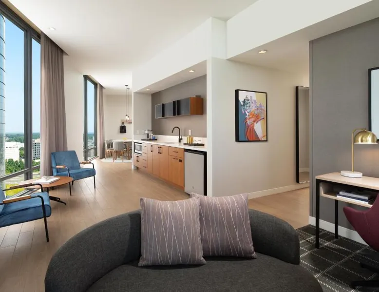 Comfortable Accommodations: The Watermark Hotel in Tysons Corner offers family rooms with air-conditioning, private bathrooms, and modern amenities. Each room includes a work desk, TV, and free toiletries. Dining and Leisure: Guests can enjoy a fitness center, sun terrace, and free bicycles. The modern, family-friendly restaurant serves American and Japanese cuisines with vegetarian, vegan, gluten-free, and dairy-free options. Additional facilities include a bar, outdoor fireplace, and picnic area. Convenient Location: Located 14 mi from Ronald Reagan Washington National Airport, the hotel is near attractions such as the Air Force Memorial (11 mi) and Lincoln Memorial (12 mi). Private check-in and check-out, a 24-hour front desk, and paid on-site parking enhance the stay. The spacious studio provides air conditioning, a tea and coffee maker, as well as a private bathroom featuring a walk-in shower and a hairdryer. Meals can be prepared in the well-fitted kitchen, which comes with a refrigerator, kitchenware and a microwave. The studio features parquet floors, a seating area with a flat-screen TV with streaming services, a wardrobe, a sofa, as well as a carpeted floor. The unit offers 1 bed.