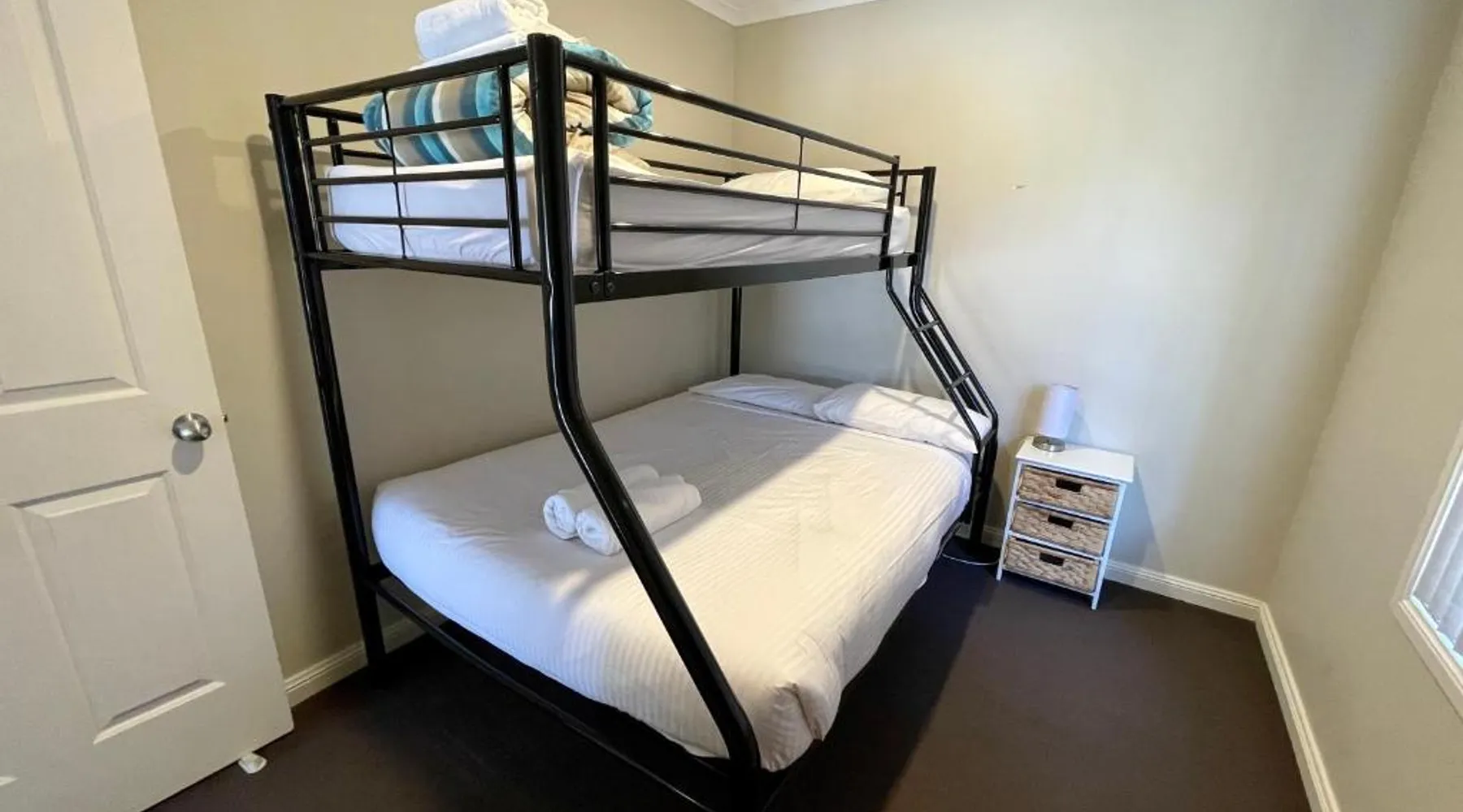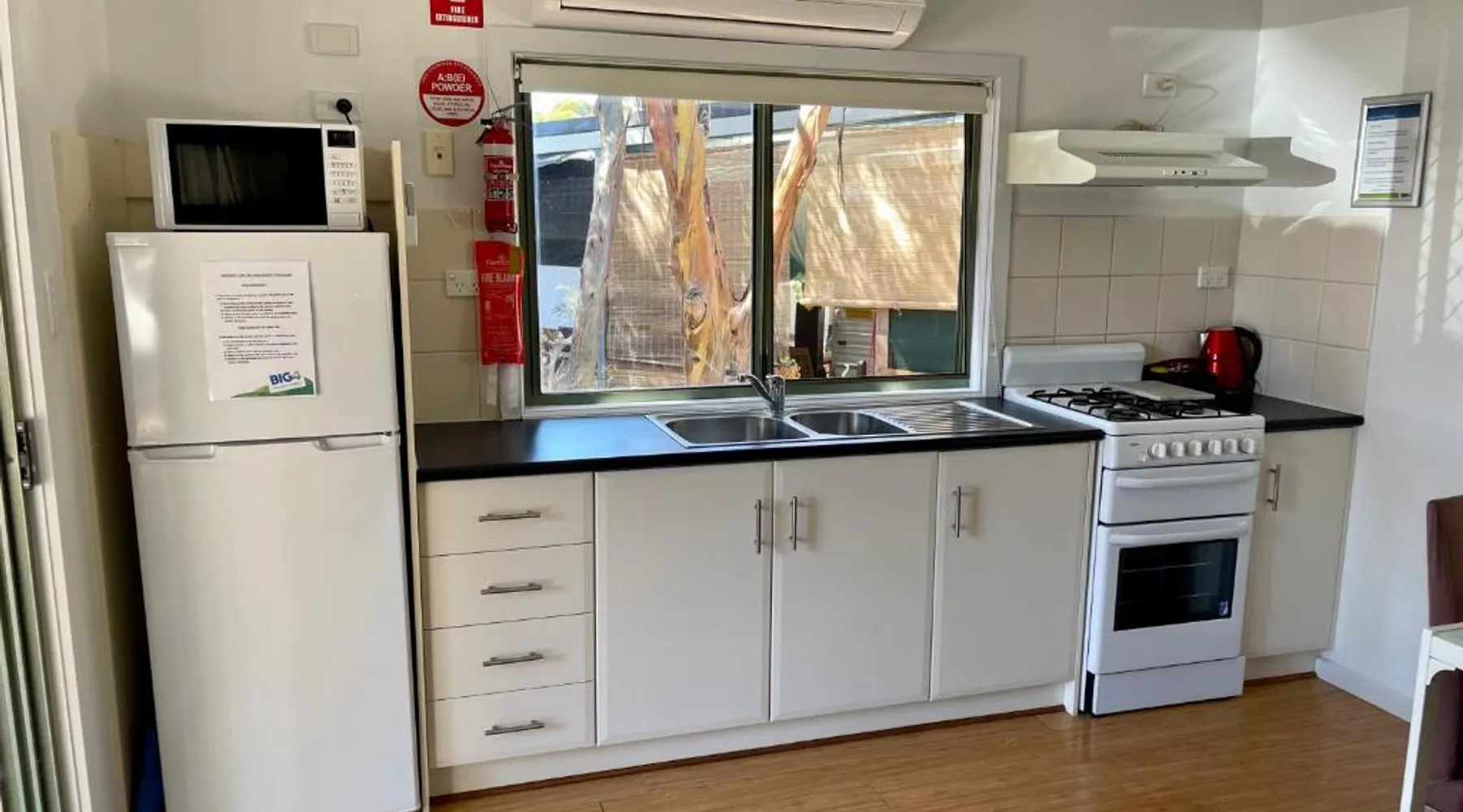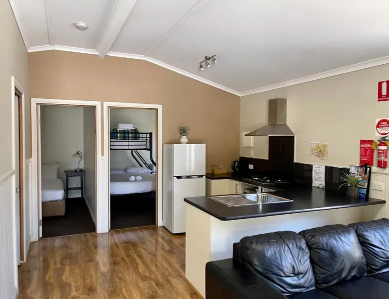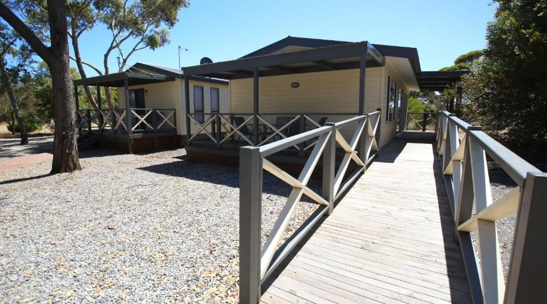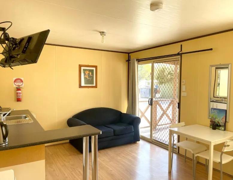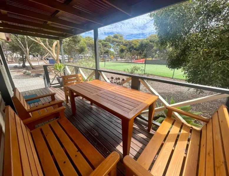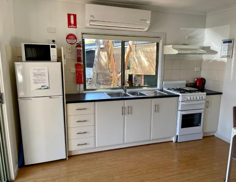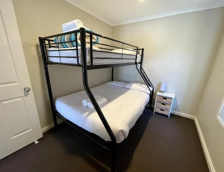 Comfortable Accommodations: BIG4 Port Willunga Tourist Park in Aldinga offers 4-star camping with air-conditioning, private bathrooms, and free WiFi. Guests enjoy garden views and a range of amenities including a shared kitchen, outdoor play area, and games room. Leisure Facilities: The property features a tennis court, seasonal outdoor swimming pool, and mini golf. Additional facilities include a children's playground, barbecue areas, and outdoor seating. Free on-site private parking is available. Prime Location: Located less than 0.6 mi from Port Willunga Beach, the park is 25 mi from Adelaide Airport. Nearby attractions include The Beachouse (23 mi) and Adelaide Oval (27 mi). Guests appreciate the convenient location, family-friendly environment, and easy beach access. This two-bedroom villa has a fully equipped kitchen, dining and lounge area with a sofa, TV and DVD player. It is air-conditioned with ceiling fans in the main bedroom and living area. There is a furnished deck and all linen is provided. The property wishes to advise that children under 9 years should not sleep on top bunks. Please take this into consideration when making your booking.