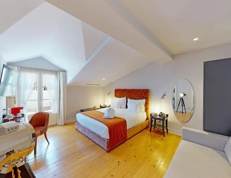 Comfortable Accommodations: Casa dos Ofícios Hotel in Tomar offers family rooms with air-conditioning, private bathrooms, and city views. Each room includes a work desk, mini-bar, and free WiFi. Exceptional Facilities: Guests can relax on the terrace or enjoy a drink at the bar. The hotel features a lounge, indoor play area, and outdoor seating. Additional amenities include an electric vehicle charging station, bicycle parking, and free toiletries. Delicious Breakfast: A variety of breakfast options are available, including continental, buffet, and gluten-free. Local specialties, fresh pastries, cheese, fruits, and juice enhance the morning experience. Prime Location: Located less than 0.6 mi from Capela de Nossa Senhora da Conceicao, the hotel is 81 mi from Humberto Delgado Airport. Nearby attractions include Our Lady of Fatima Basilica and Batalha Monastery. Highly rated for staff and breakfast. Providing free toiletries and bathrobes, this double room includes a private bathroom with a walk-in shower, a hairdryer and slippers. The air-conditioned double room provides a flat-screen TV with cable channels, soundproof walls, a mini-bar, a tea and coffee maker as well as city views. The unit offers 1 bed.